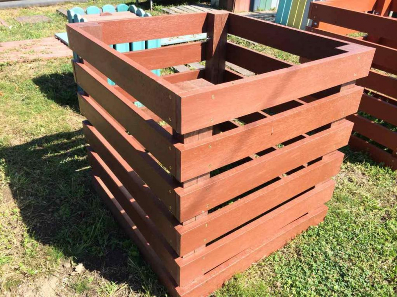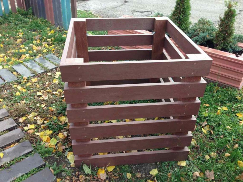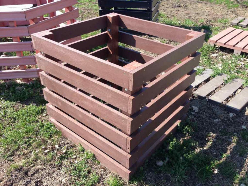 Eine einfache Kompostanlage mit einer Kapazität bis zu 1 Kubikmeter. Abmessungen 90 x 90 Breite, 90 cm Höhe, eine Vielzahl von Farb-Optionen und eine abwechslungsreiche Auswahl an gebrauchten Profilen. Ein Teil ist abnehmbar, um Kompost mittels der Butterfly-Mutter zu entnehmen. Geeignet für Haushalte mit einer Landfläche 500 - 2000 m2. Lösung mit zwei Kompostanlagen zusammen sorgt für die beabsichtigte Verwendung derartig, dass die eine gefüllt wird - kompostiert während die zweite als der fertige Kompost benutzt wird.