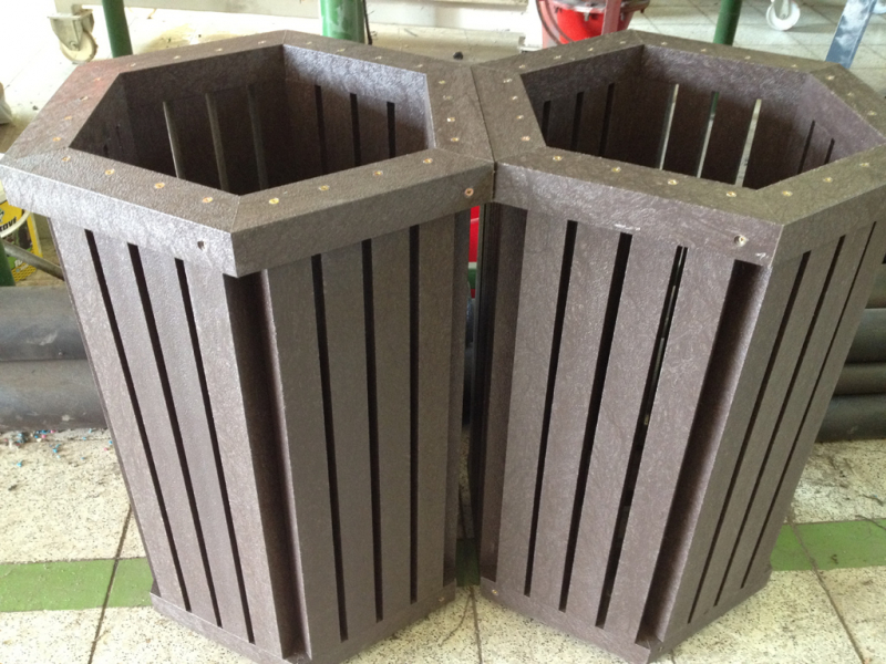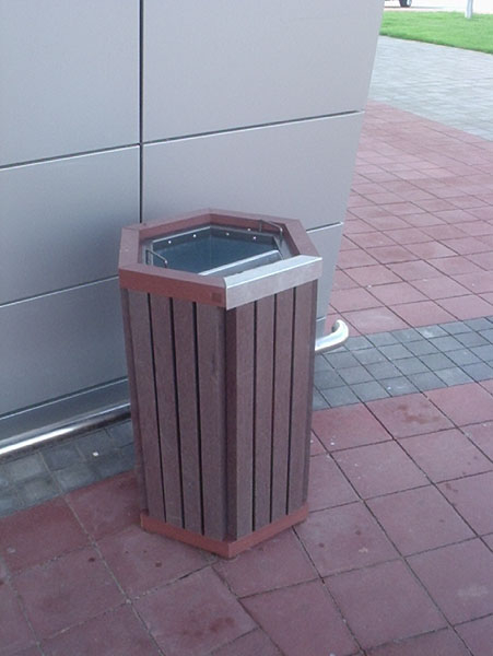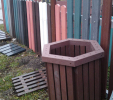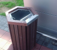 Hexagonaler Balkenkorb ist ein elegantes Design für jedes Exterieur. Verschiedene Farbvariationen und Optionen der verwendeten Profile. Geeignet für Plastiktüten - Taschen. Er wird vor allem in zwei Versionen, wie ein "kleiner" und ein "großer" Mülleimer, produziert.