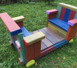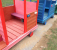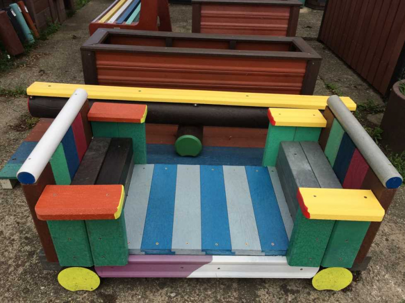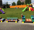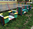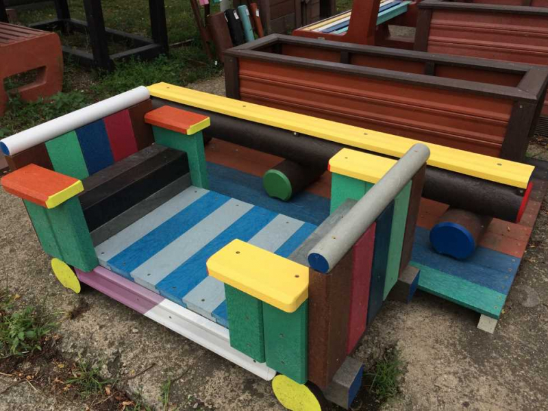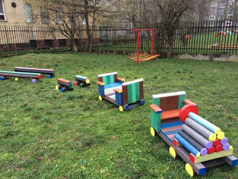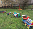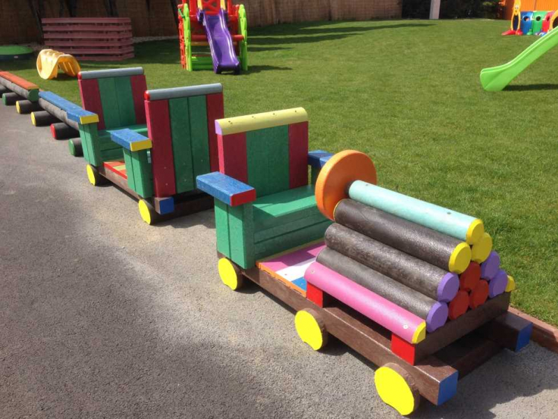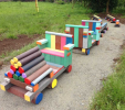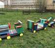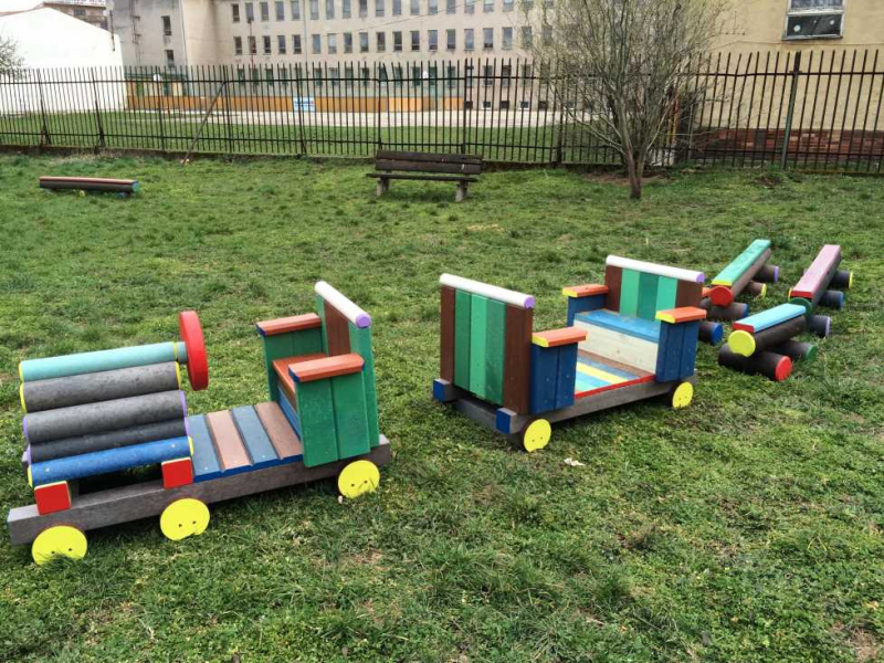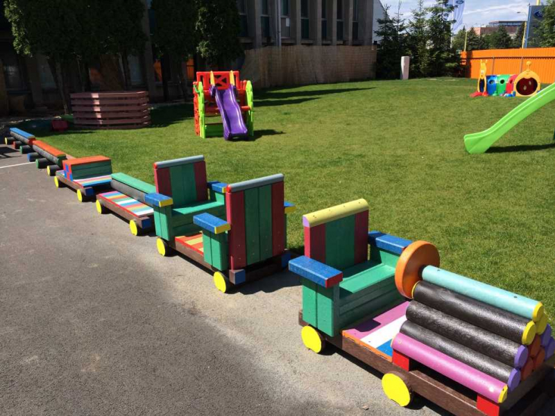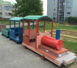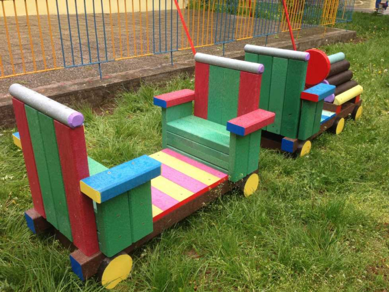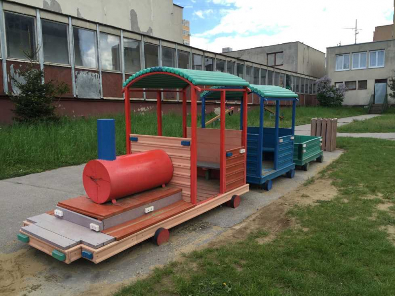 Detský vláčik je vhodným doplnkom školských dvorov. Rušeň a vozne vieme vyrobiť podľa požiadavky zákazníka individuálne. Existuje veľa možnosti ako vyrobiť úplne nový vláčik s rušňom a vozňami, prípadne lacnejšími kladinamy, ktorú sú vhodné na sedenie. Rekonštrukcia - alebo aj výmena starého dreveného vláčika za nové drevené, alebo plastové dosky je tiež v našom výrobnom programe. Fotodokumentácia je dôkazom našej práce.