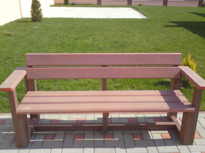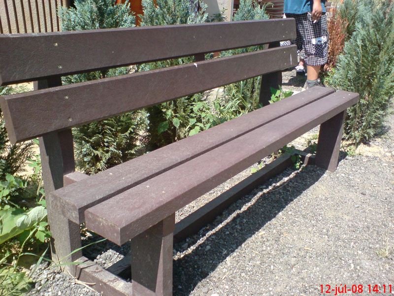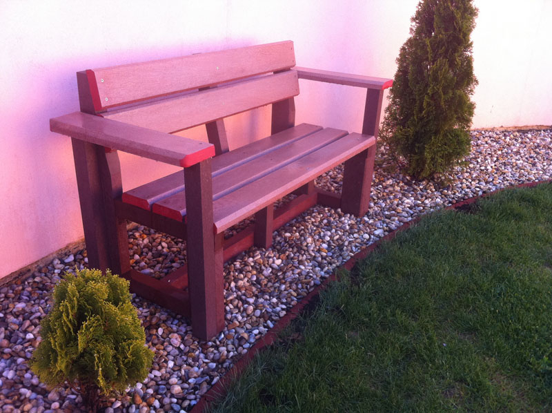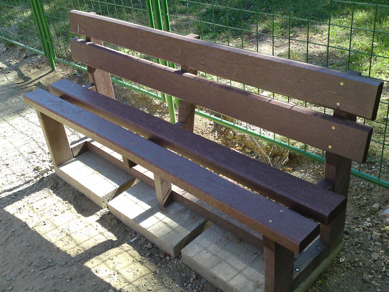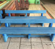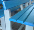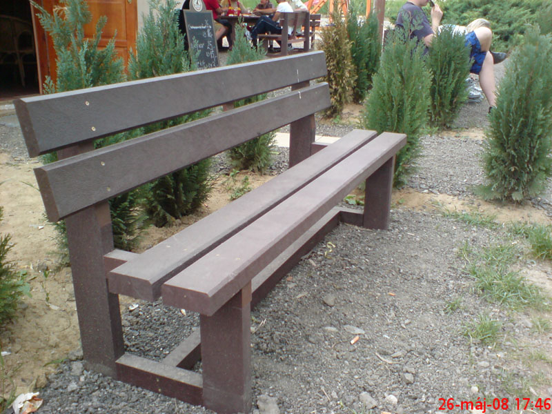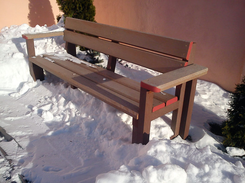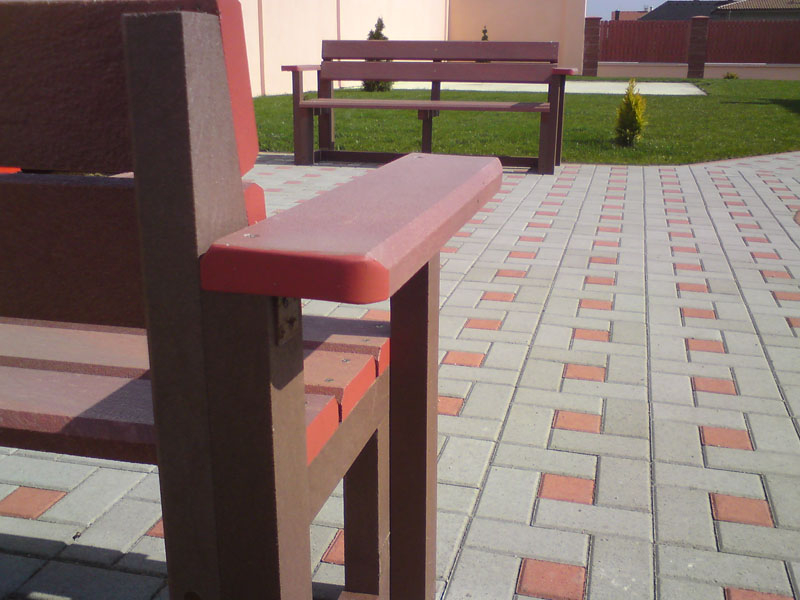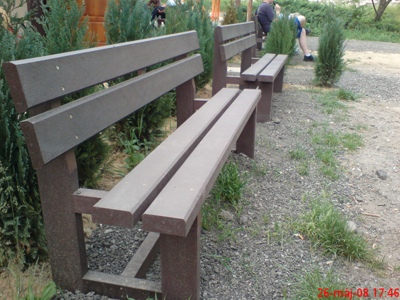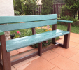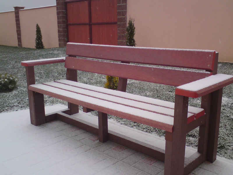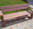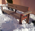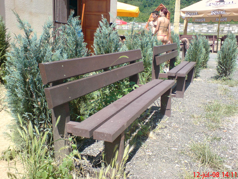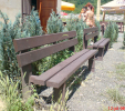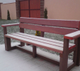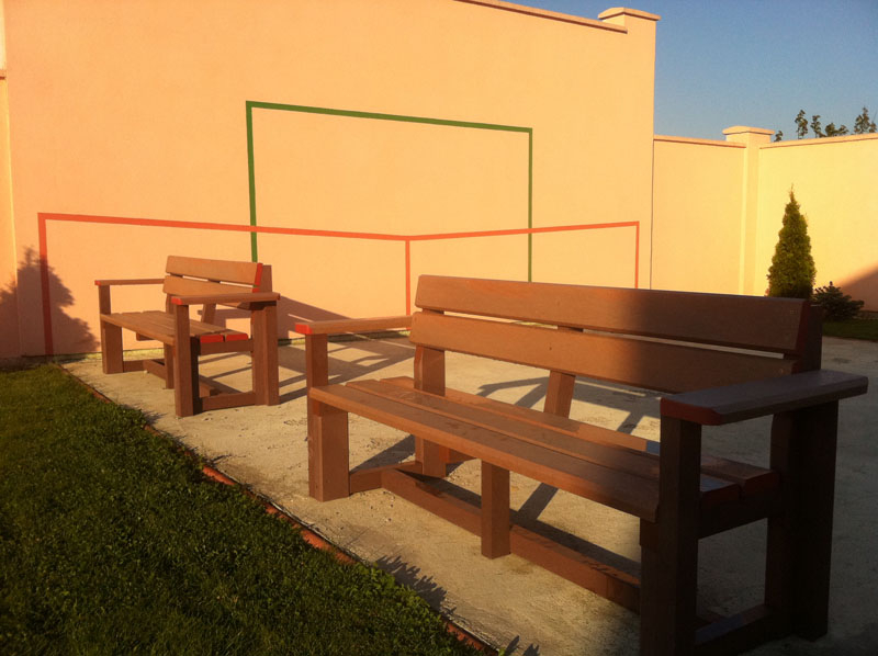 Classical, simple and popular bench, most affordable, tested in several towns and villages is the perfect outfit. Sitting 2 + 2, i.e., two 5 cm thick plates and 3,5 cm thick ones for the backrest, reinforced in the center are the guarantee of resistance throughout the year. Of course, there are many ways to make up a "made-to-measure" bench. Three plates for the seat and two for the backrest, eventually an armrest are supplements that we can prepare for you in a variety of colors, listed in the Photo gallery.