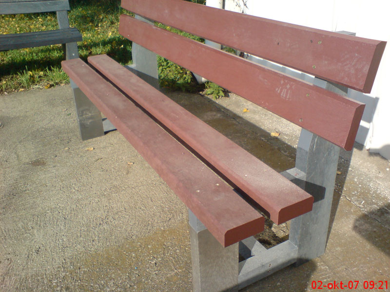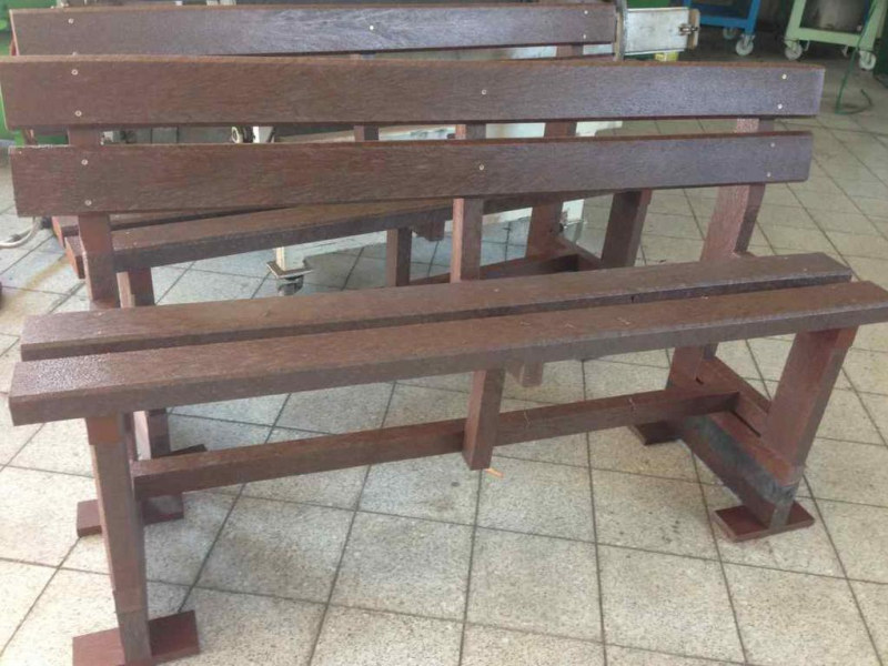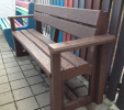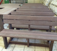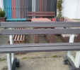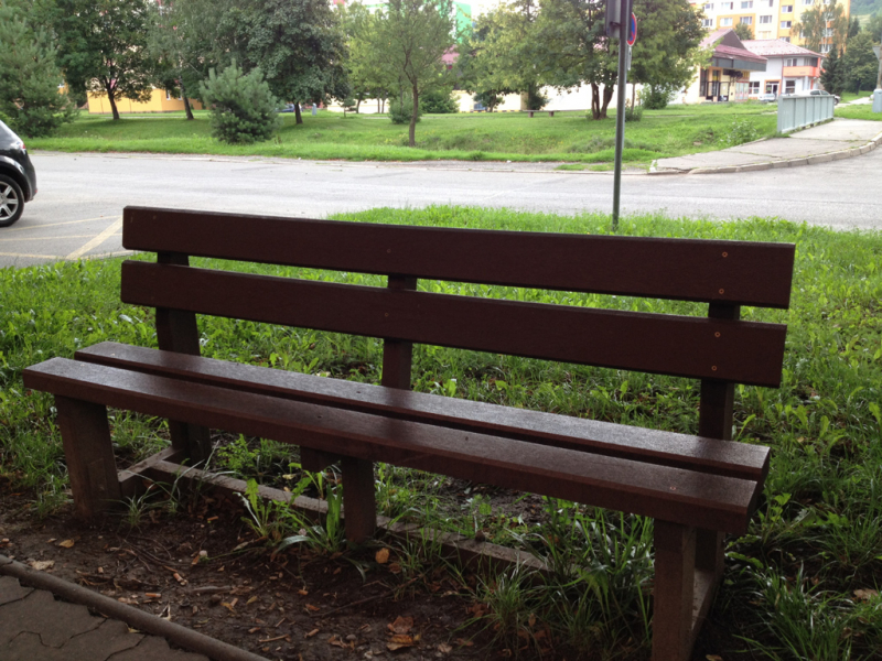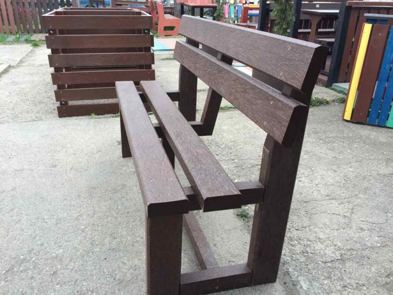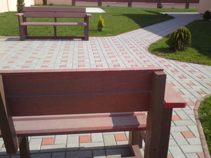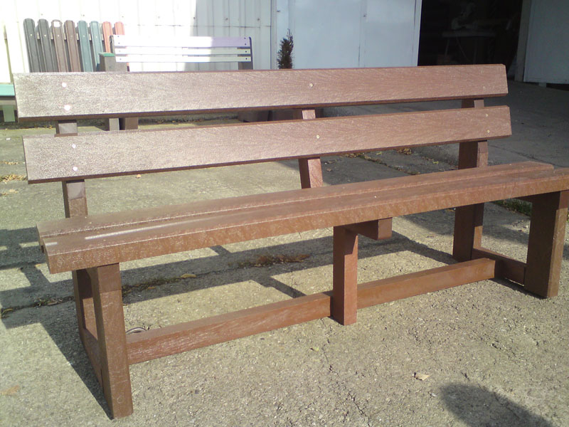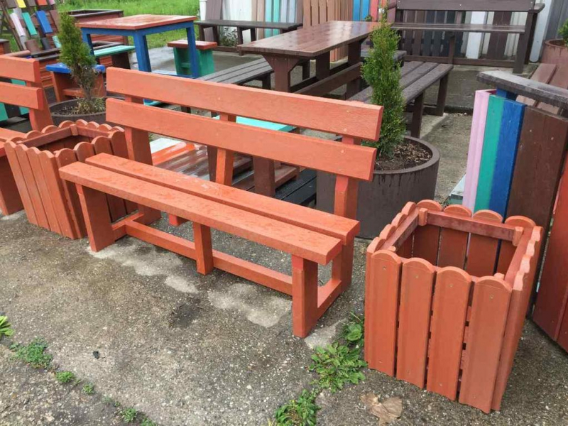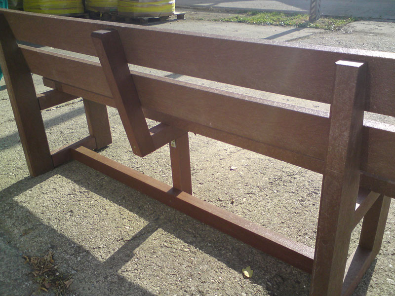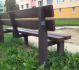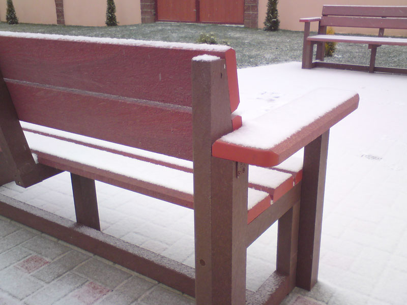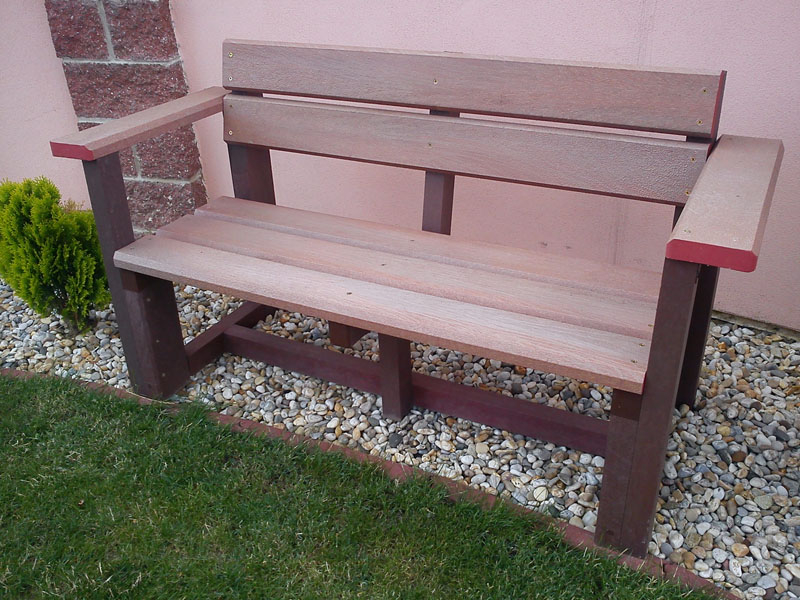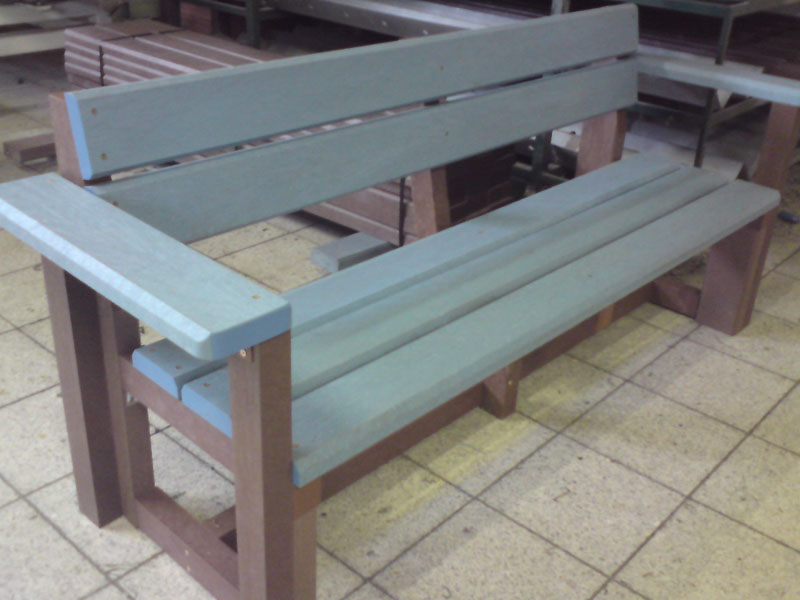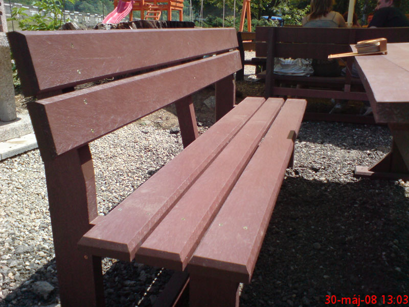 Classical, simple and popular bench, most affordable, tested in several towns and villages is the perfect outfit. Sitting 2 + 2, i.e., two 5 cm thick plates and 3,5 cm thick ones for the backrest, reinforced in the center are the guarantee of resistance throughout the year. Of course, there are many ways to make up a "made-to-measure" bench. Three plates for the seat and two for the backrest, eventually an armrest are supplements that we can prepare for you in a variety of colors, listed in the Photo gallery.
