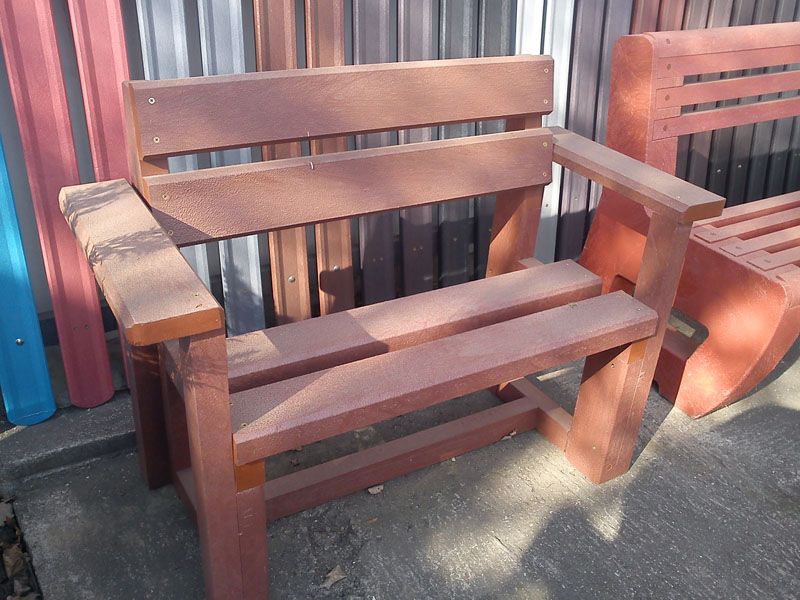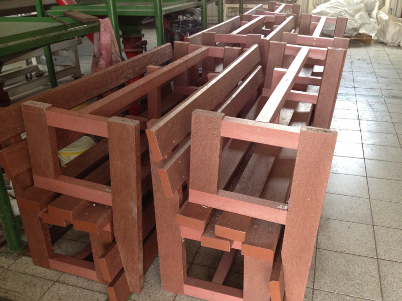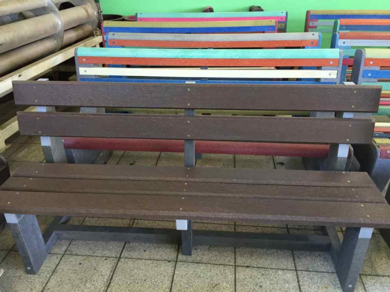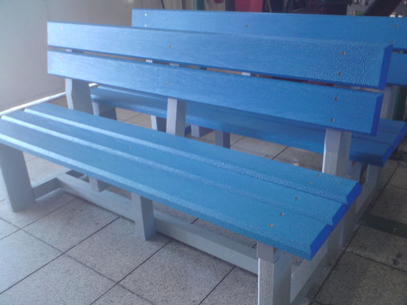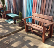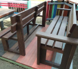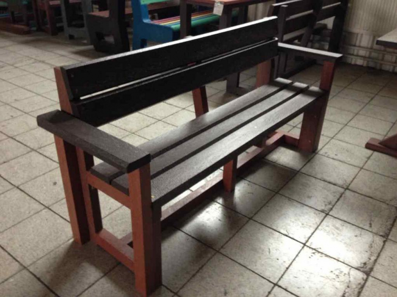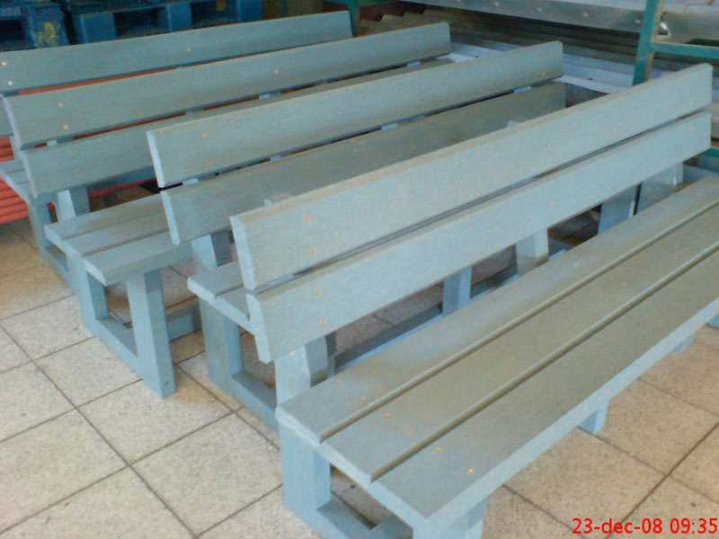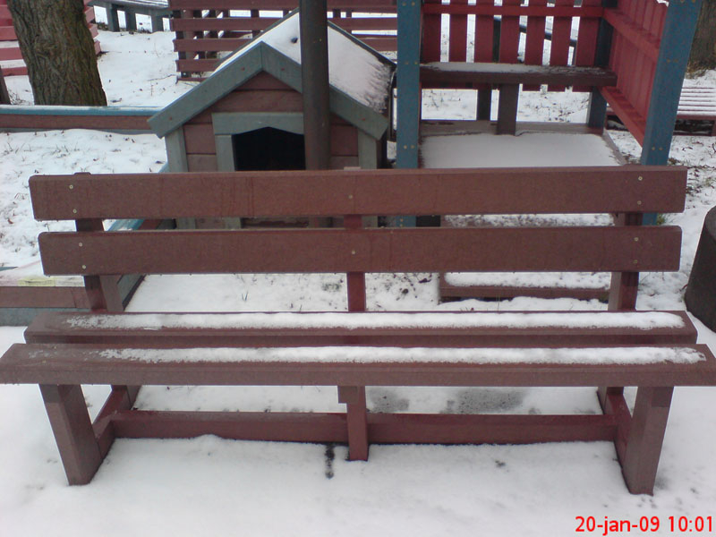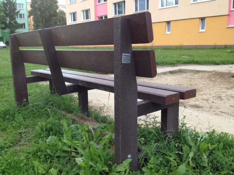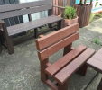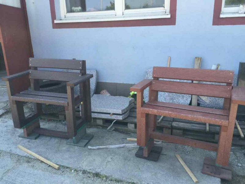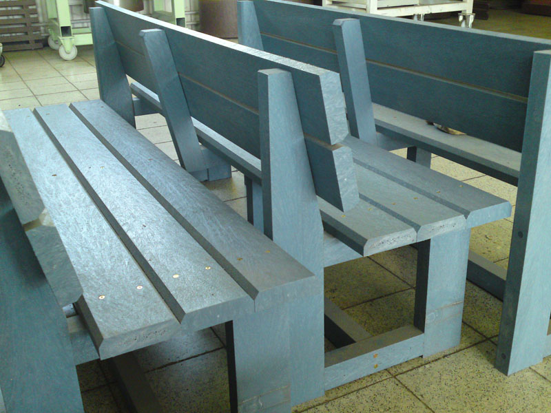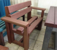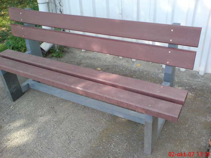 Classical, simple and popular bench, most affordable, tested in several towns and villages is the perfect outfit. Sitting 2 + 2, i.e., two 5 cm thick plates and 3,5 cm thick ones for the backrest, reinforced in the center are the guarantee of resistance throughout the year. Of course, there are many ways to make up a "made-to-measure" bench. Three plates for the seat and two for the backrest, eventually an armrest are supplements that we can prepare for you in a variety of colors, listed in the Photo gallery.