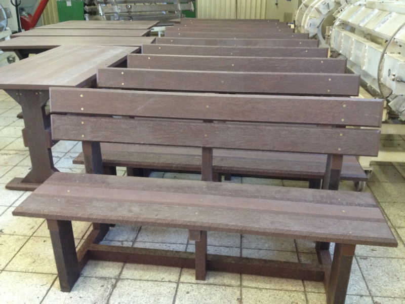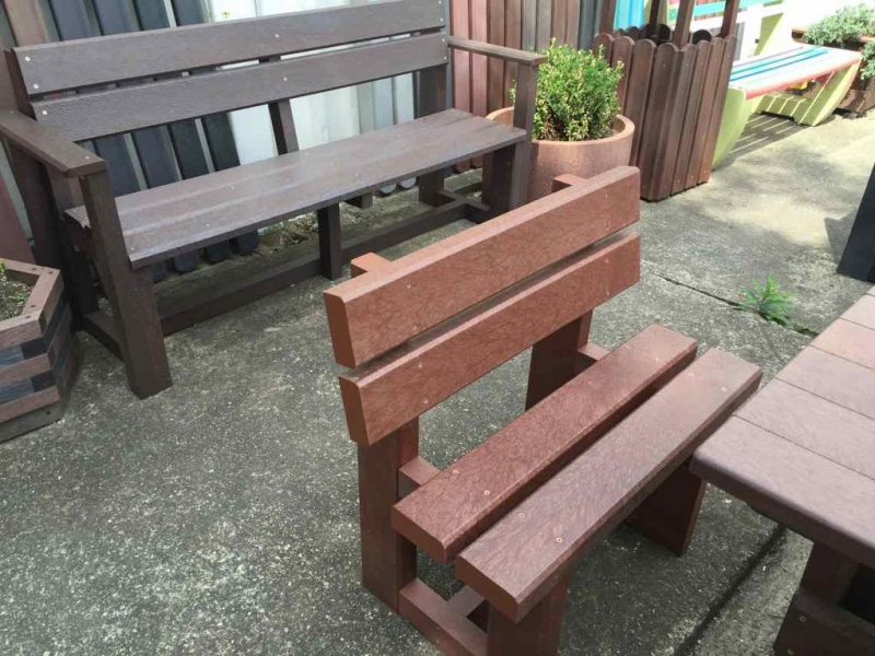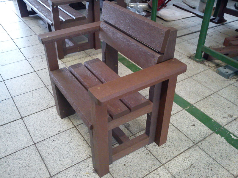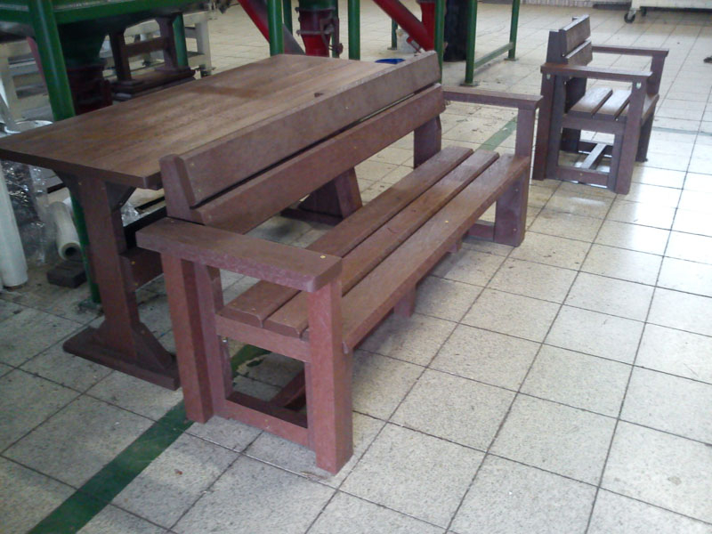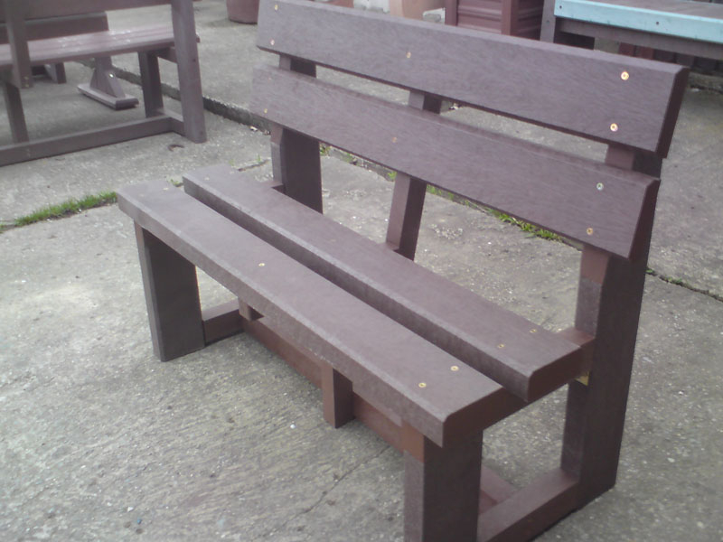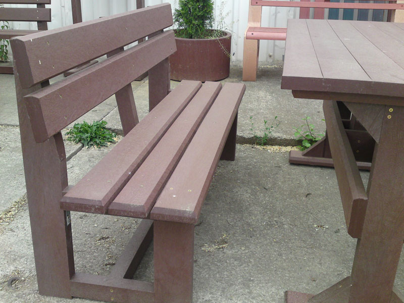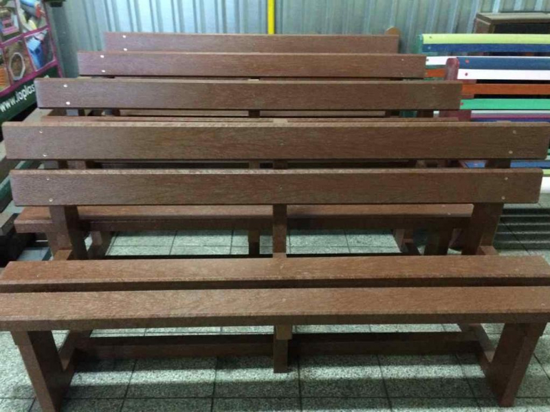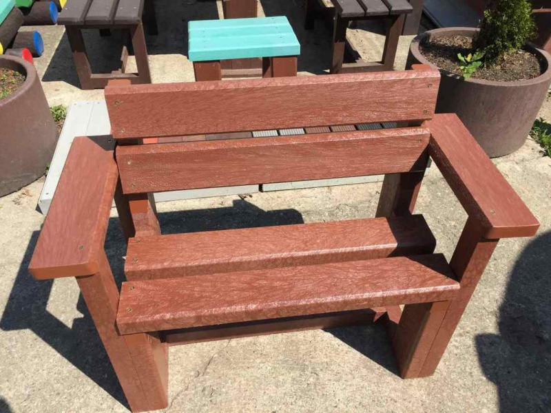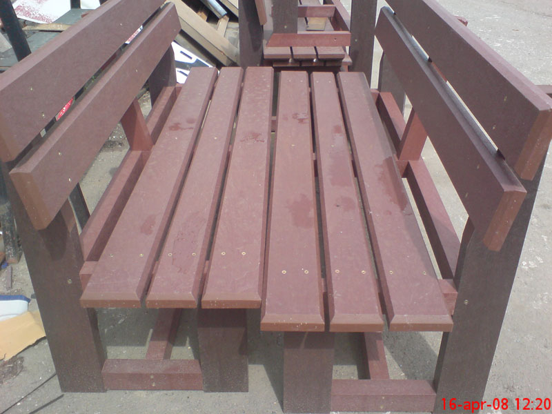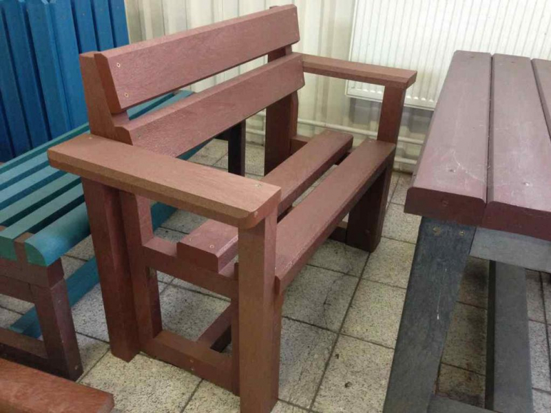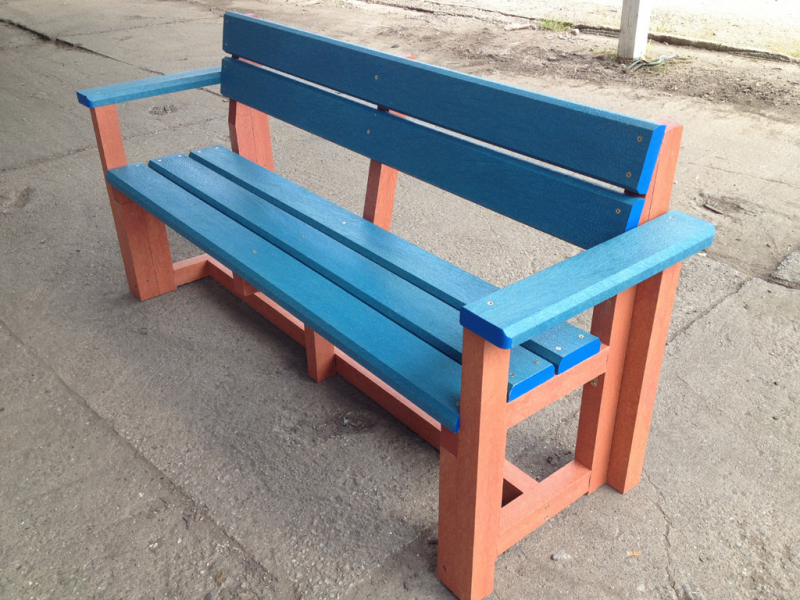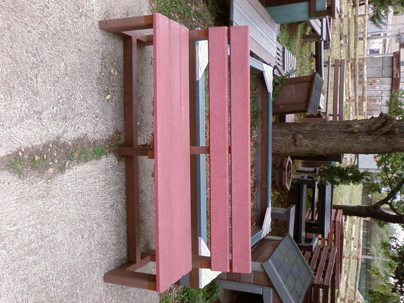 Classical, simple and popular bench, most affordable, tested in several towns and villages is the perfect outfit. Sitting 2 + 2, i.e., two 5 cm thick plates and 3,5 cm thick ones for the backrest, reinforced in the center are the guarantee of resistance throughout the year. Of course, there are many ways to make up a "made-to-measure" bench. Three plates for the seat and two for the backrest, eventually an armrest are supplements that we can prepare for you in a variety of colors, listed in the Photo gallery.