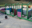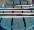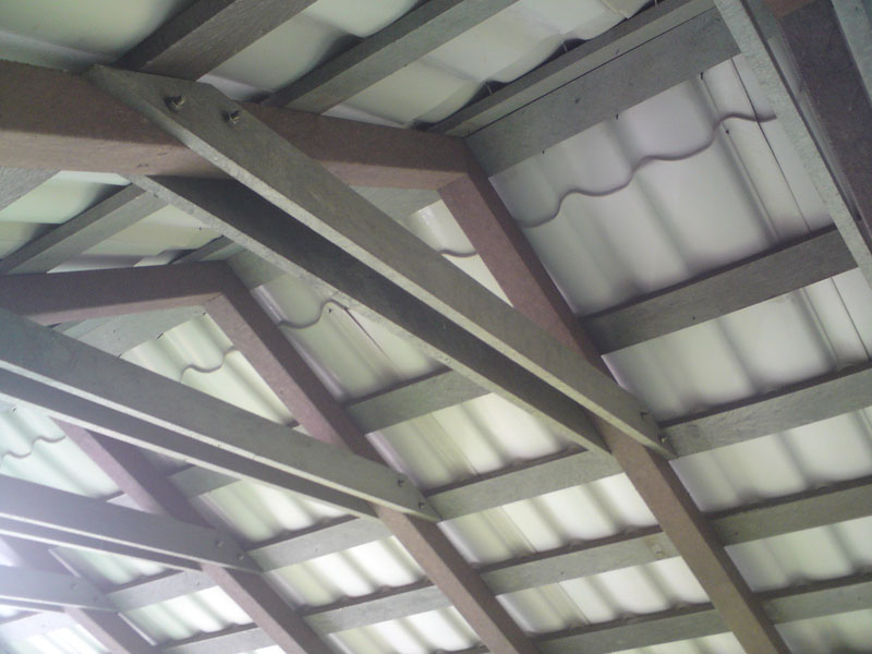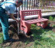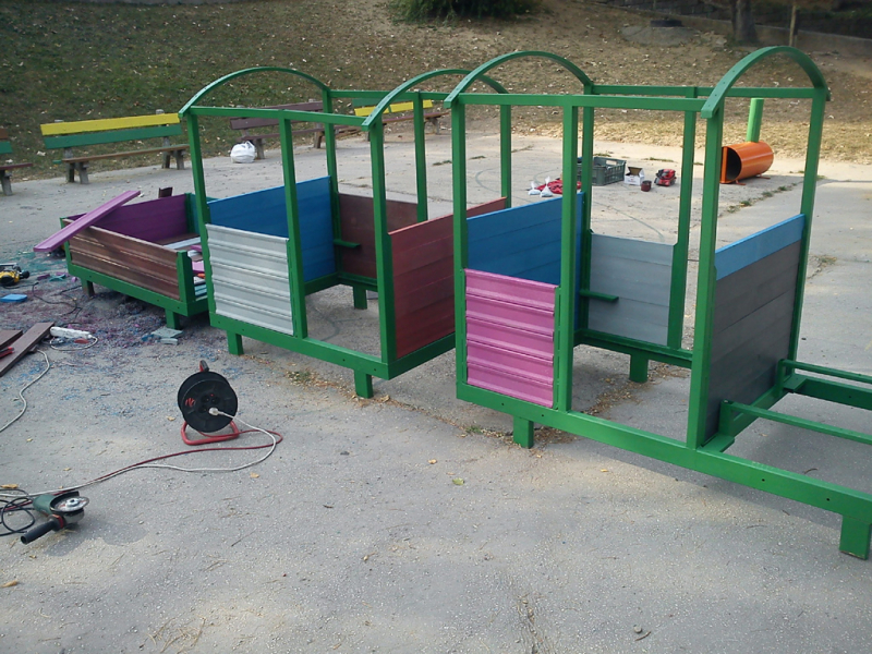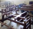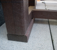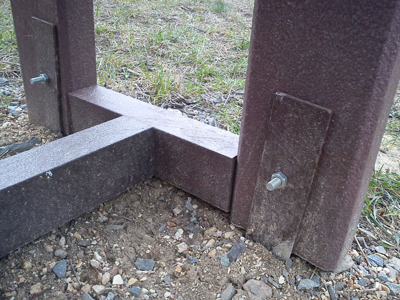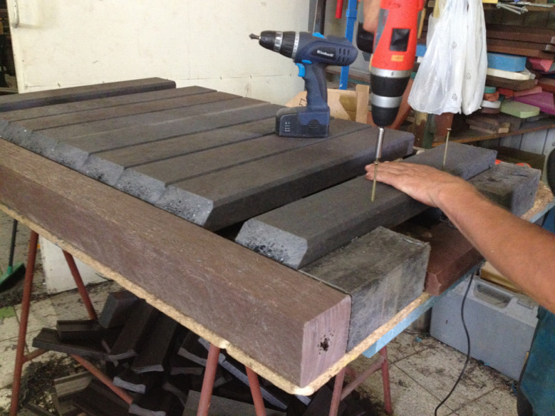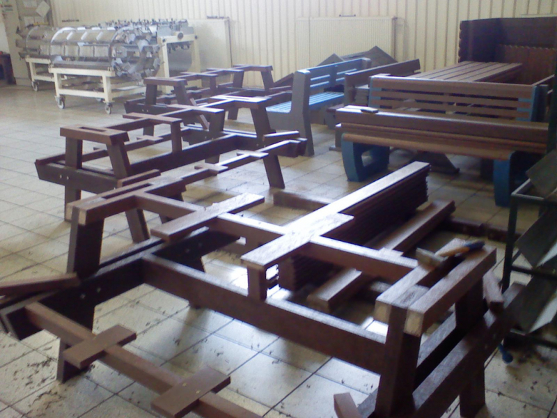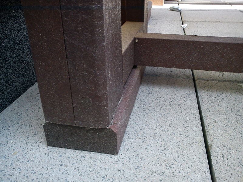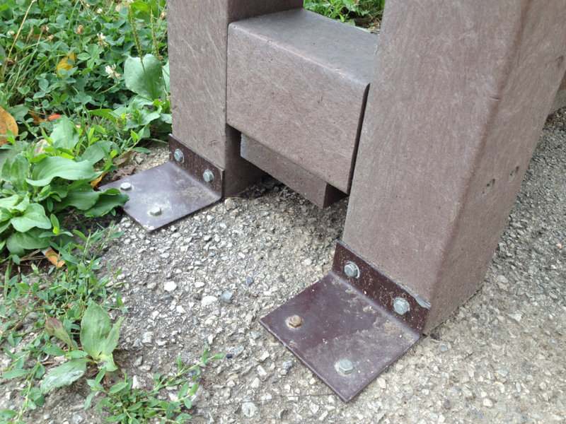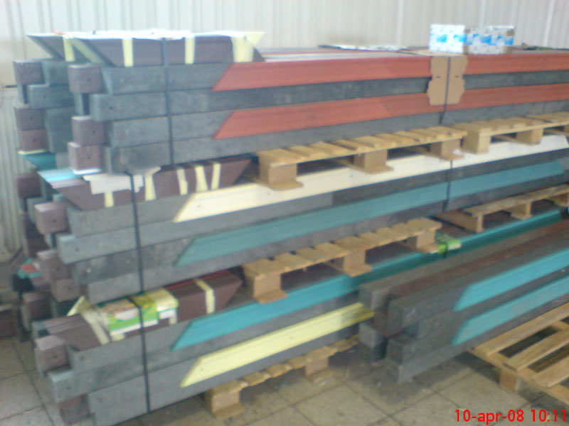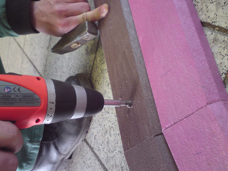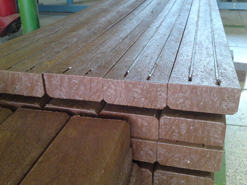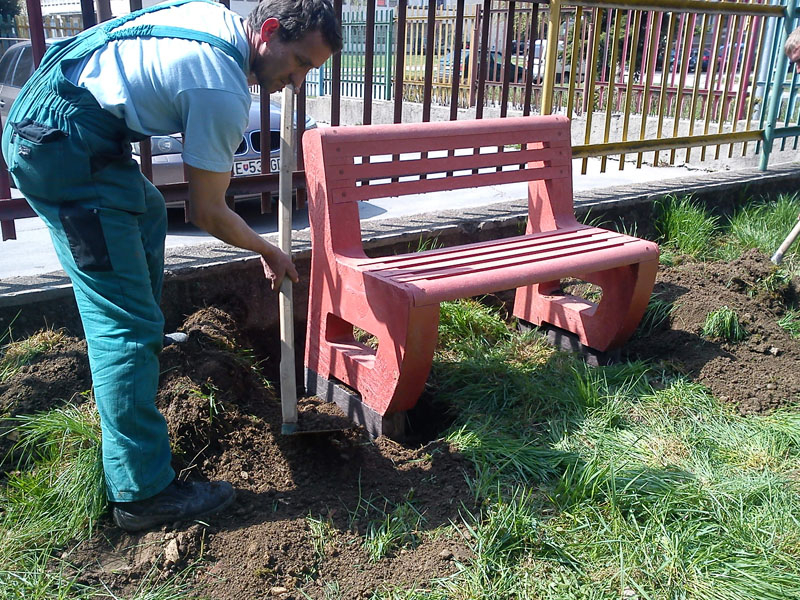 For the bench plates (D-120x50-2200) is used essentially the same material as for the plastic plates for fences, just with a larger diameter, for example, an 8 winch screw on benches with concrete construction, or two 5 ones on one side of the plate. The plates can be reinforced – by a 20/5 iron strip, which will resist even greater burden. A common example is the bench, the plate of which is 180 cm long and the distance of support legs is approximately 150 cm, where the use of reinforcement in length of 155 cm, especially for municipality is necessity.