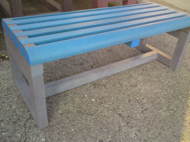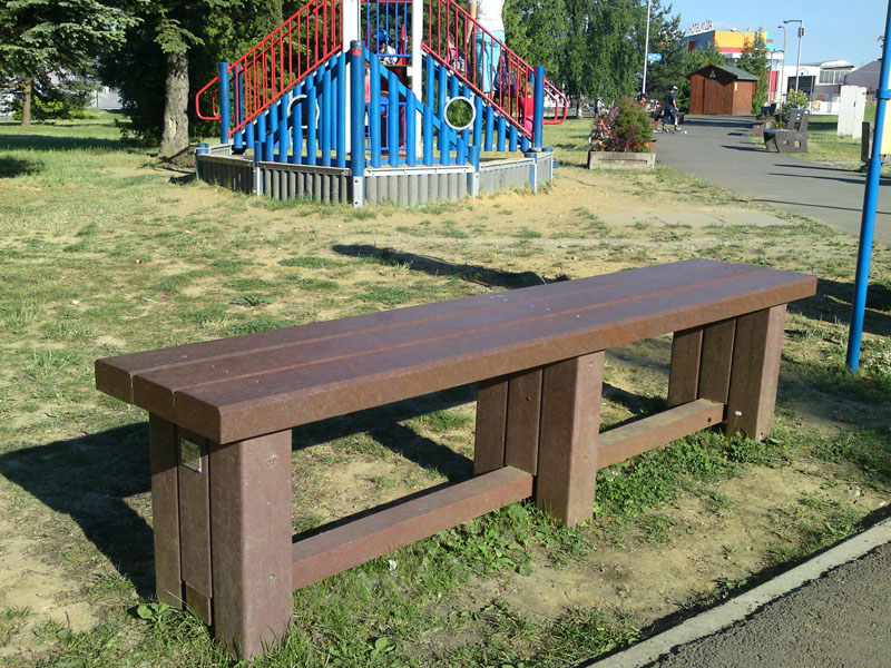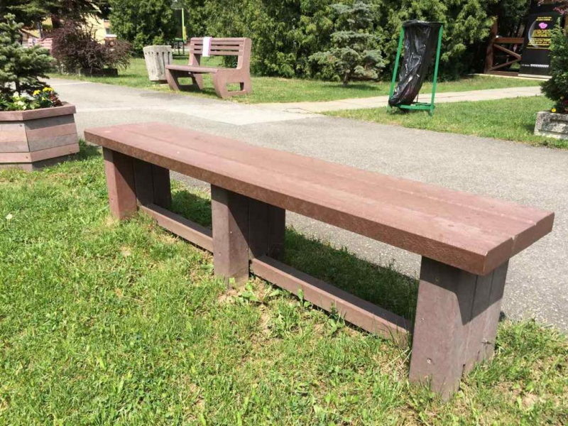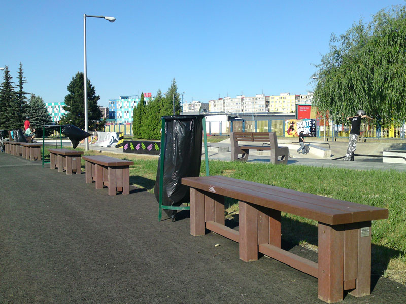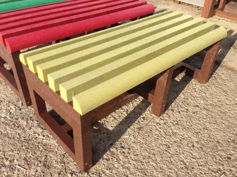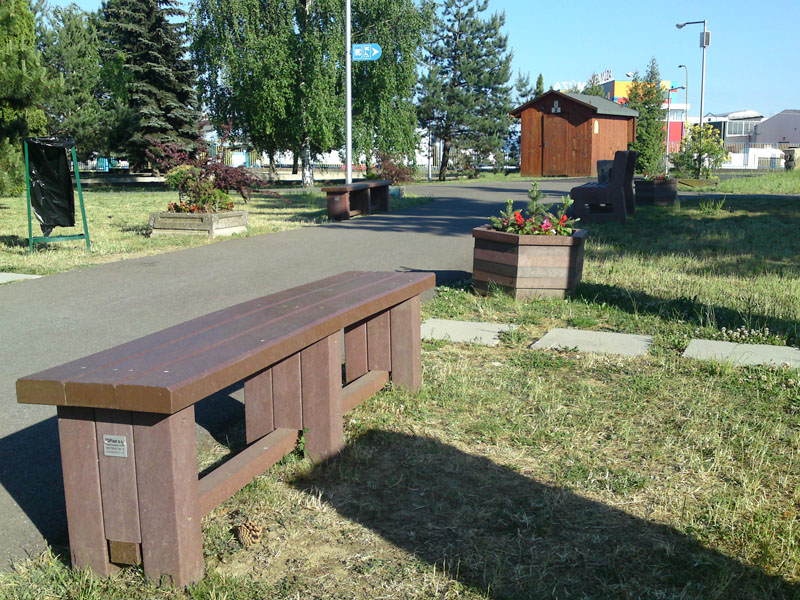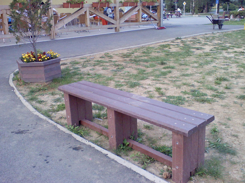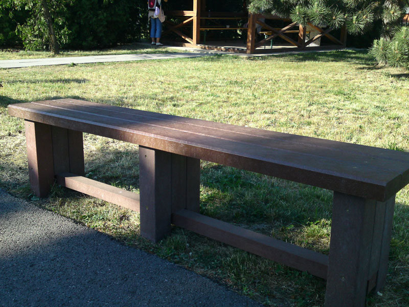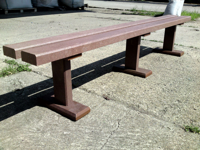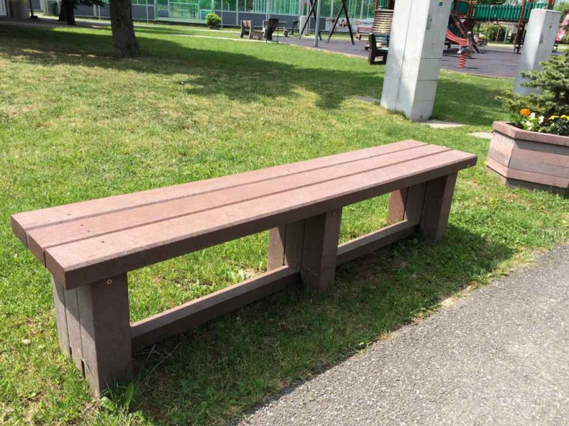 Benches without a backrest are made in several ways. Short- plate bench is suitable for seating of two people or 180 cm- long one, with reinforcement in the middle is also suitable for parks, more ready for a load or resistant to vandalism. Benches without a backrest, made of prisms are an elegant supplement to parks and gardens. All benches can be anchored in many ways by means of L-iron and fasteners. In case of anchorage into the ground, a bench pedestal to be buried into the ground can be produced. Benches, of course, can be made in various colors and profile variations.