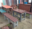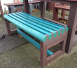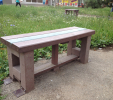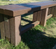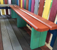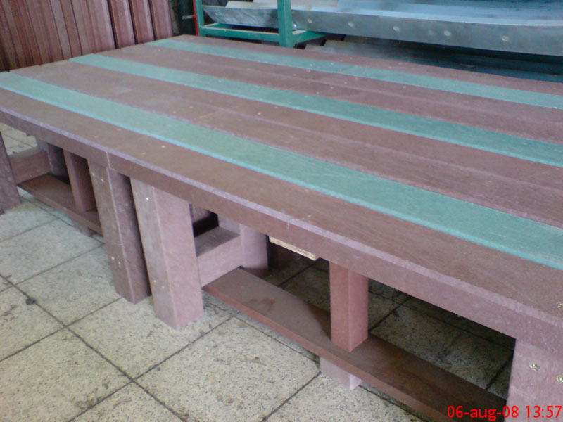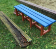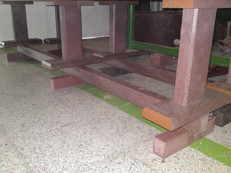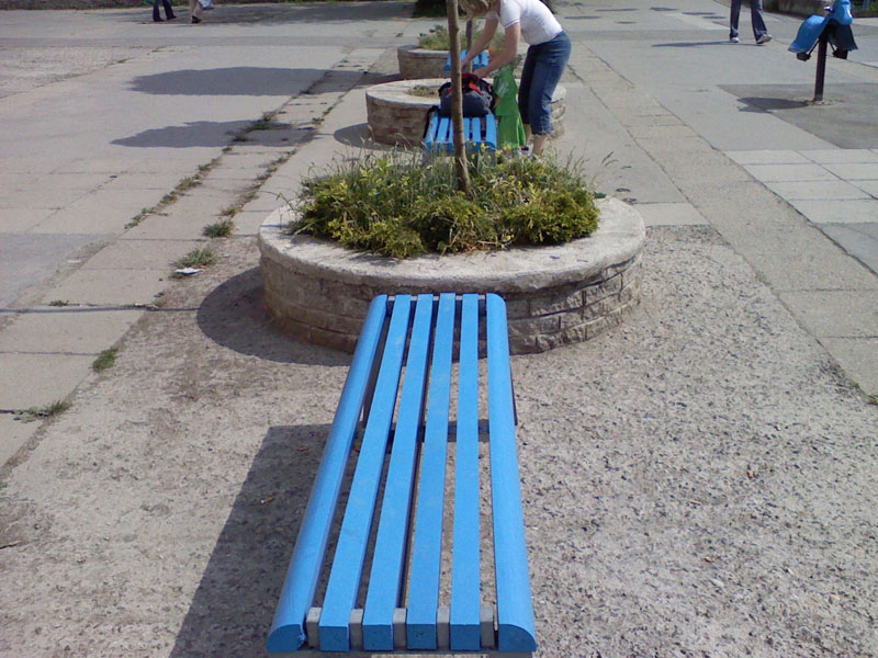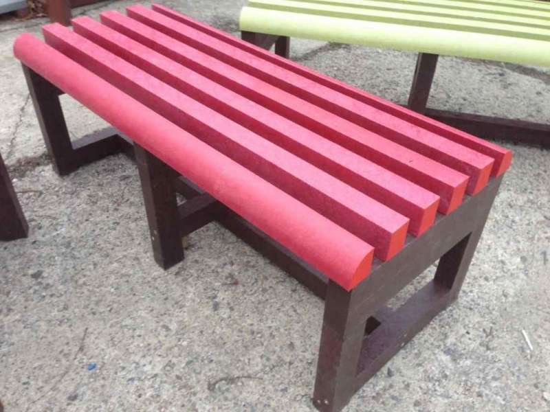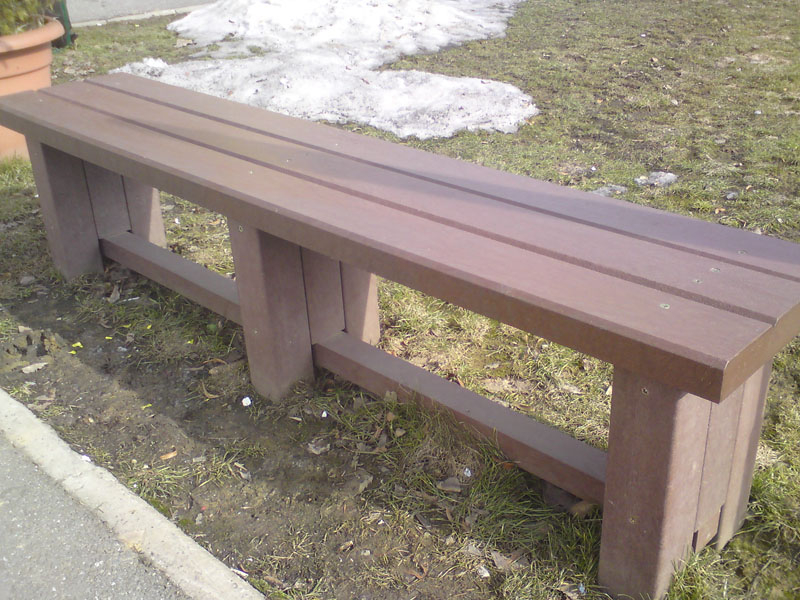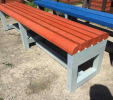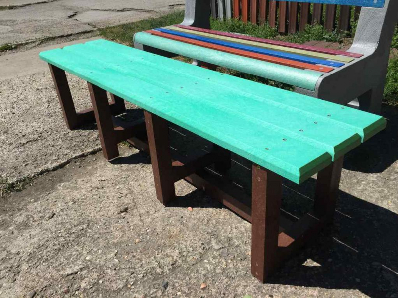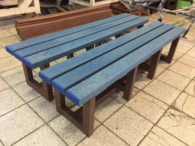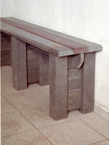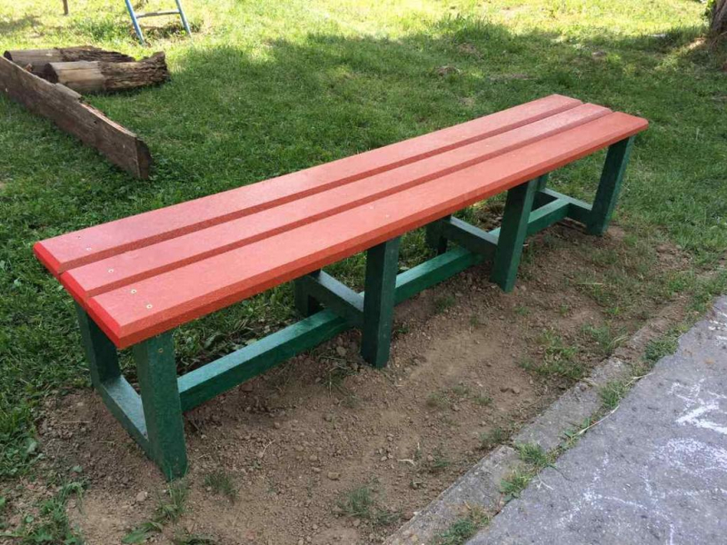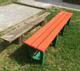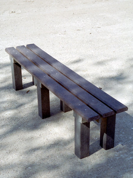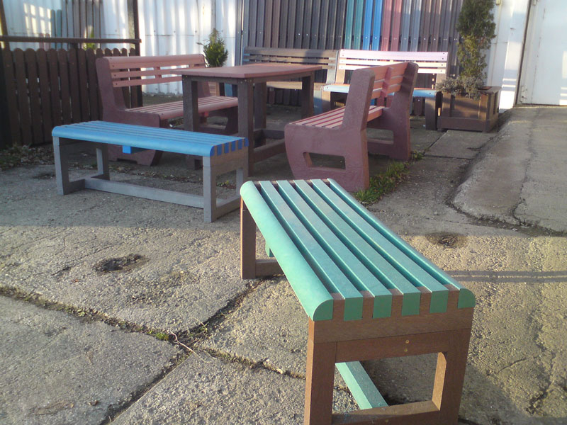 Benches without a backrest are made in several ways. Short- plate bench is suitable for seating of two people or 180 cm- long one, with reinforcement in the middle is also suitable for parks, more ready for a load or resistant to vandalism. Benches without a backrest, made of prisms are an elegant supplement to parks and gardens. All benches can be anchored in many ways by means of L-iron and fasteners. In case of anchorage into the ground, a bench pedestal to be buried into the ground can be produced. Benches, of course, can be made in various colors and profile variations.