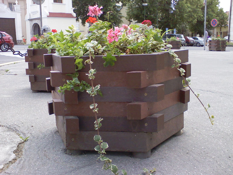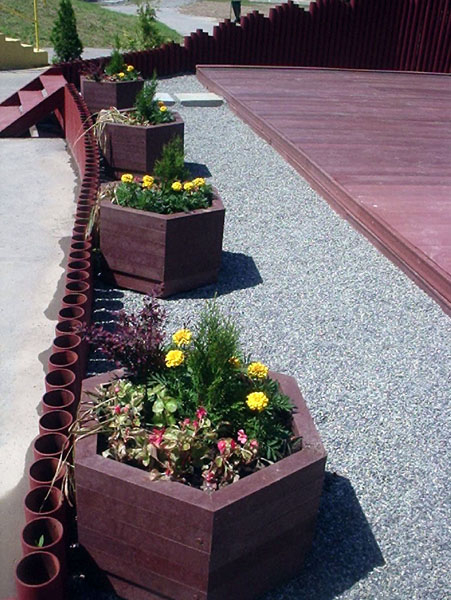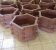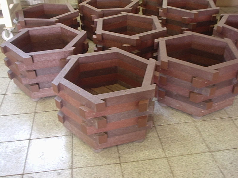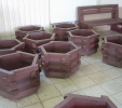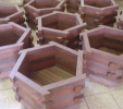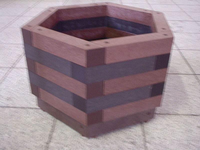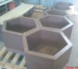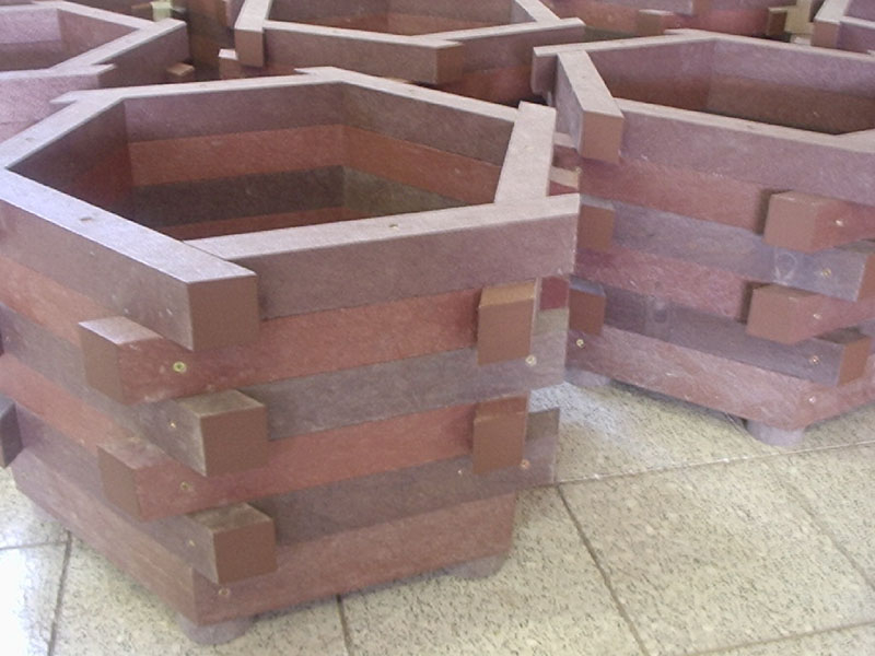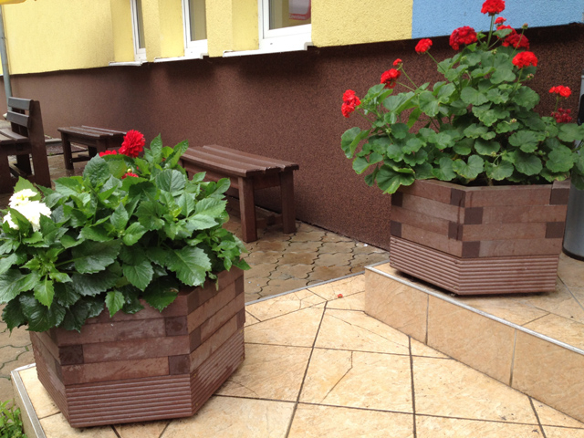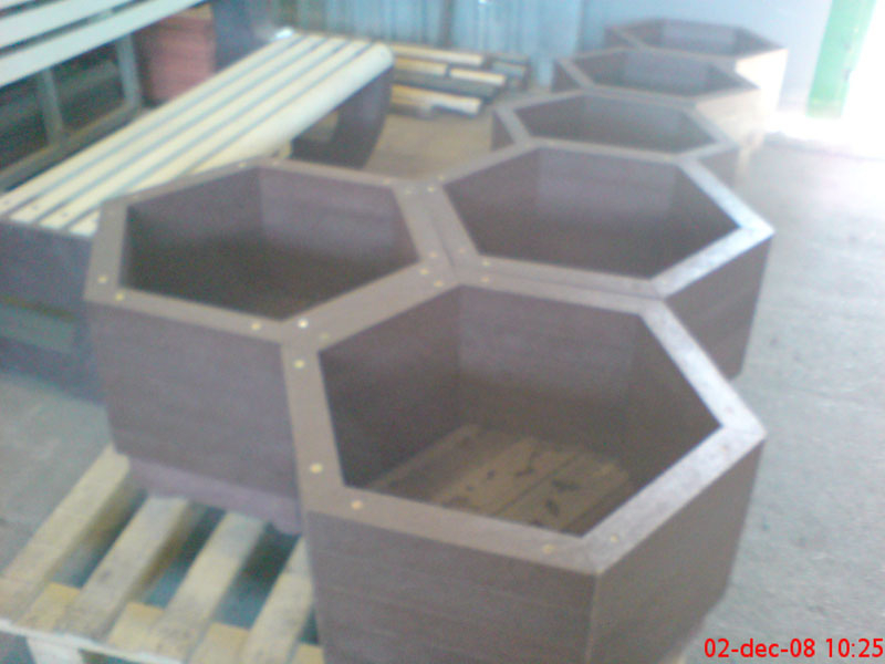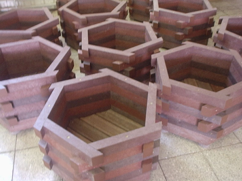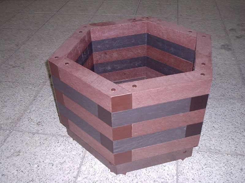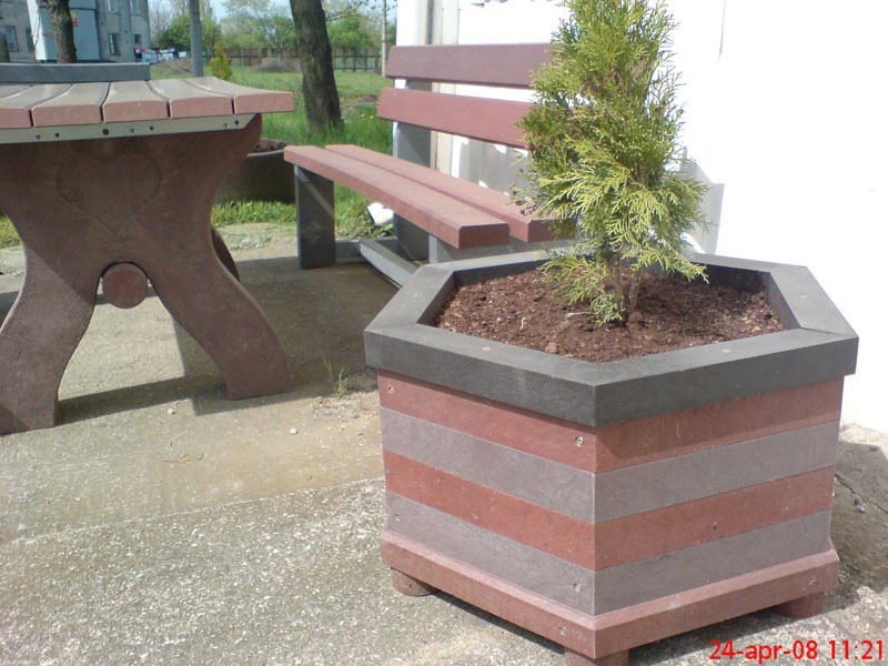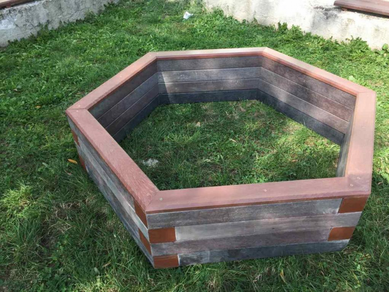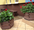 Hexagon flower planter with dimensions of approximately 70 cm – small, or larger one up to 100 cm in length. There can be used small prisms of different colors and sizes with an overlap - lobes.