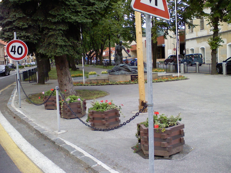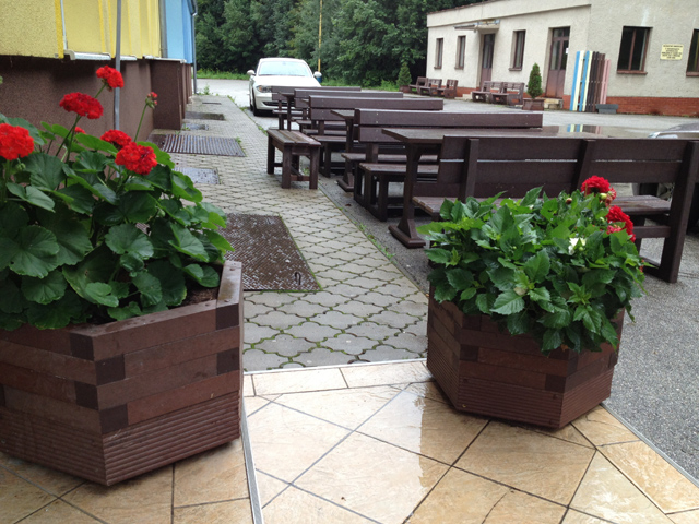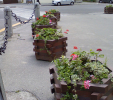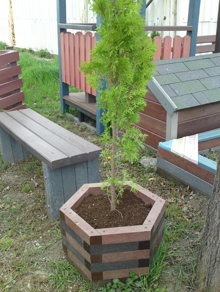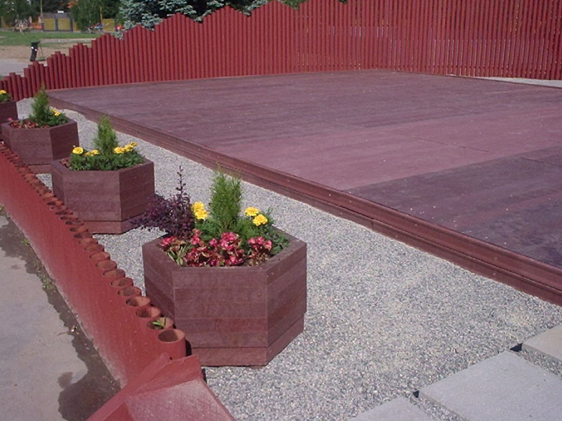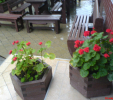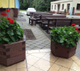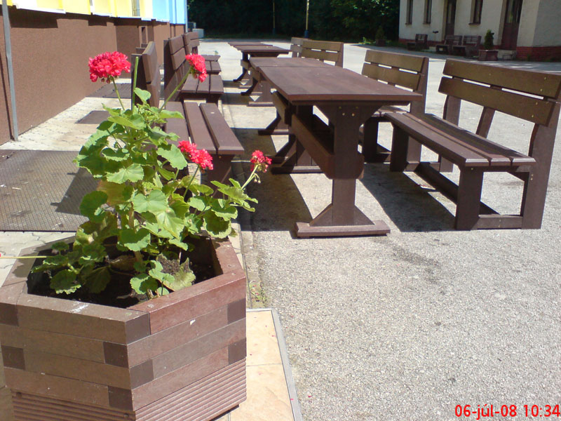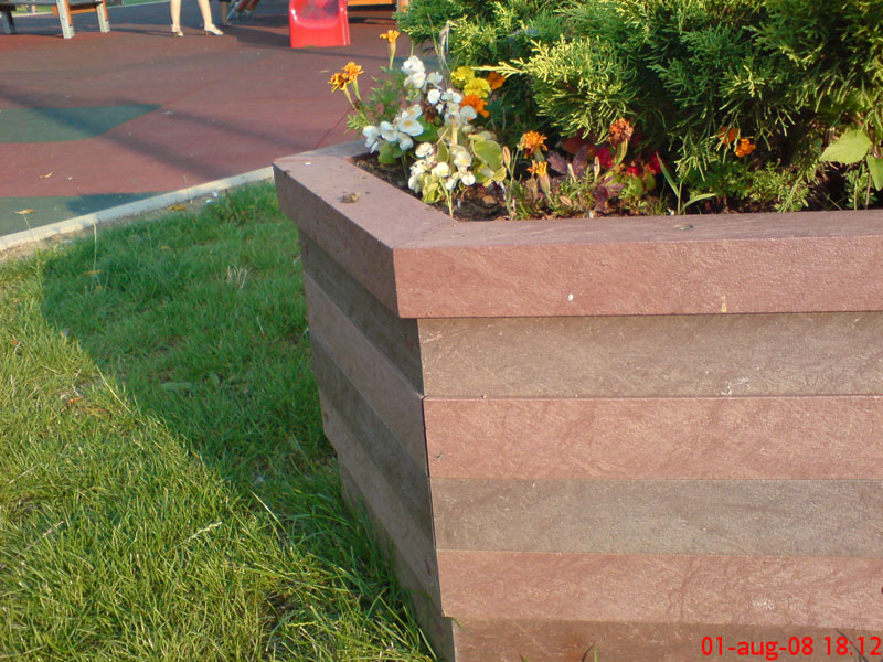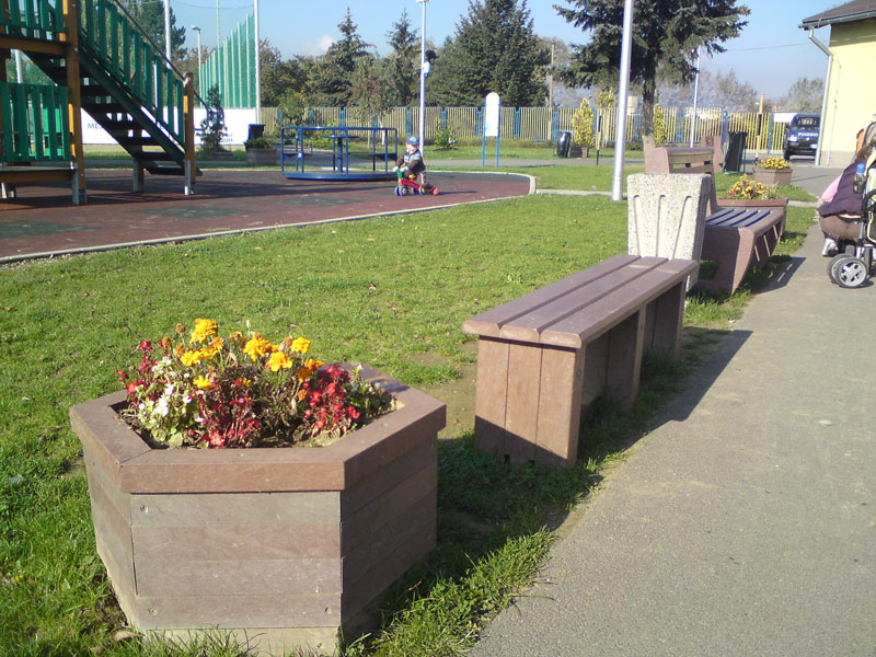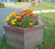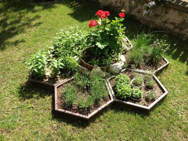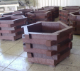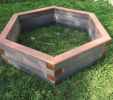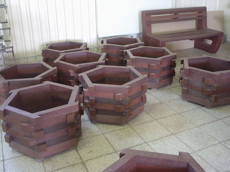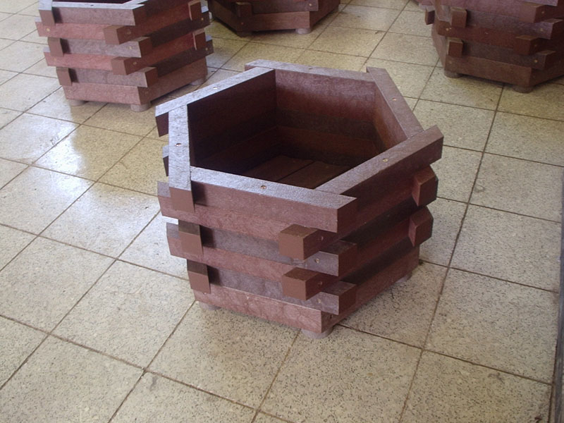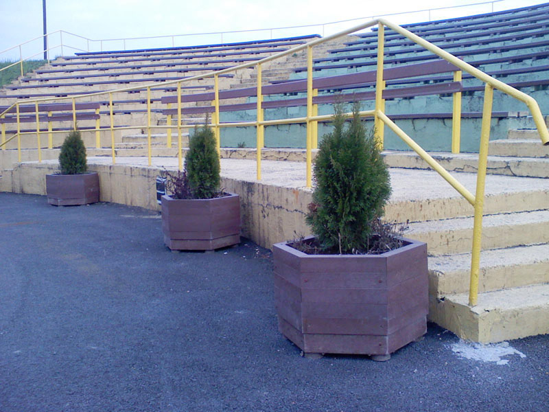 Hexagon flower planter with dimensions of approximately 70 cm – small, or larger one up to 100 cm in length. There can be used small prisms of different colors and sizes with an overlap - lobes.