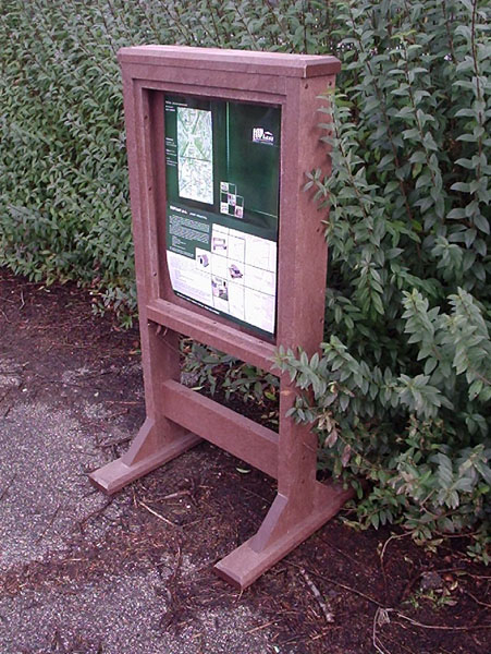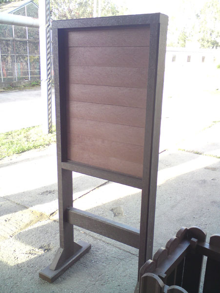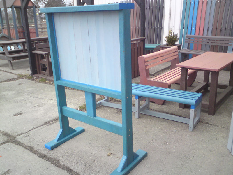 Info boards are heavy boards, windproof and weatherproof. Material is more durable than wood. In different sizes and colors. Usually are produced two versions, so-called a "small" information board and a "large" one. In agreement with the customer, we prepare different color designs - "made-to-measure" using various types of plastic or even wood profiles. Information panels can be anchored in the concrete-ground.
