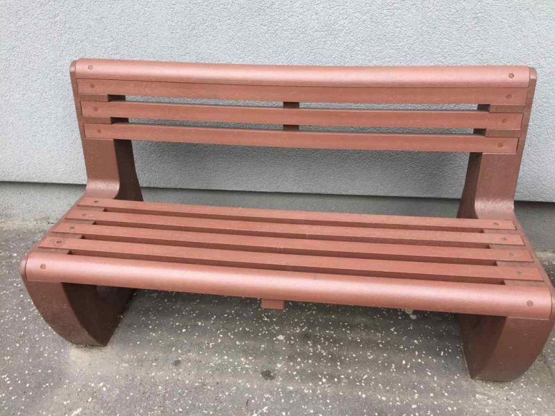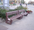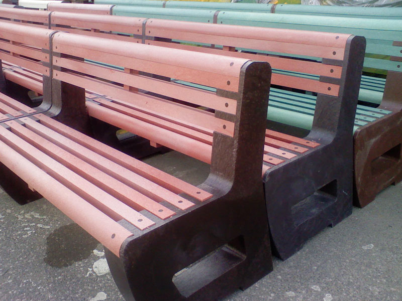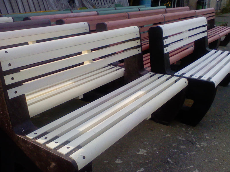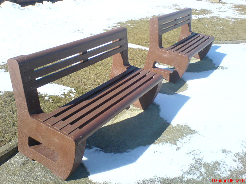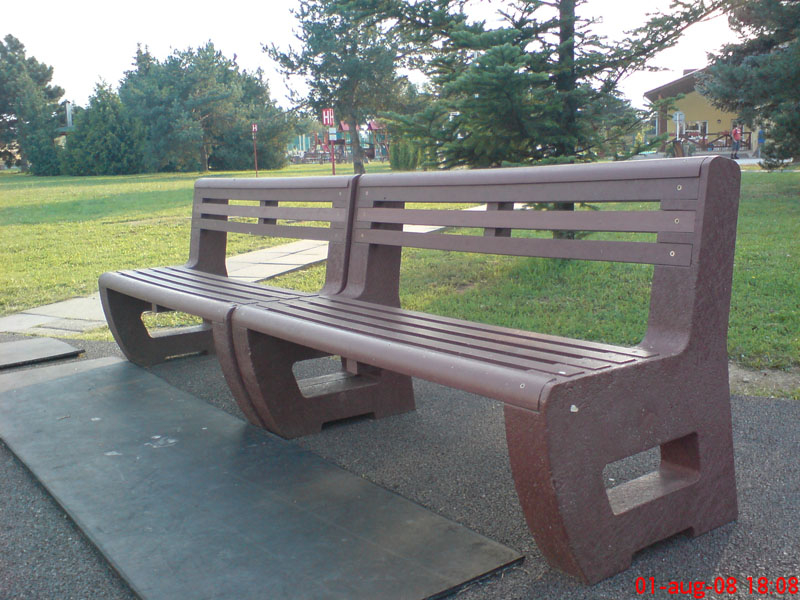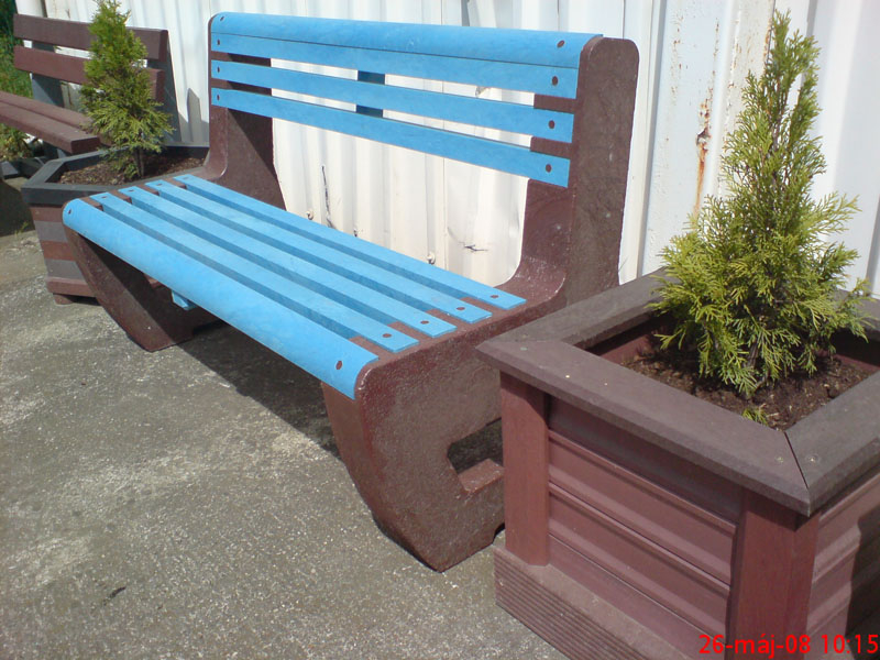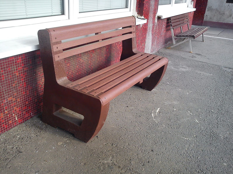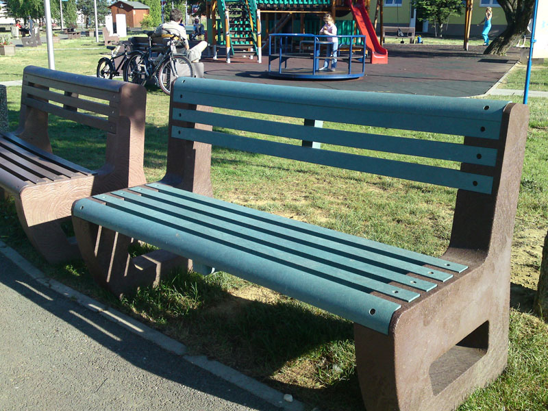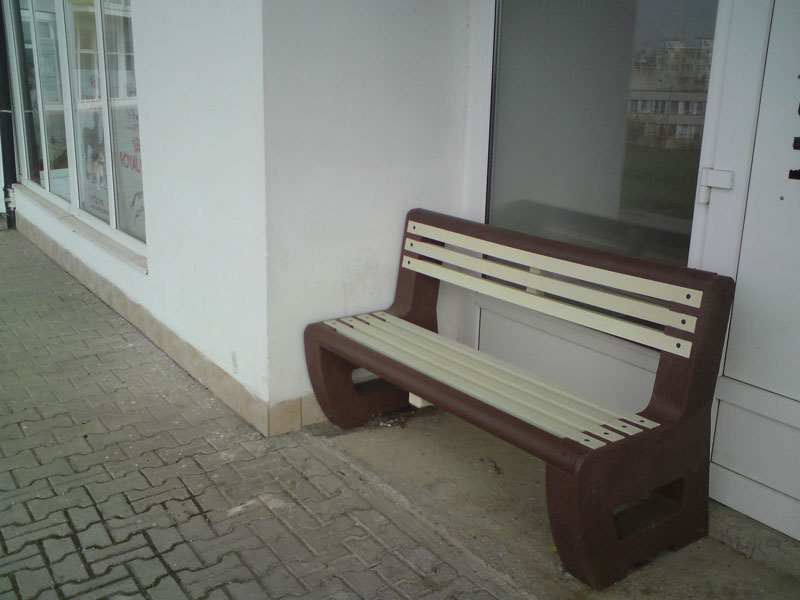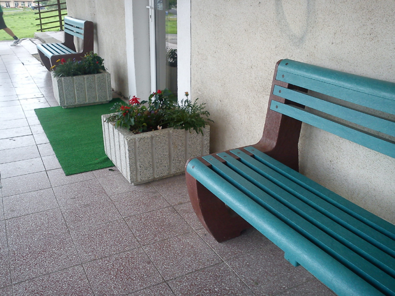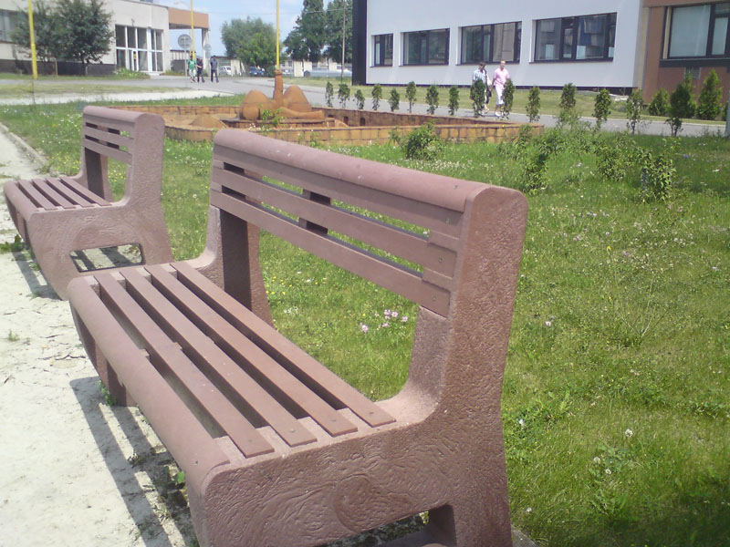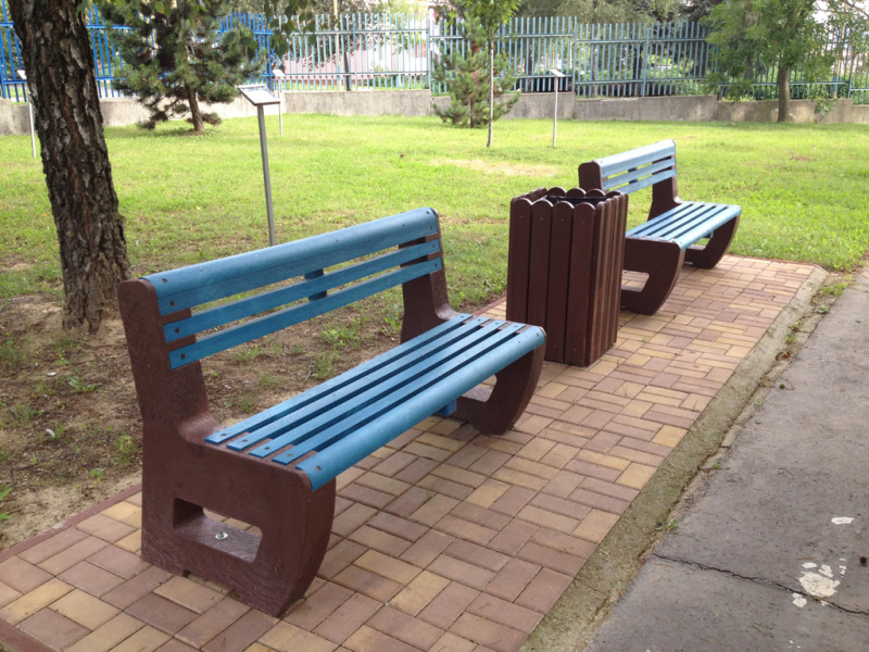 L-type bench is very popular due to color variations. Massive, 90 kg solid plastic bench is fully suitable for exteriors of municipalities, parks of businesses and organizations - more than 1000 units of benches sold. Of course, the most common color is brown in a dark or light combination. Product as a whole is resistant to mechanical damage and vandalism. It can be anchored directly to hard surfaces using L-iron or into a loose soil with bases that can be buried into the ground.