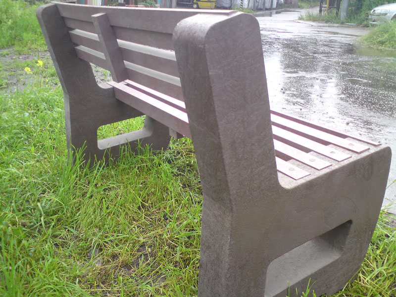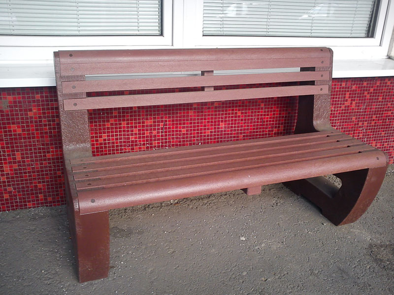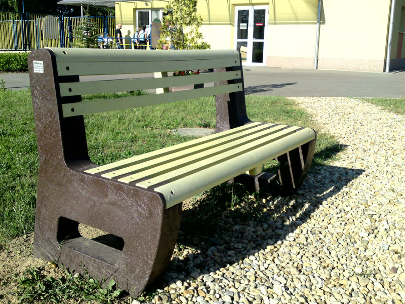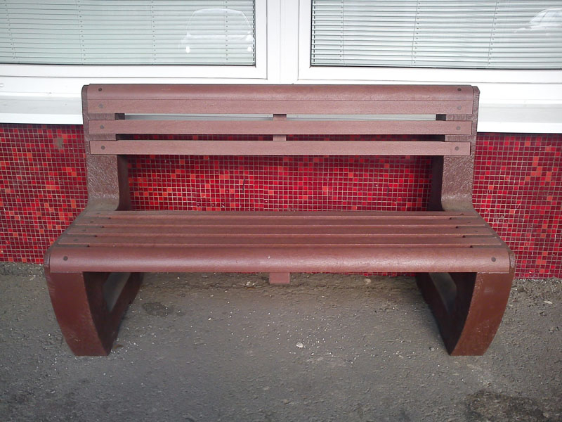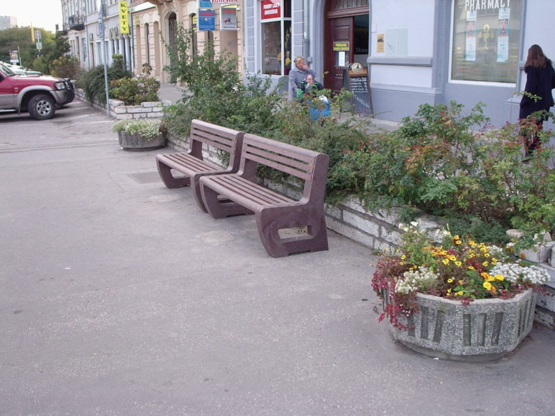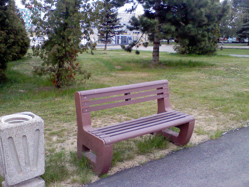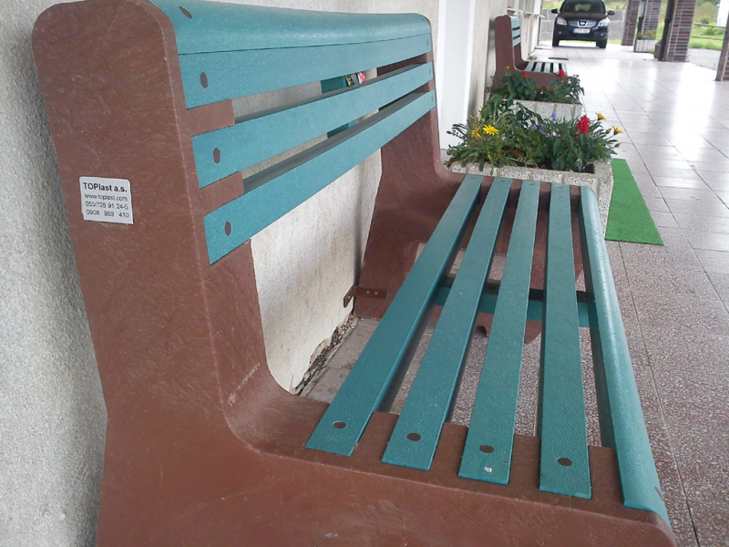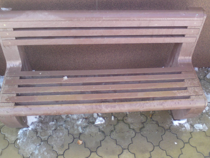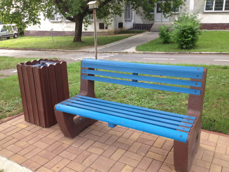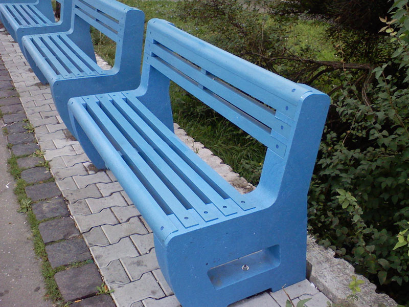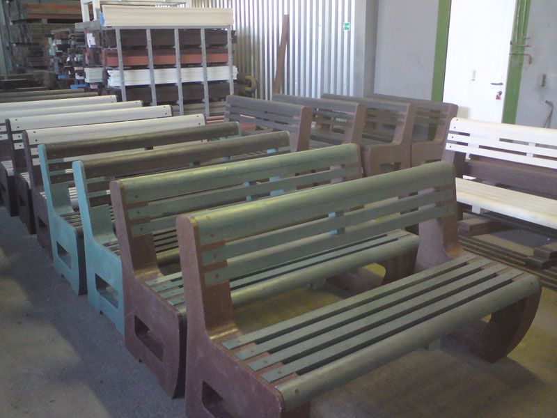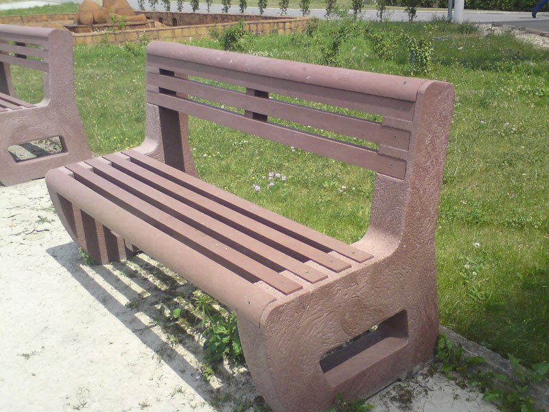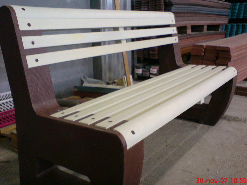 L-type bench is very popular due to color variations. Massive, 90 kg solid plastic bench is fully suitable for exteriors of municipalities, parks of businesses and organizations - more than 1000 units of benches sold. Of course, the most common color is brown in a dark or light combination. Product as a whole is resistant to mechanical damage and vandalism. It can be anchored directly to hard surfaces using L-iron or into a loose soil with bases that can be buried into the ground.