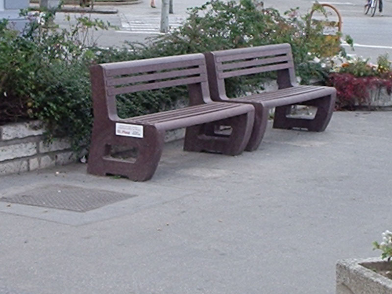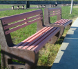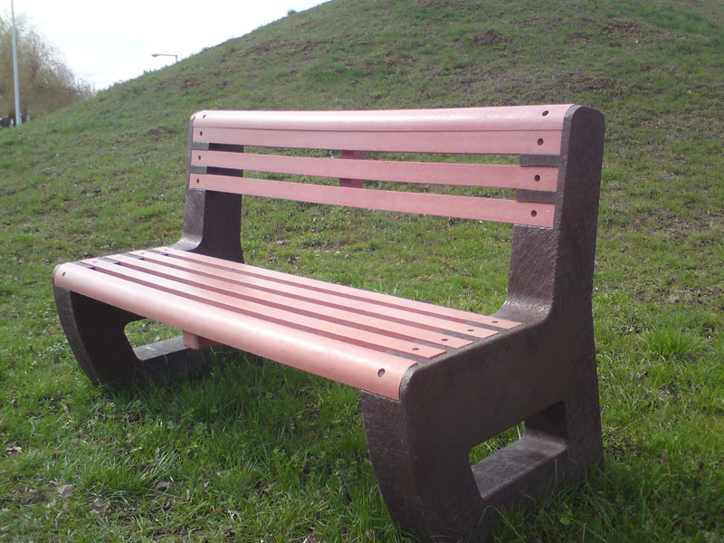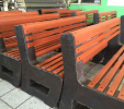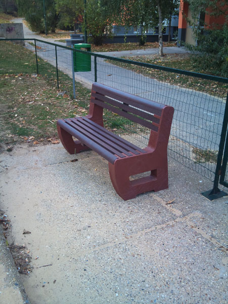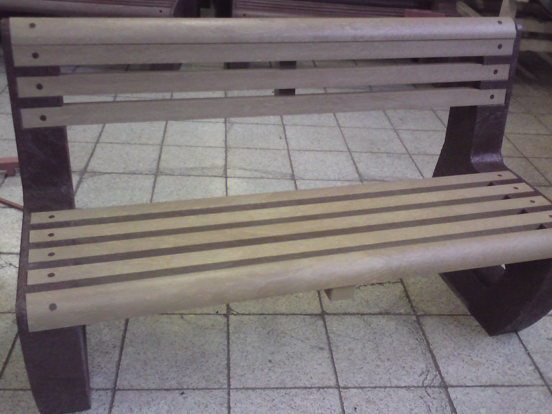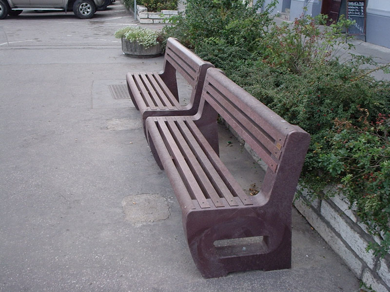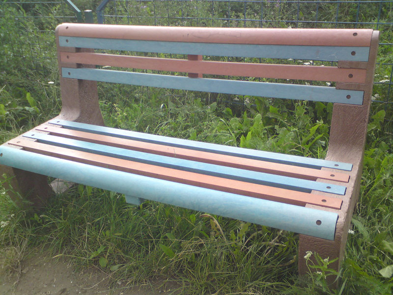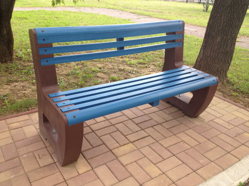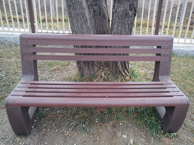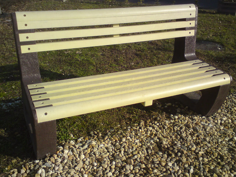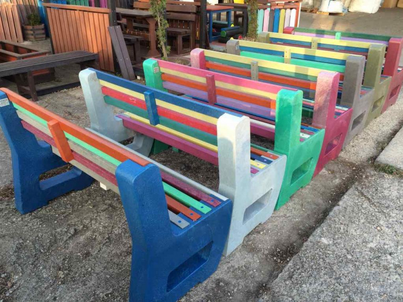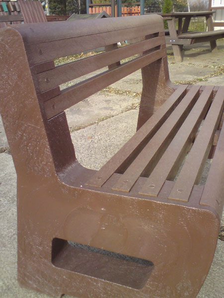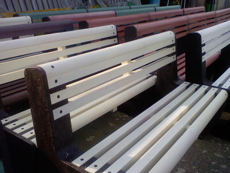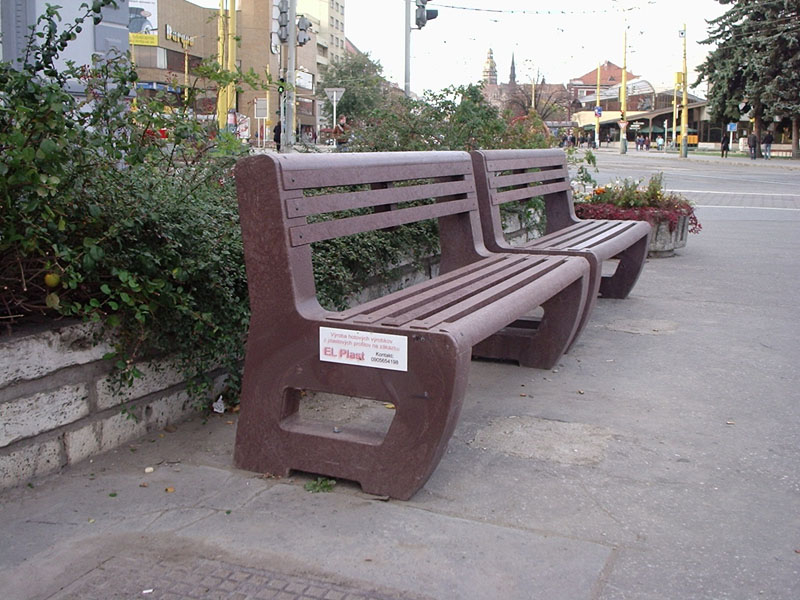 L-type bench is very popular due to color variations. Massive, 90 kg solid plastic bench is fully suitable for exteriors of municipalities, parks of businesses and organizations - more than 1000 units of benches sold. Of course, the most common color is brown in a dark or light combination. Product as a whole is resistant to mechanical damage and vandalism. It can be anchored directly to hard surfaces using L-iron or into a loose soil with bases that can be buried into the ground.