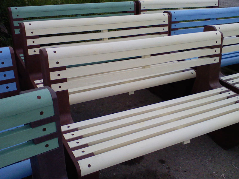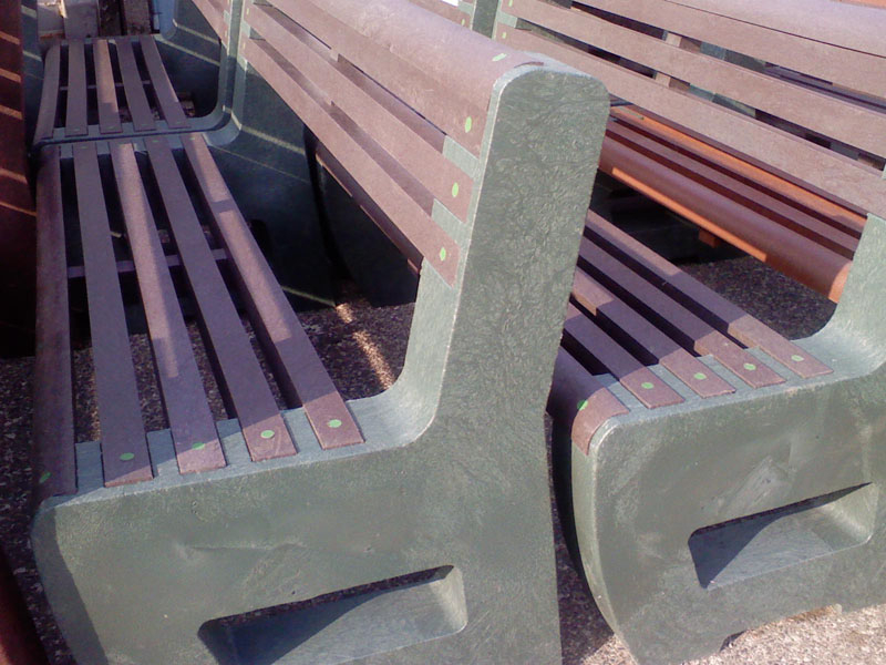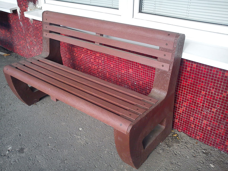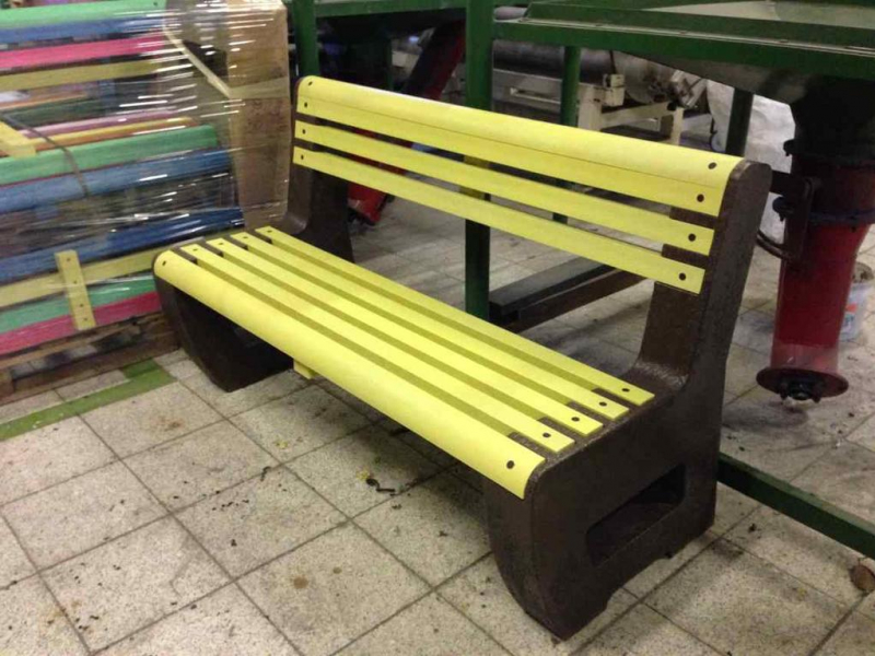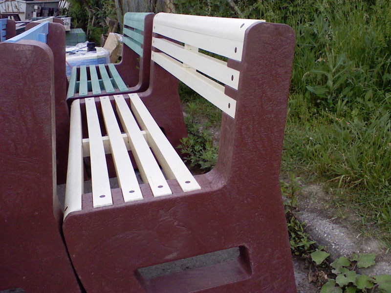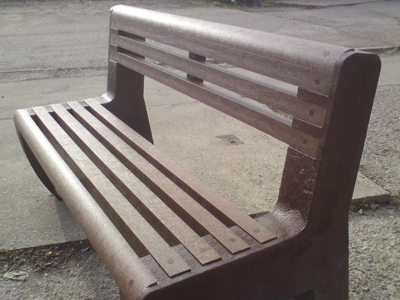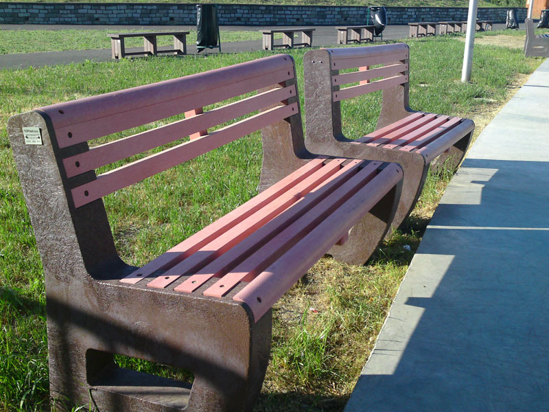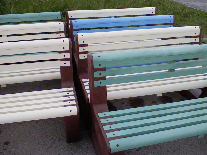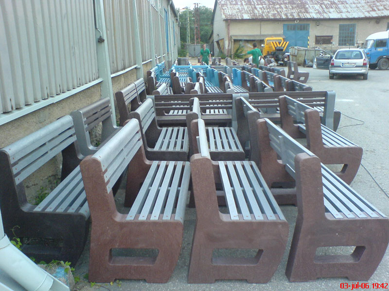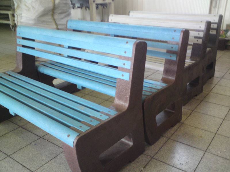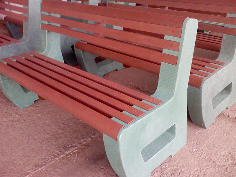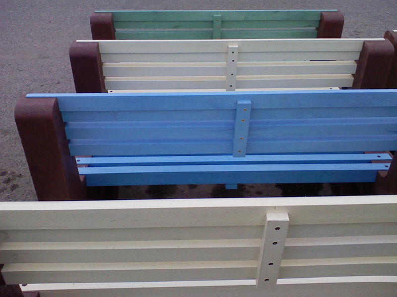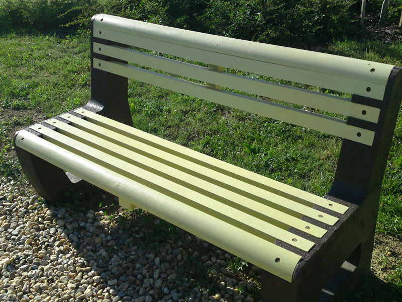 L-type bench is very popular due to color variations. Massive, 90 kg solid plastic bench is fully suitable for exteriors of municipalities, parks of businesses and organizations - more than 1000 units of benches sold. Of course, the most common color is brown in a dark or light combination. Product as a whole is resistant to mechanical damage and vandalism. It can be anchored directly to hard surfaces using L-iron or into a loose soil with bases that can be buried into the ground.