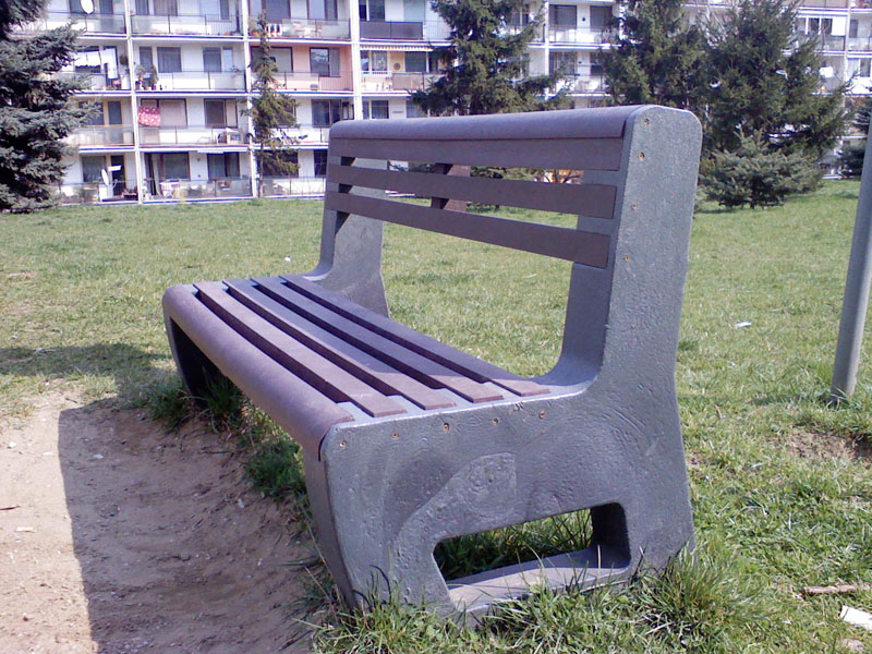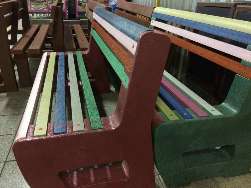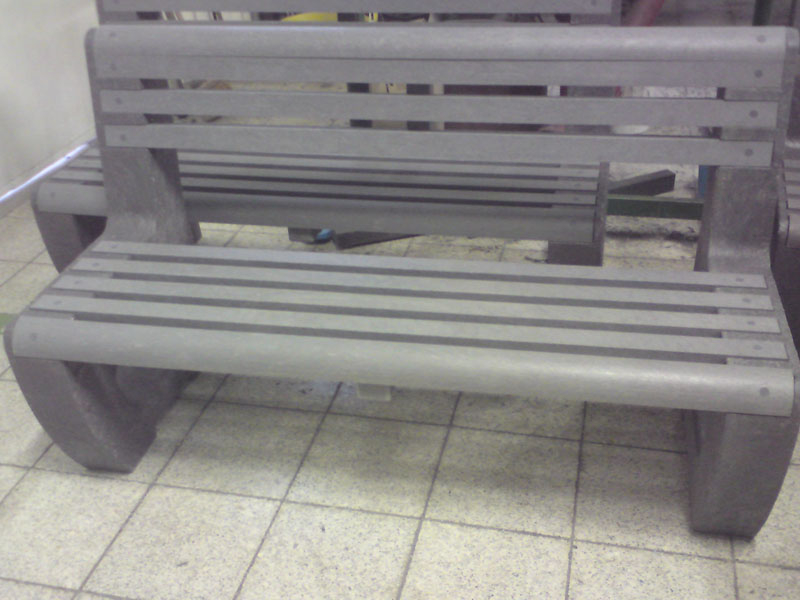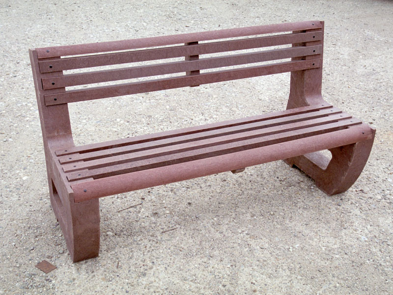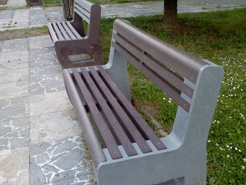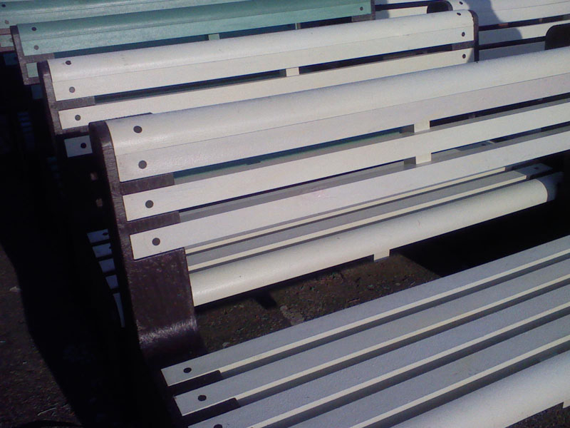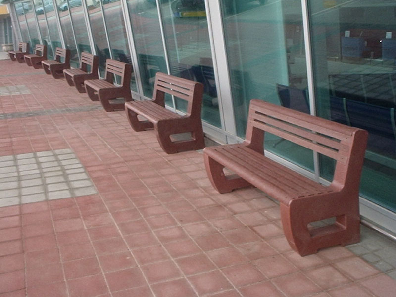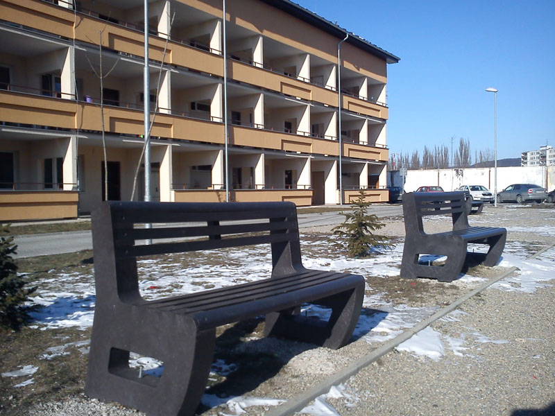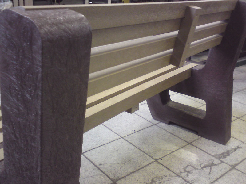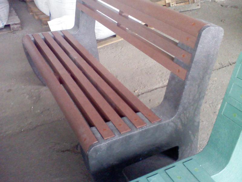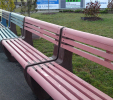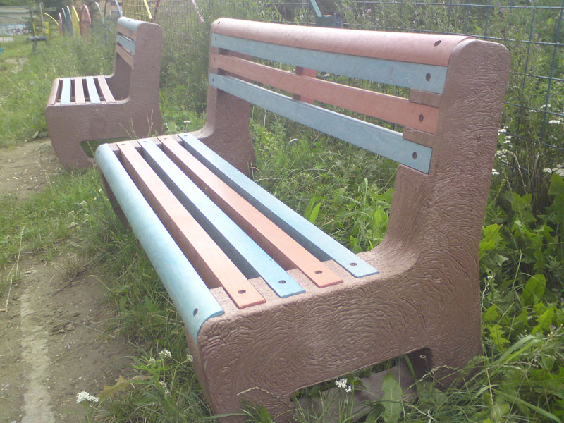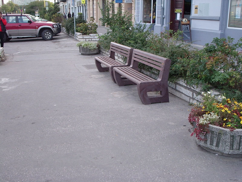 L-type bench is very popular due to color variations. Massive, 90 kg solid plastic bench is fully suitable for exteriors of municipalities, parks of businesses and organizations - more than 1000 units of benches sold. Of course, the most common color is brown in a dark or light combination. Product as a whole is resistant to mechanical damage and vandalism. It can be anchored directly to hard surfaces using L-iron or into a loose soil with bases that can be buried into the ground.