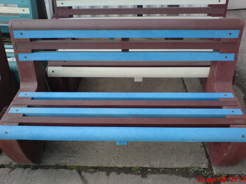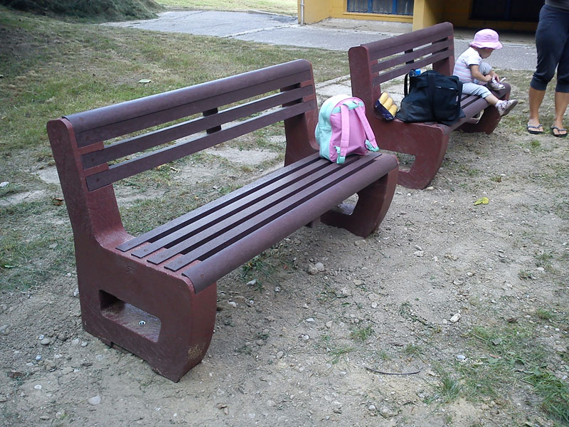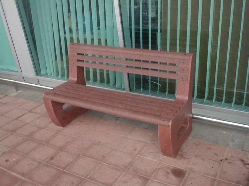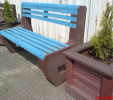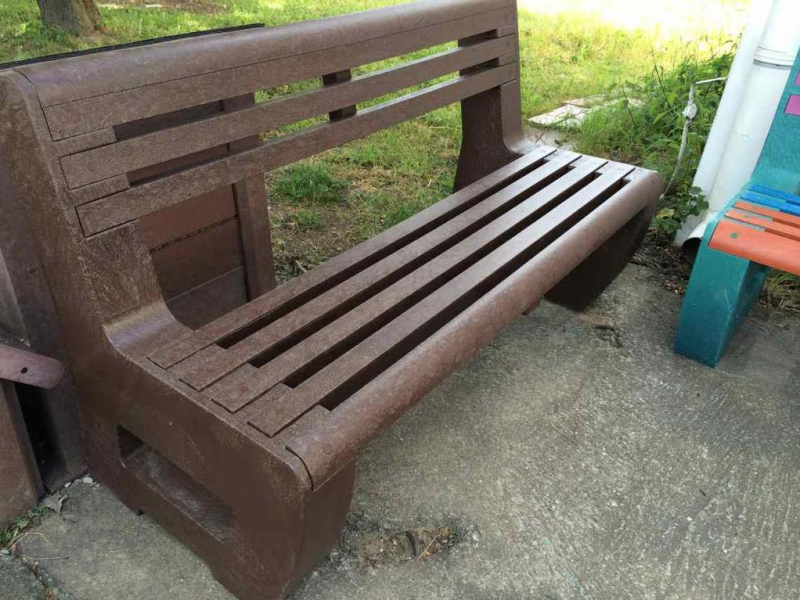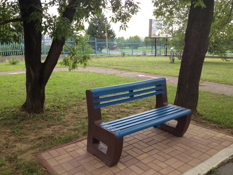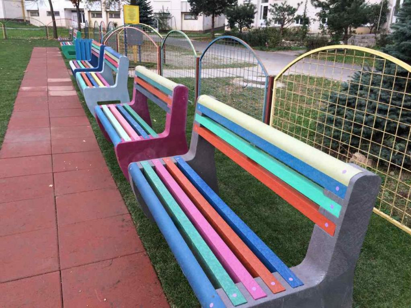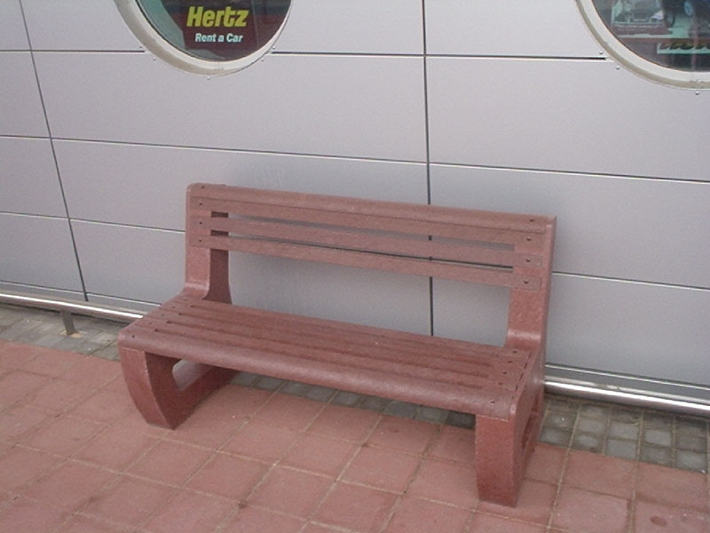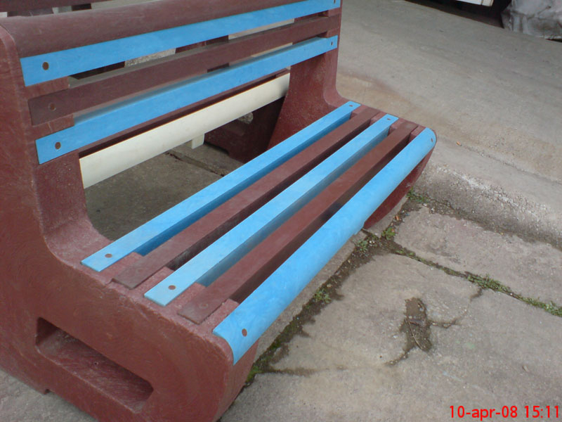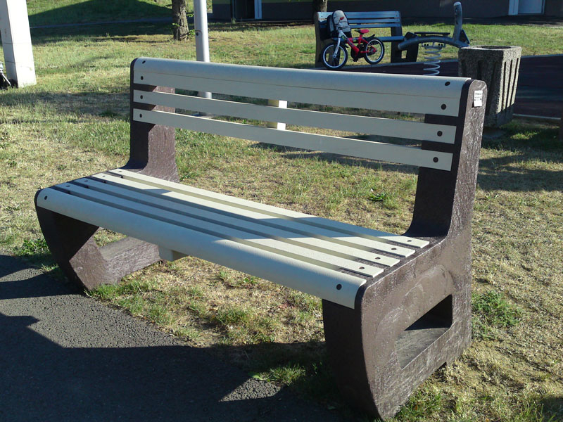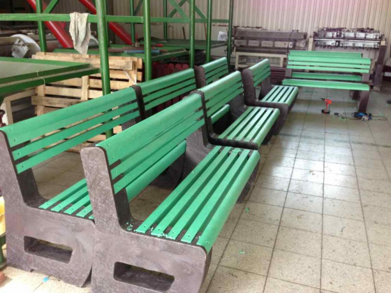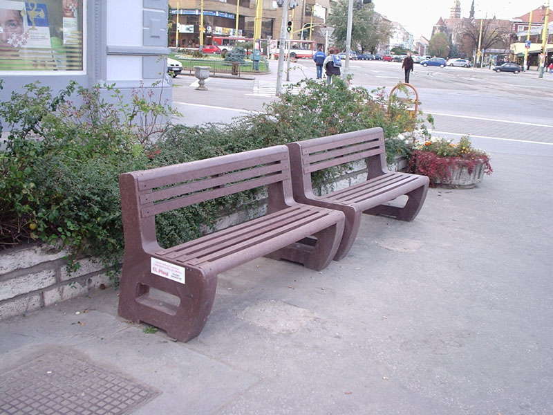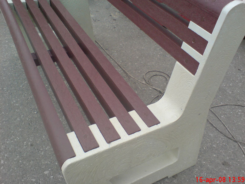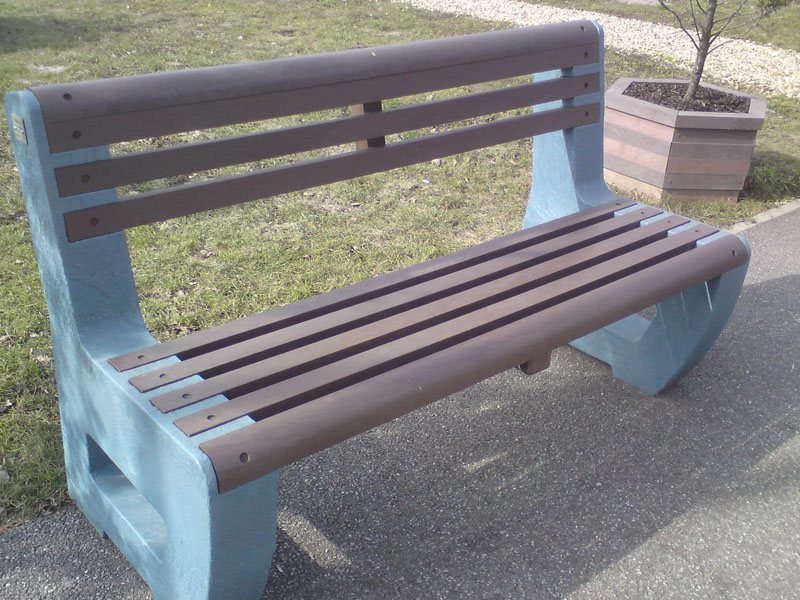 L-type bench is very popular due to color variations. Massive, 90 kg solid plastic bench is fully suitable for exteriors of municipalities, parks of businesses and organizations - more than 1000 units of benches sold. Of course, the most common color is brown in a dark or light combination. Product as a whole is resistant to mechanical damage and vandalism. It can be anchored directly to hard surfaces using L-iron or into a loose soil with bases that can be buried into the ground.