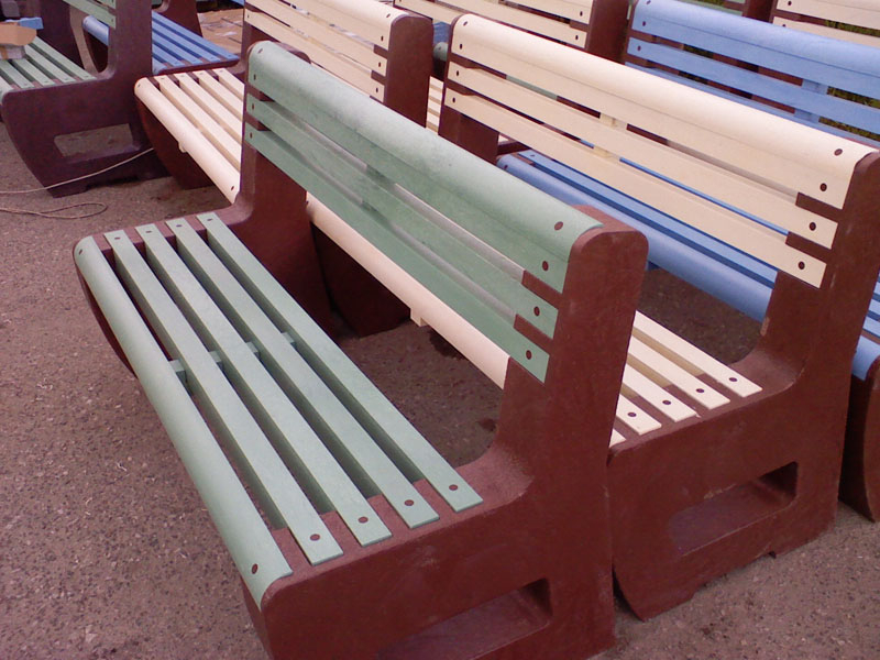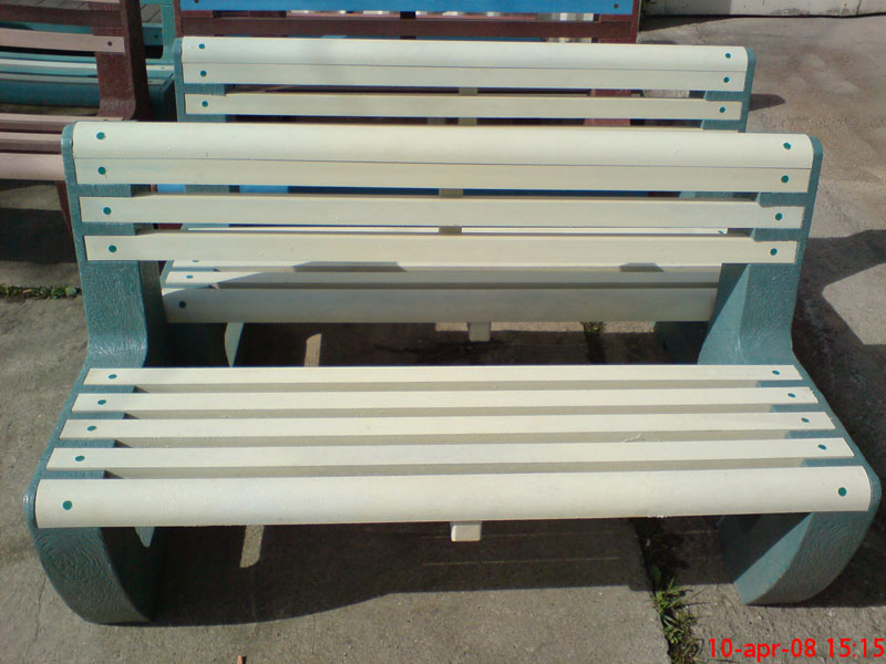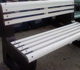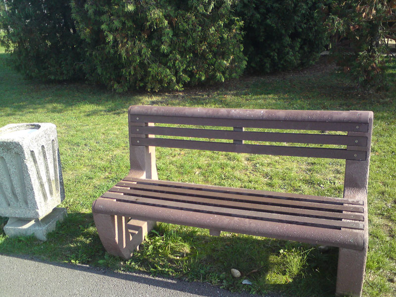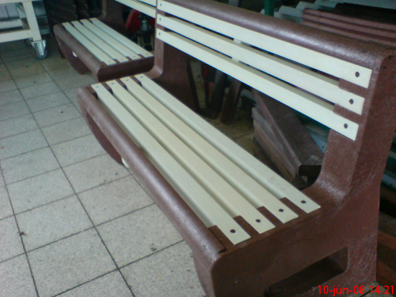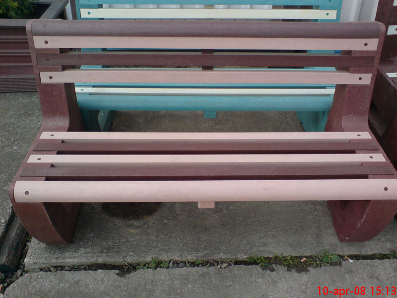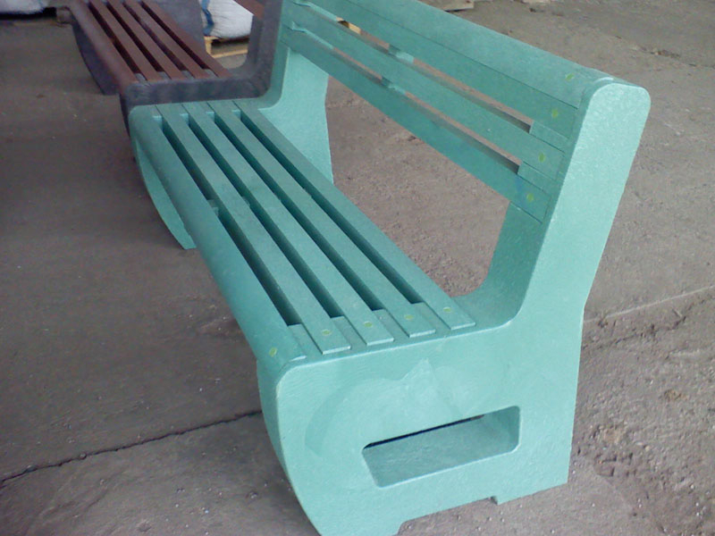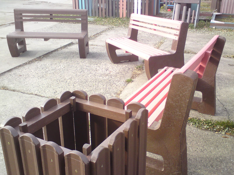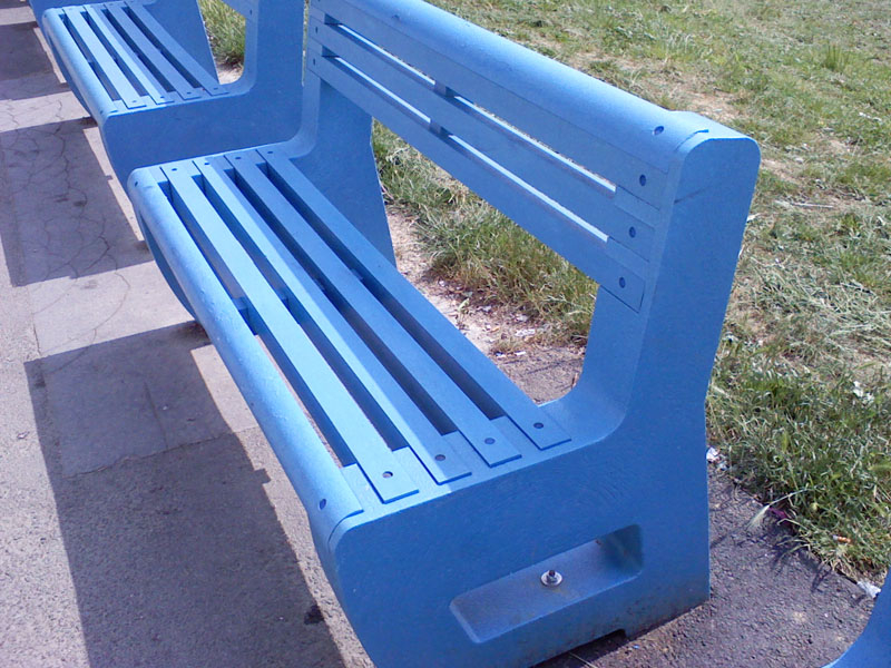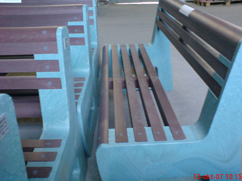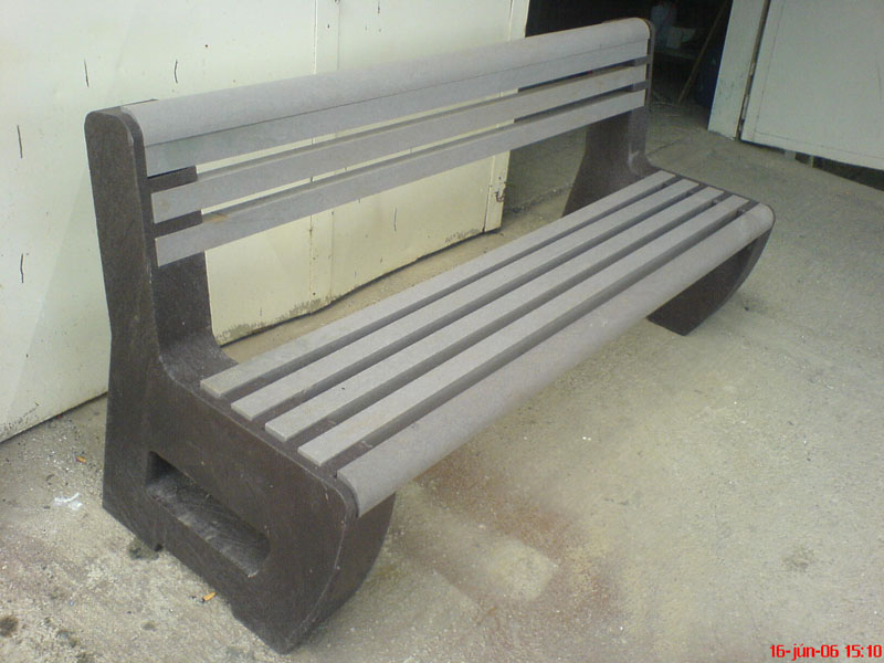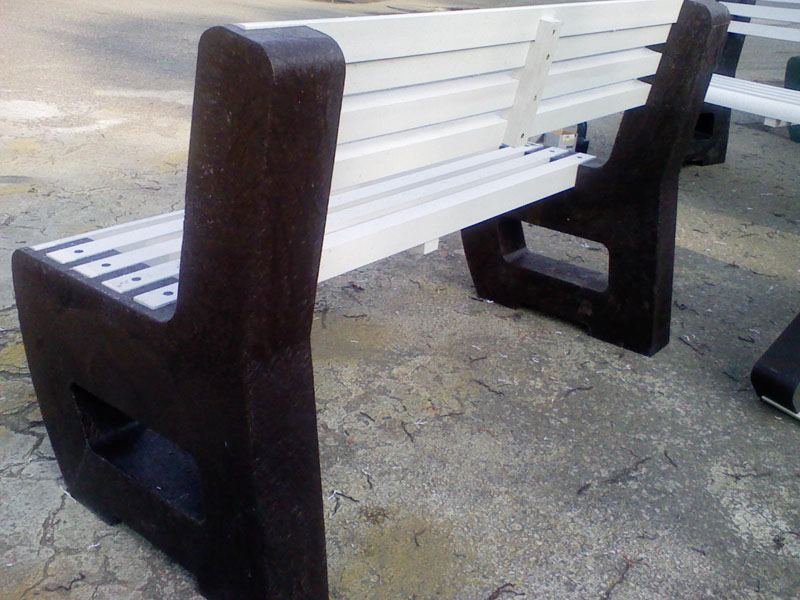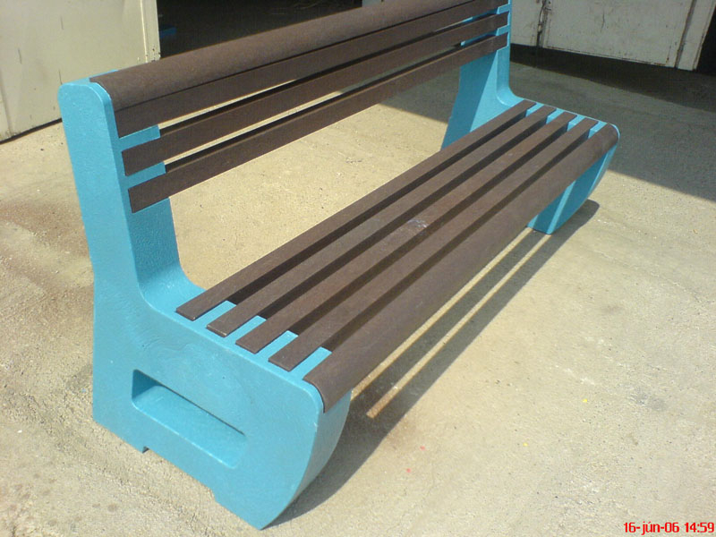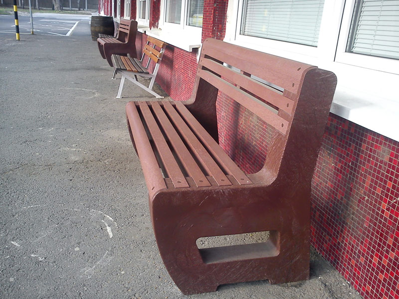 L-type bench is very popular due to color variations. Massive, 90 kg solid plastic bench is fully suitable for exteriors of municipalities, parks of businesses and organizations - more than 1000 units of benches sold. Of course, the most common color is brown in a dark or light combination. Product as a whole is resistant to mechanical damage and vandalism. It can be anchored directly to hard surfaces using L-iron or into a loose soil with bases that can be buried into the ground.