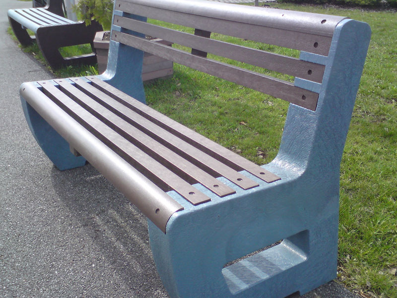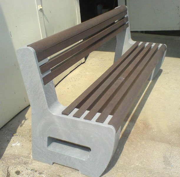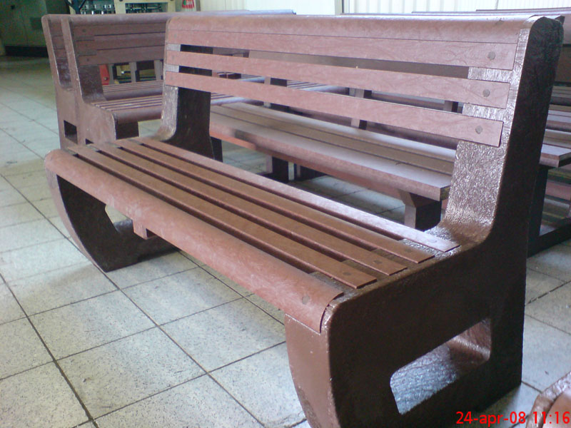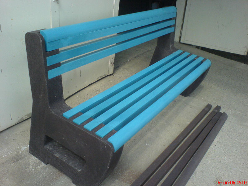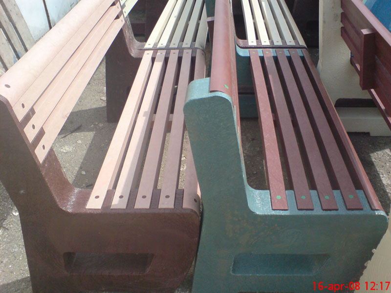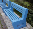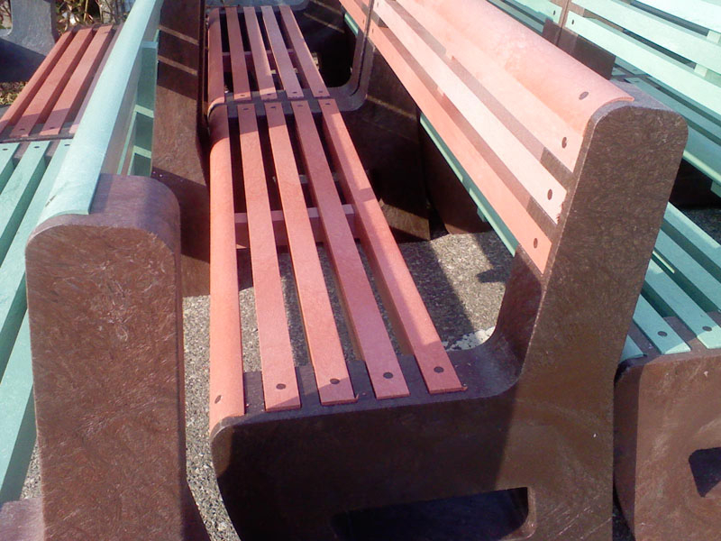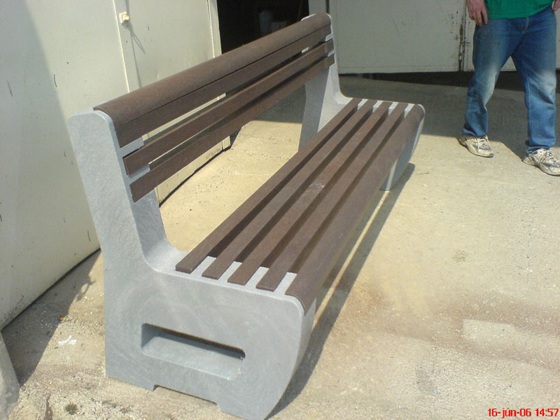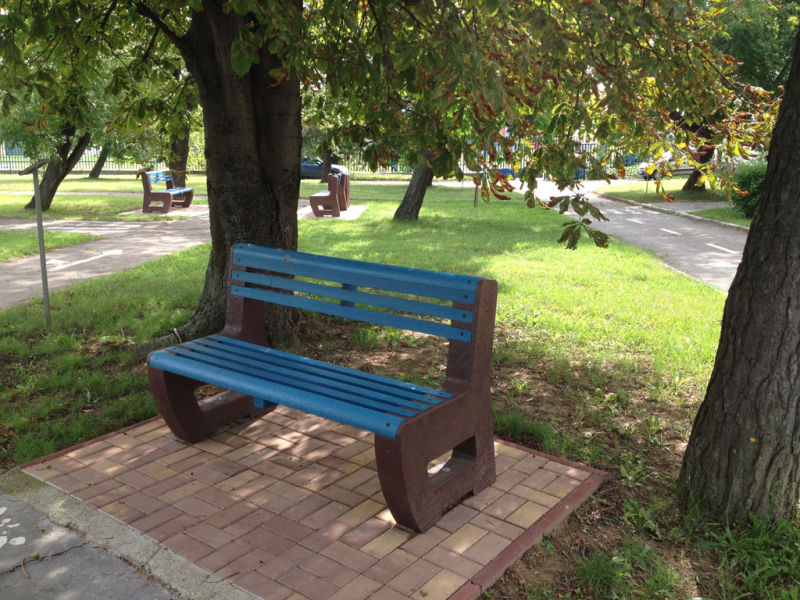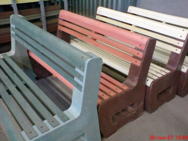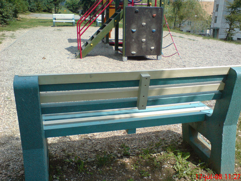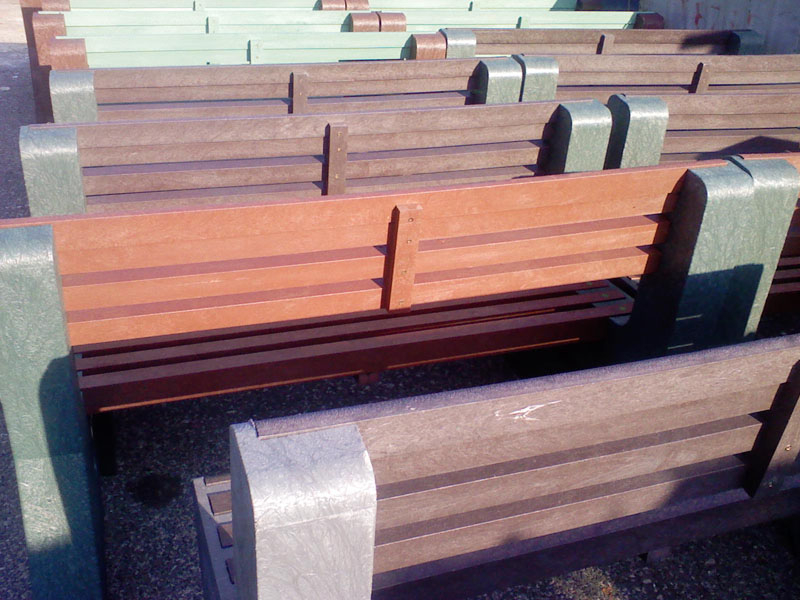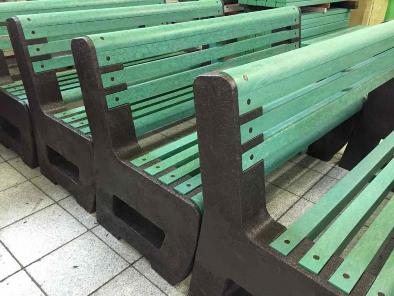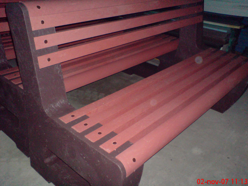 L-type bench is very popular due to color variations. Massive, 90 kg solid plastic bench is fully suitable for exteriors of municipalities, parks of businesses and organizations - more than 1000 units of benches sold. Of course, the most common color is brown in a dark or light combination. Product as a whole is resistant to mechanical damage and vandalism. It can be anchored directly to hard surfaces using L-iron or into a loose soil with bases that can be buried into the ground.