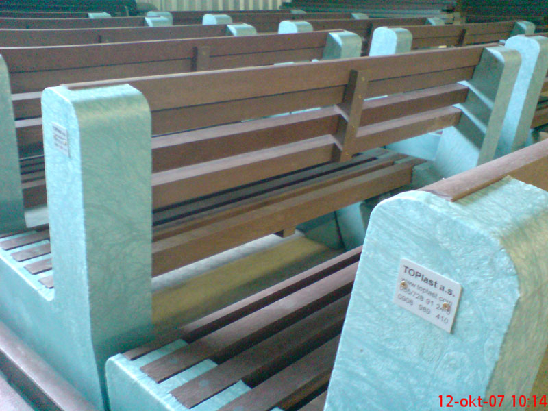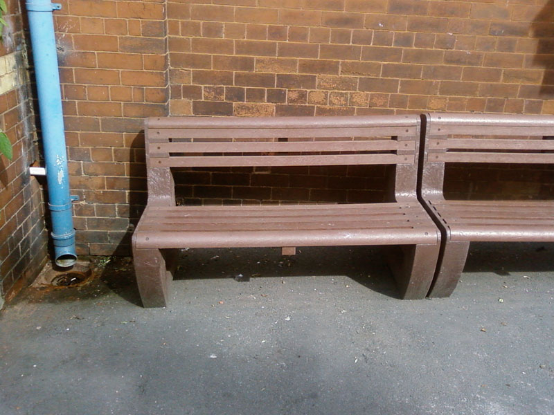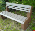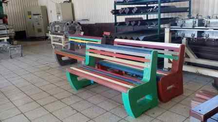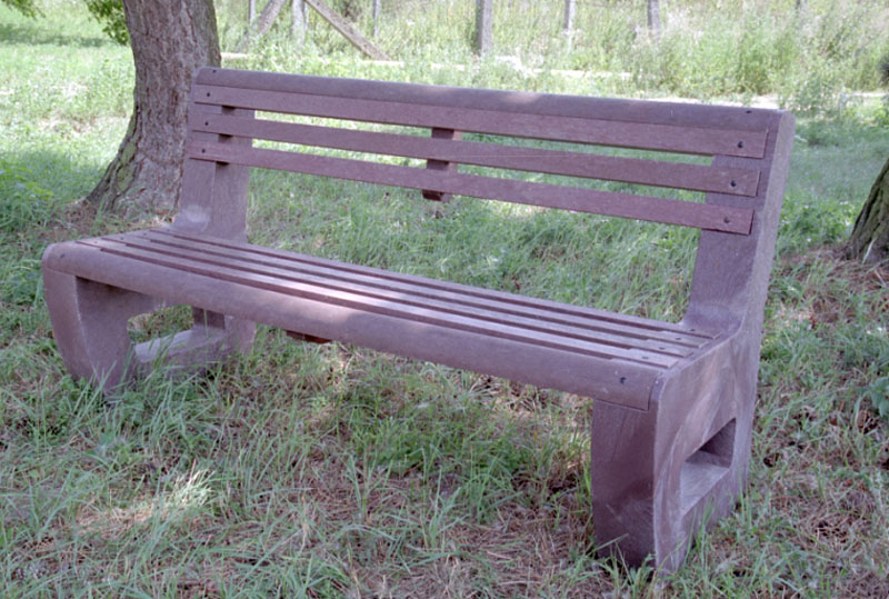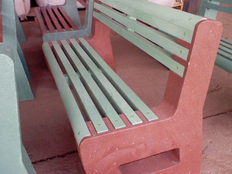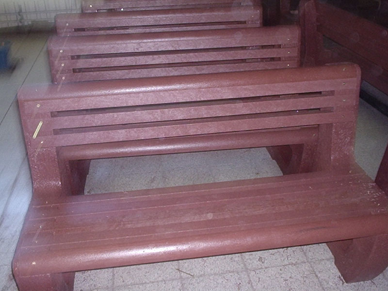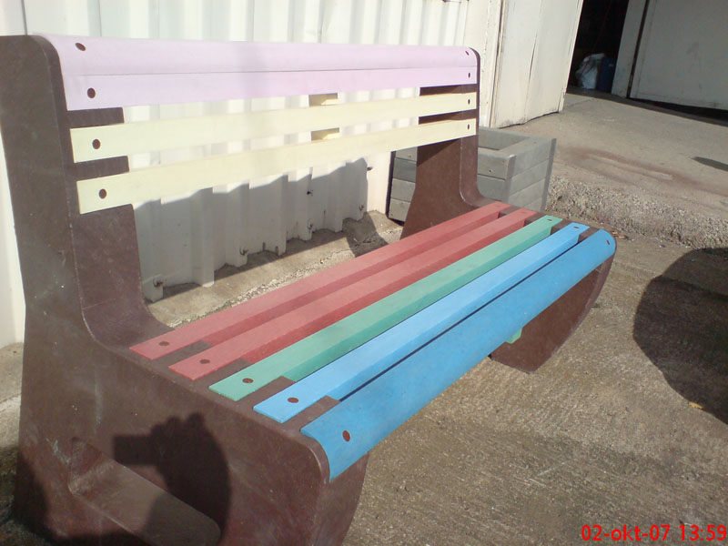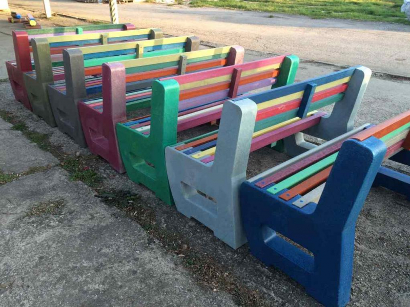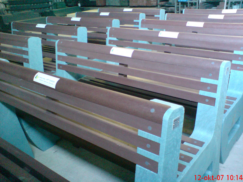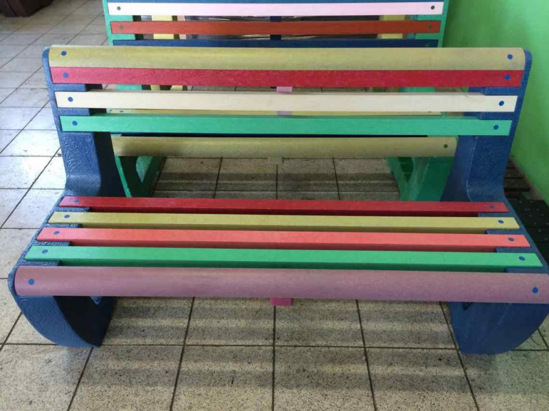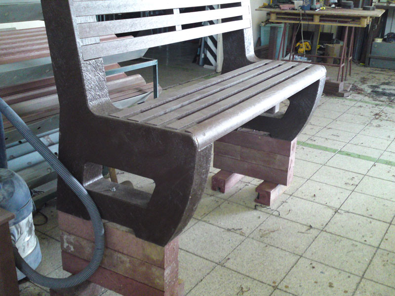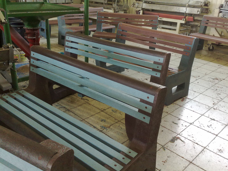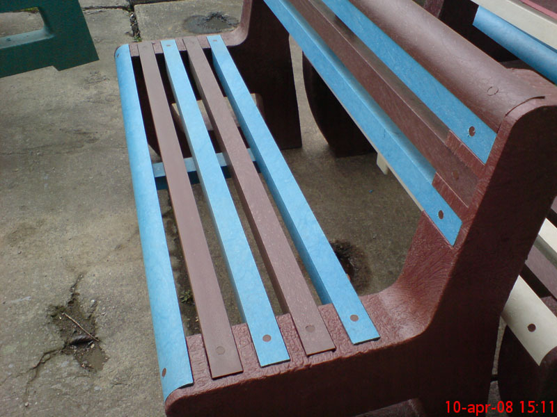 L-type bench is very popular due to color variations. Massive, 90 kg solid plastic bench is fully suitable for exteriors of municipalities, parks of businesses and organizations - more than 1000 units of benches sold. Of course, the most common color is brown in a dark or light combination. Product as a whole is resistant to mechanical damage and vandalism. It can be anchored directly to hard surfaces using L-iron or into a loose soil with bases that can be buried into the ground.