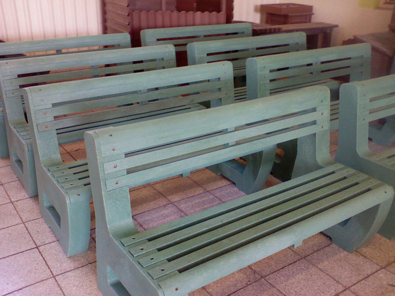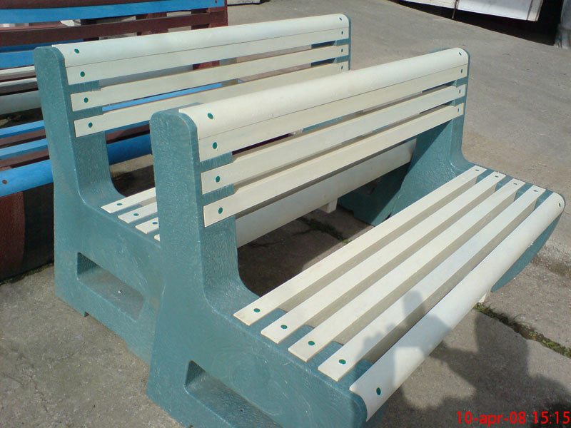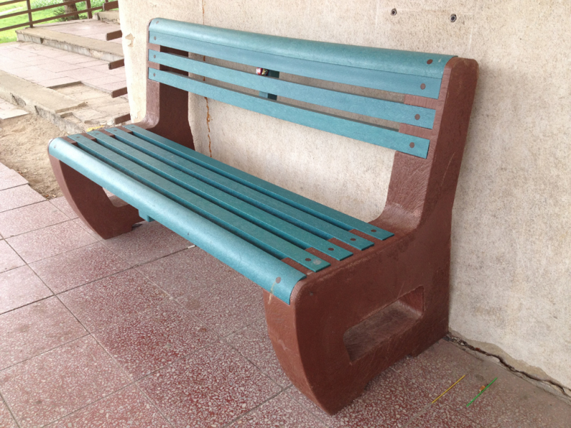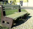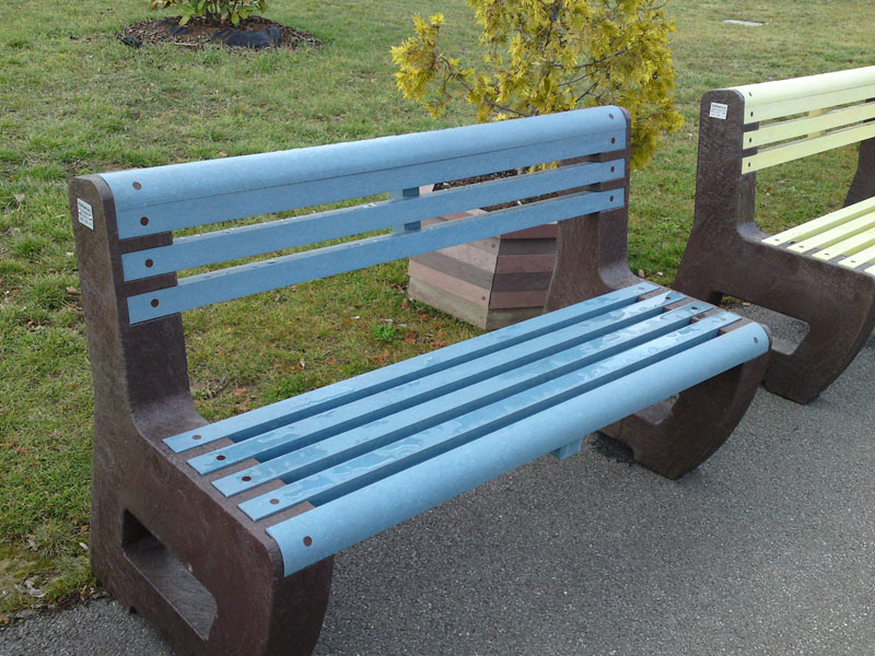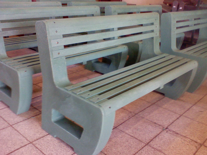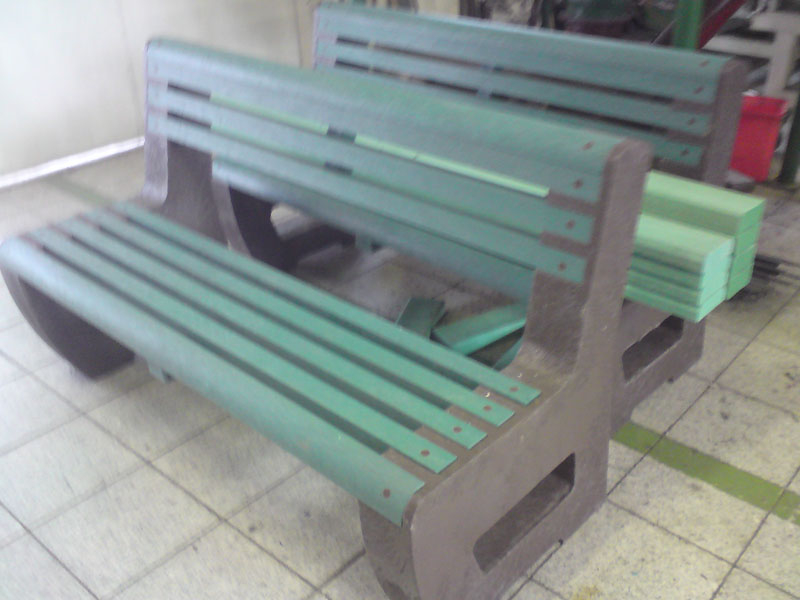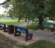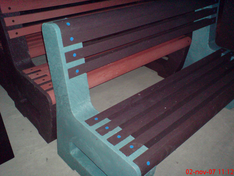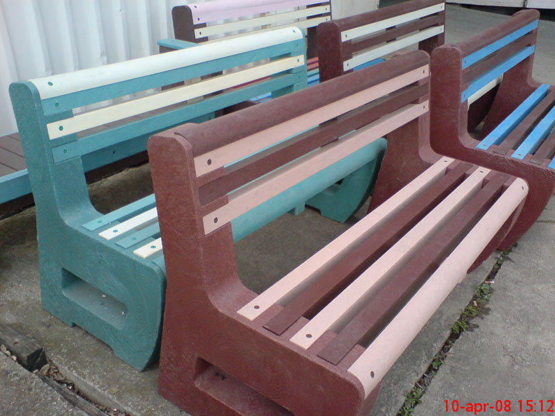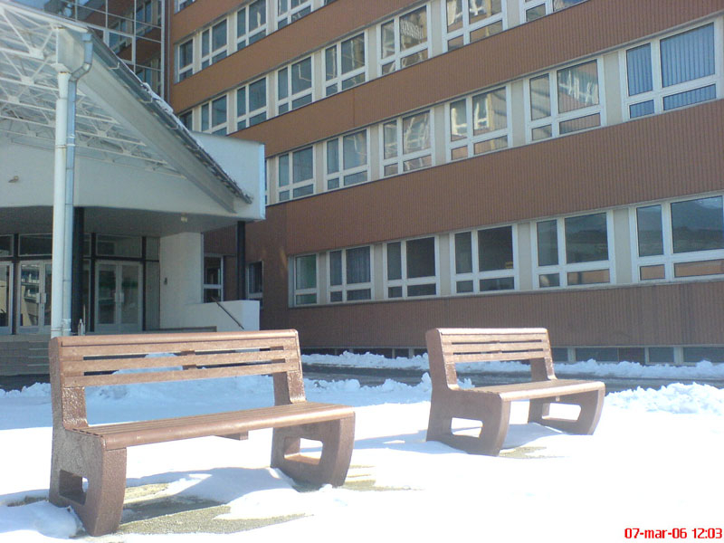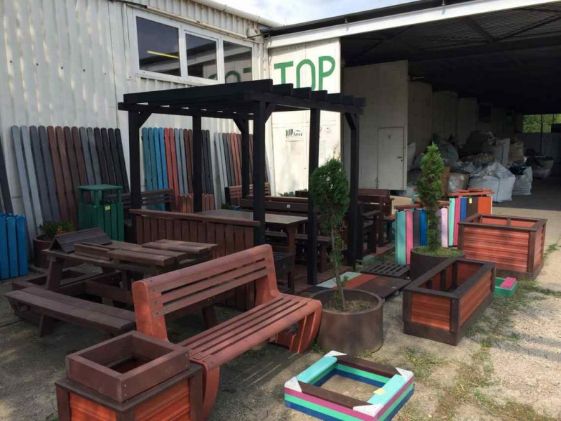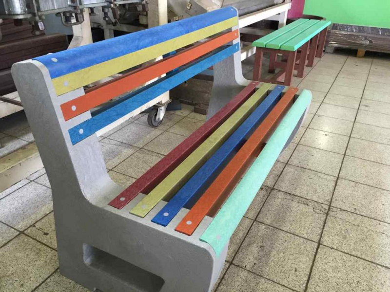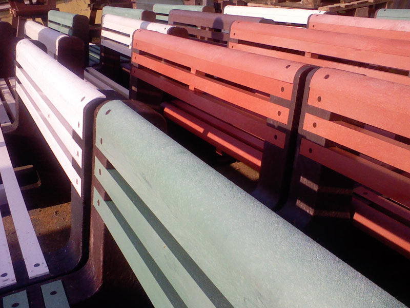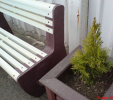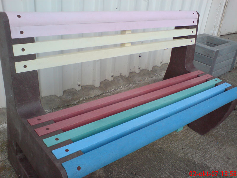 L-type bench is very popular due to color variations. Massive, 90 kg solid plastic bench is fully suitable for exteriors of municipalities, parks of businesses and organizations - more than 1000 units of benches sold. Of course, the most common color is brown in a dark or light combination. Product as a whole is resistant to mechanical damage and vandalism. It can be anchored directly to hard surfaces using L-iron or into a loose soil with bases that can be buried into the ground.