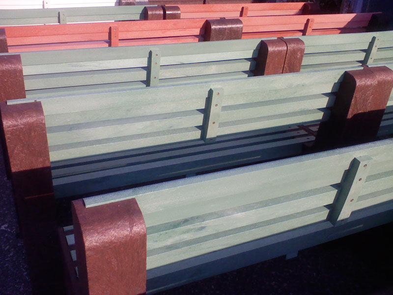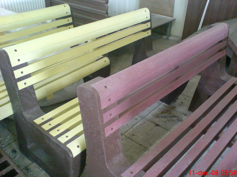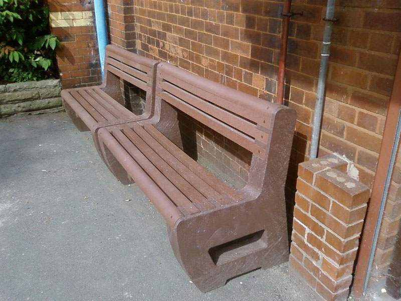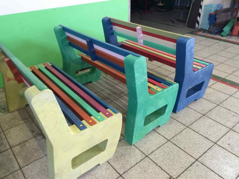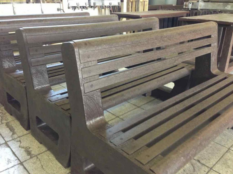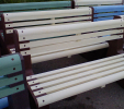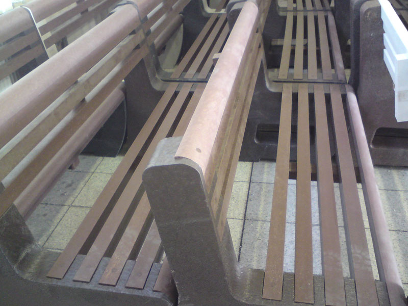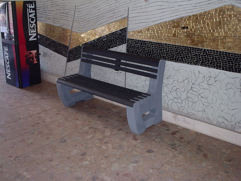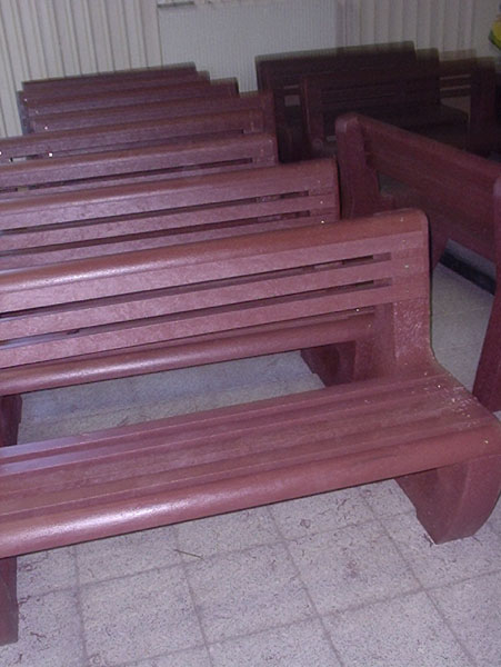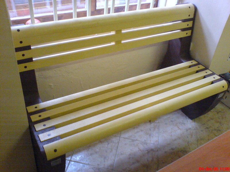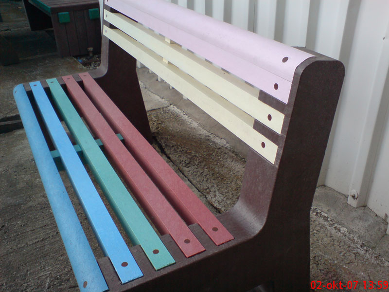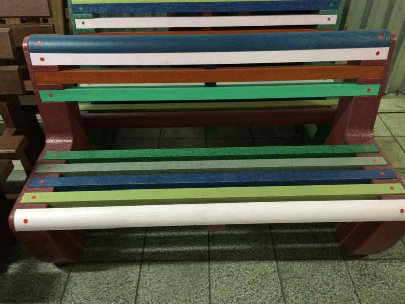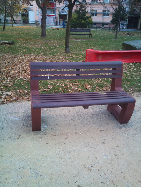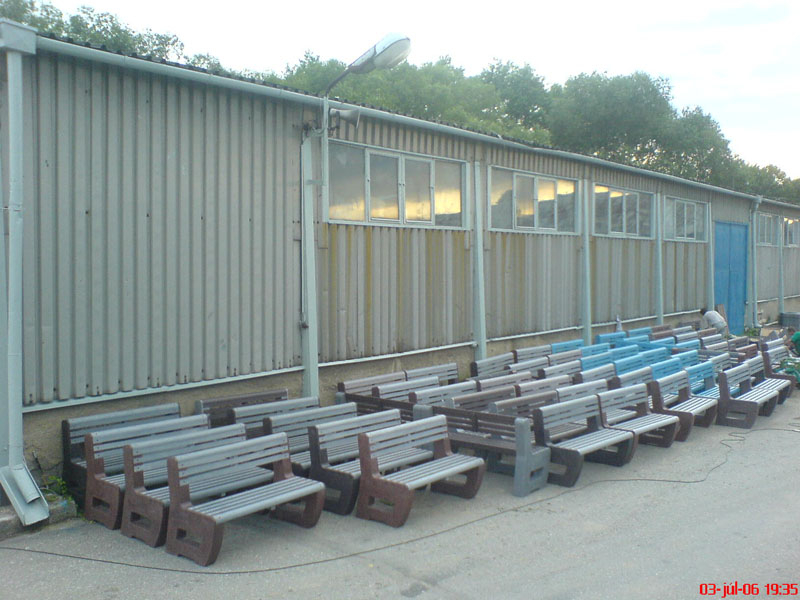 L-type bench is very popular due to color variations. Massive, 90 kg solid plastic bench is fully suitable for exteriors of municipalities, parks of businesses and organizations - more than 1000 units of benches sold. Of course, the most common color is brown in a dark or light combination. Product as a whole is resistant to mechanical damage and vandalism. It can be anchored directly to hard surfaces using L-iron or into a loose soil with bases that can be buried into the ground.