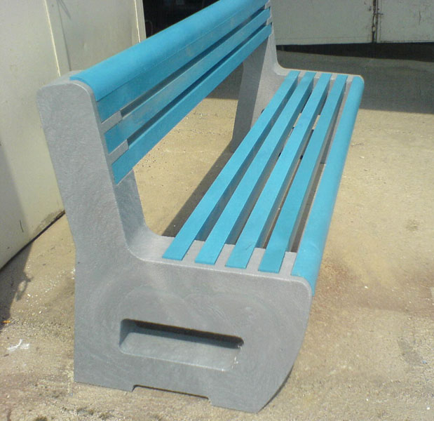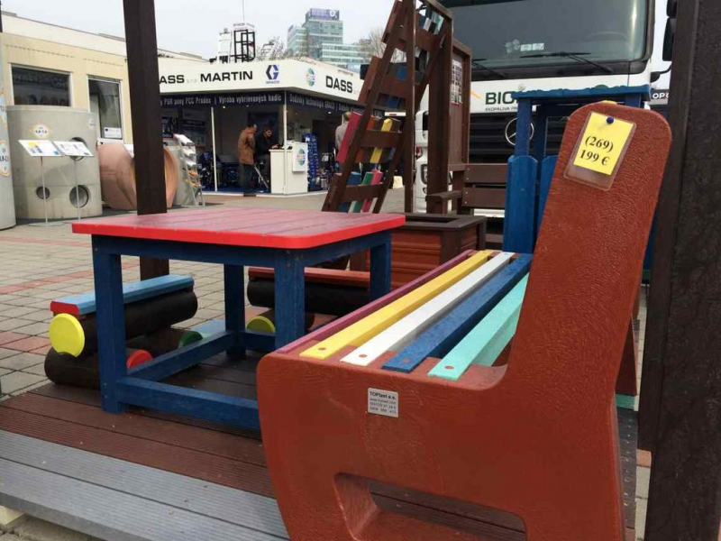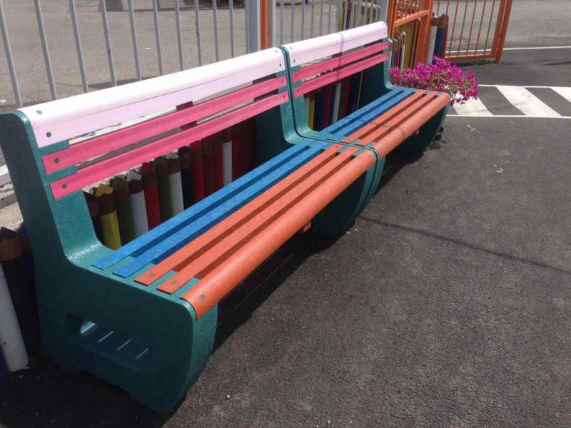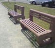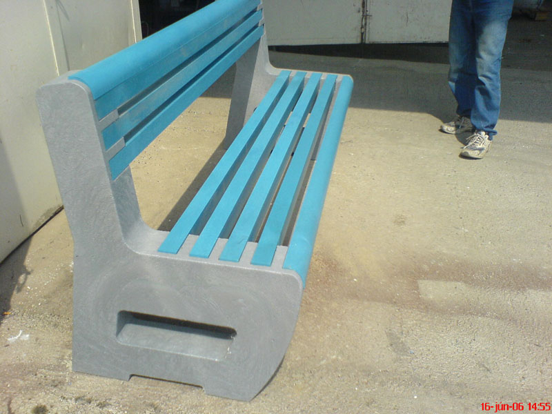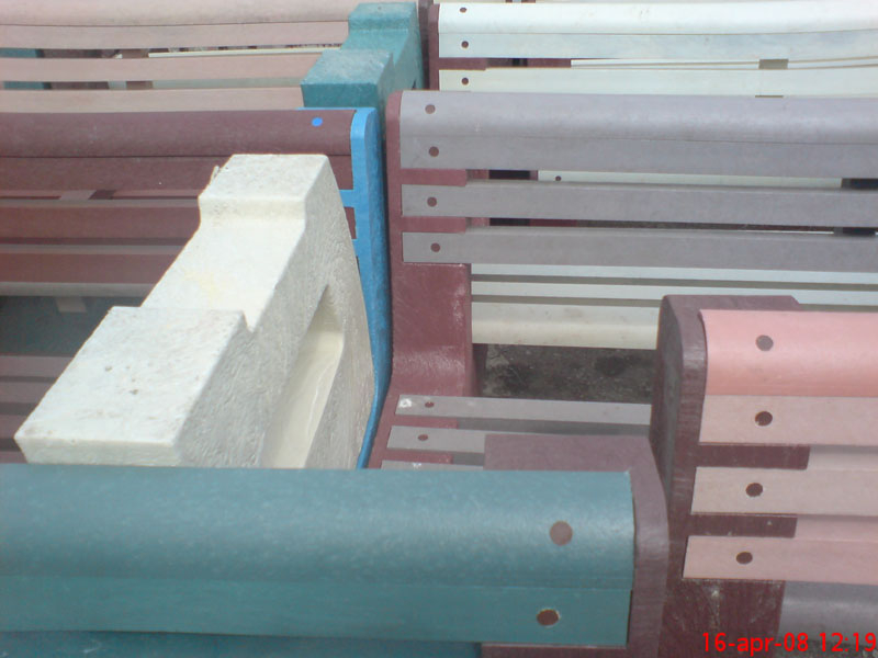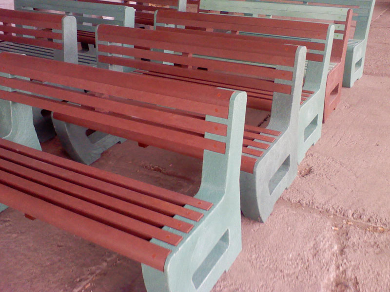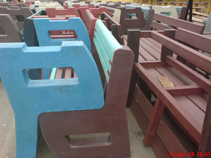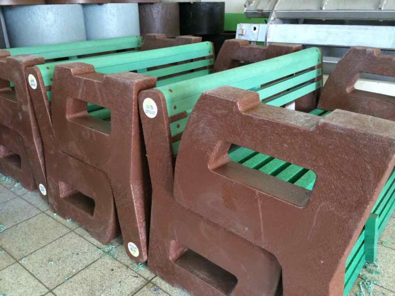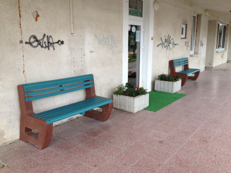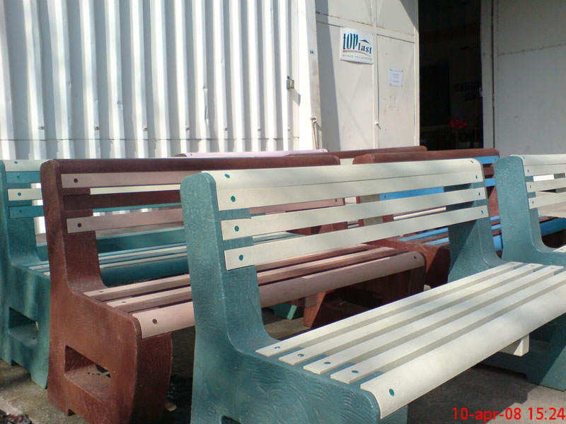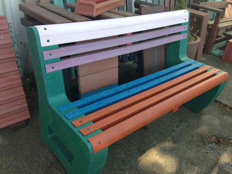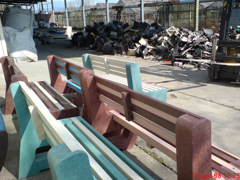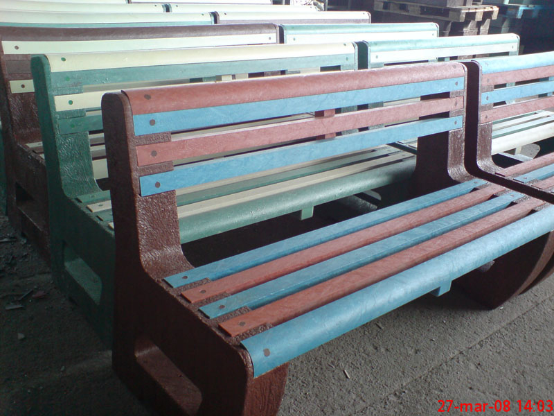 L-type bench is very popular due to color variations. Massive, 90 kg solid plastic bench is fully suitable for exteriors of municipalities, parks of businesses and organizations - more than 1000 units of benches sold. Of course, the most common color is brown in a dark or light combination. Product as a whole is resistant to mechanical damage and vandalism. It can be anchored directly to hard surfaces using L-iron or into a loose soil with bases that can be buried into the ground.