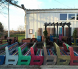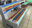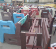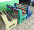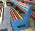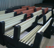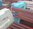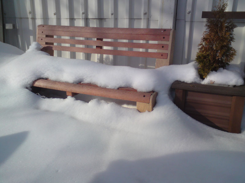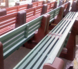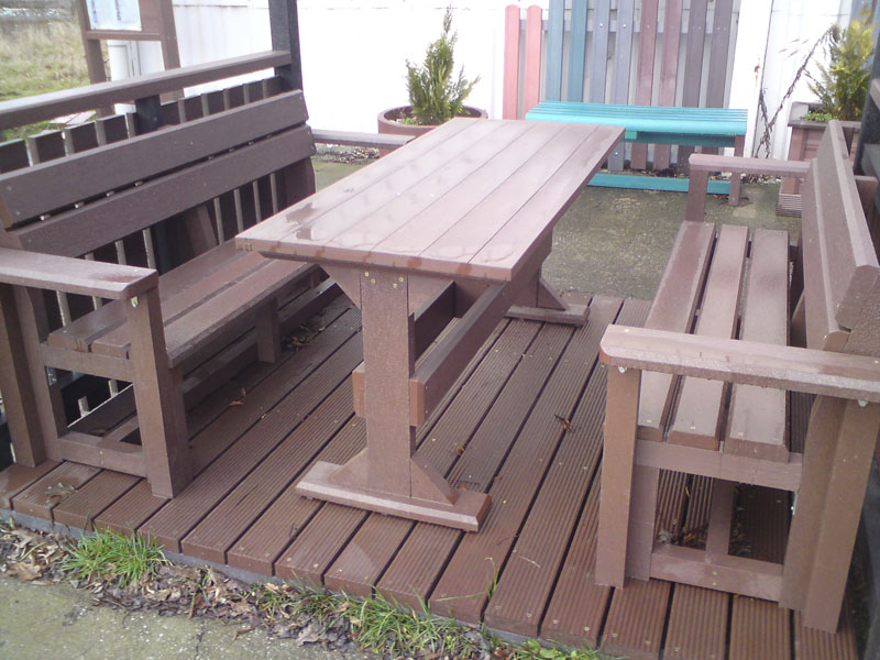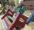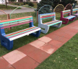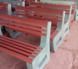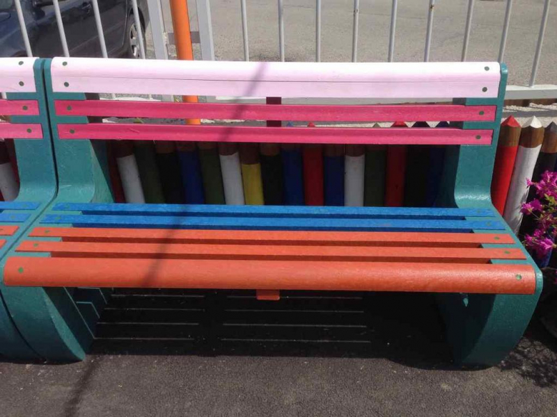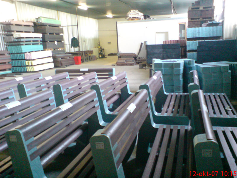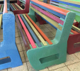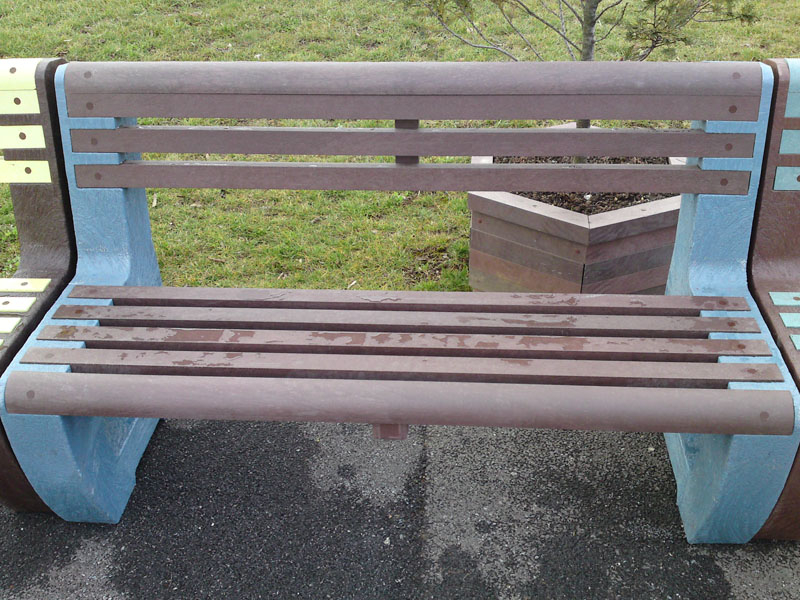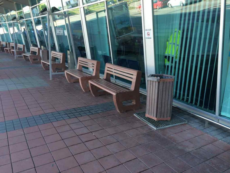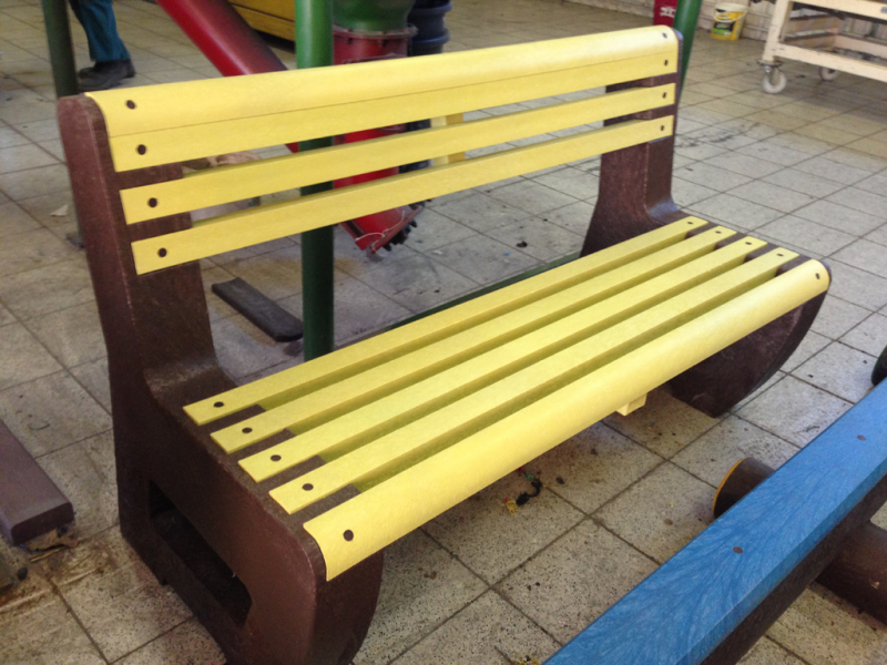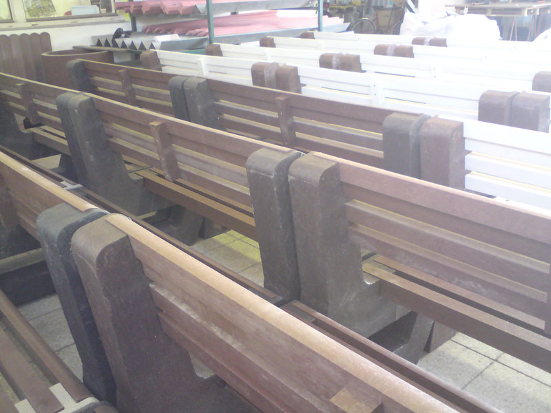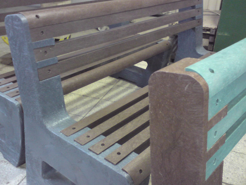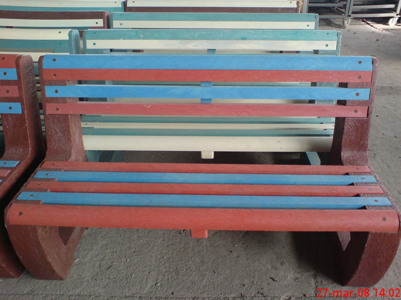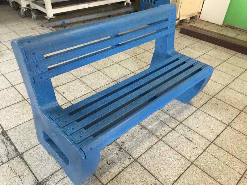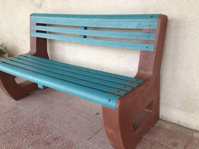 L-type bench is very popular due to color variations. Massive, 90 kg solid plastic bench is fully suitable for exteriors of municipalities, parks of businesses and organizations - more than 1000 units of benches sold. Of course, the most common color is brown in a dark or light combination. Product as a whole is resistant to mechanical damage and vandalism. It can be anchored directly to hard surfaces using L-iron or into a loose soil with bases that can be buried into the ground.