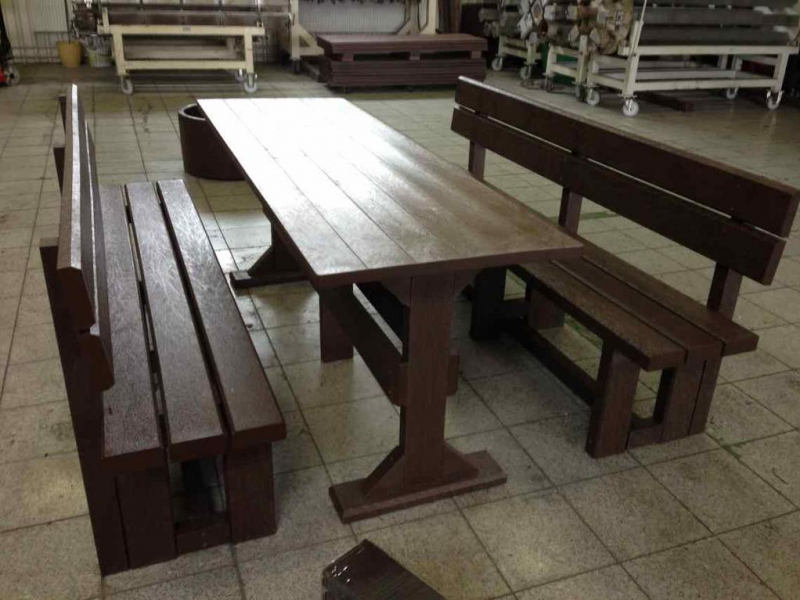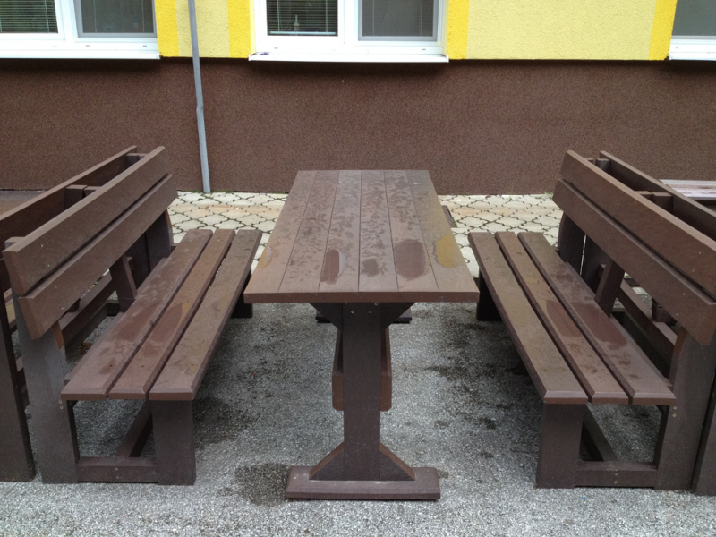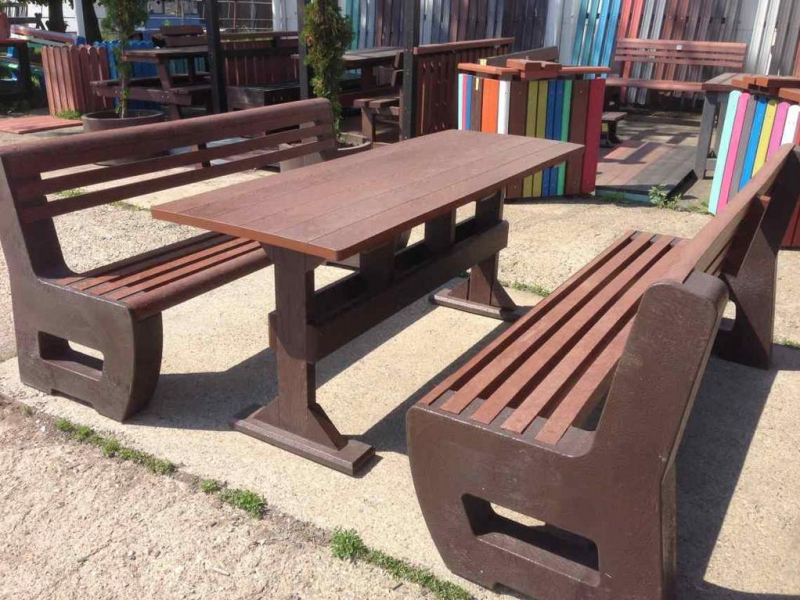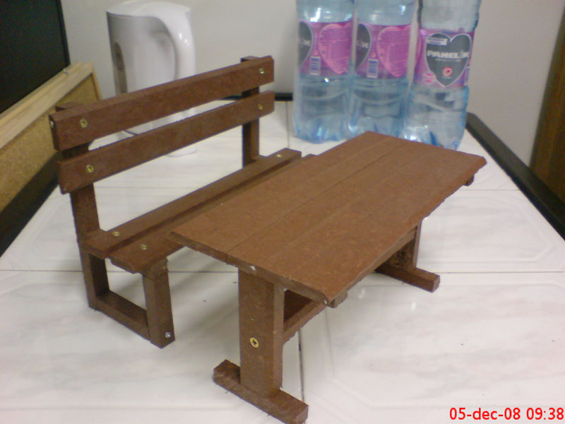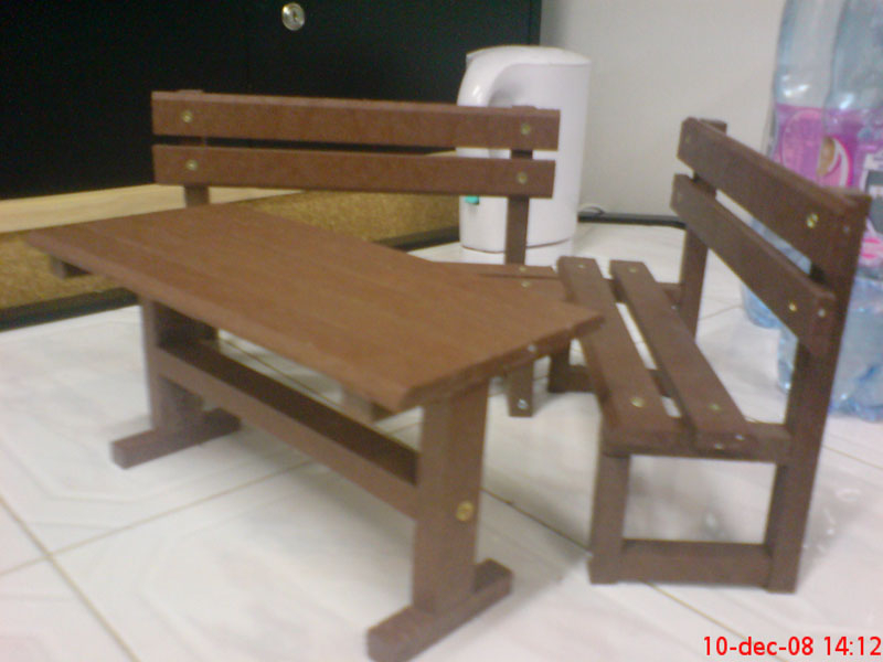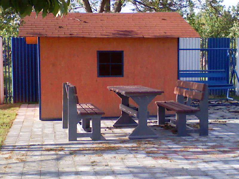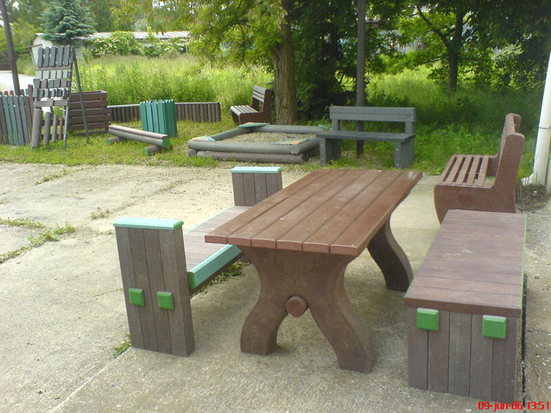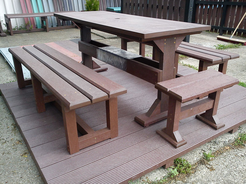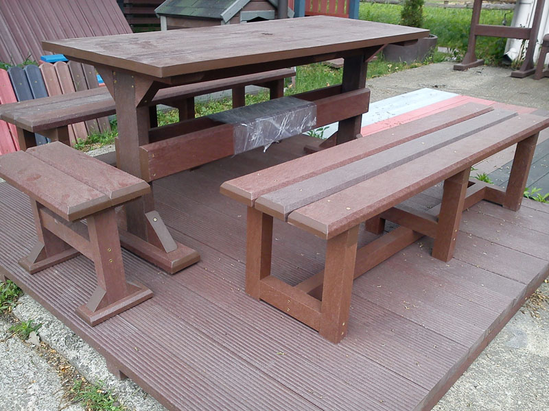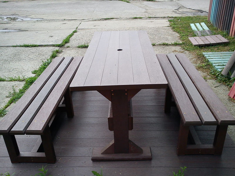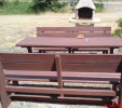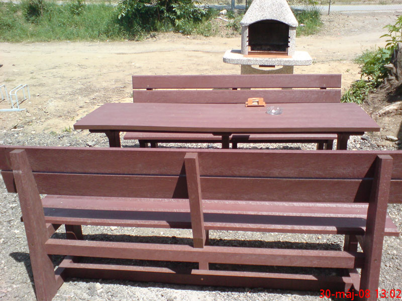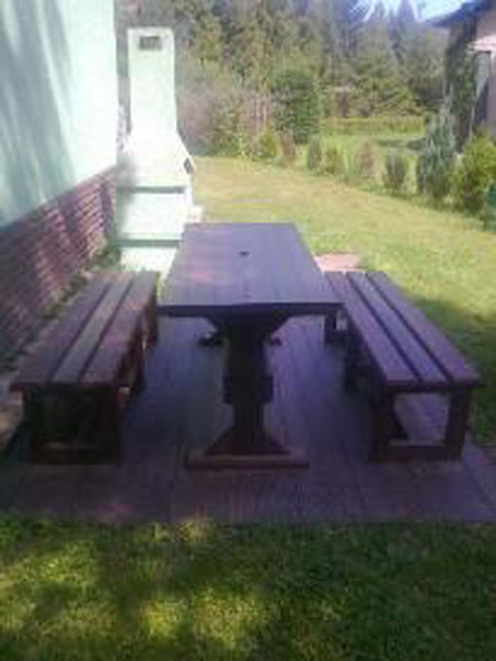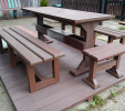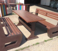 d) Outdoor furniture 1 table and 2 benches