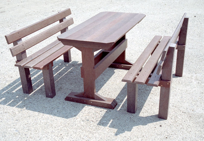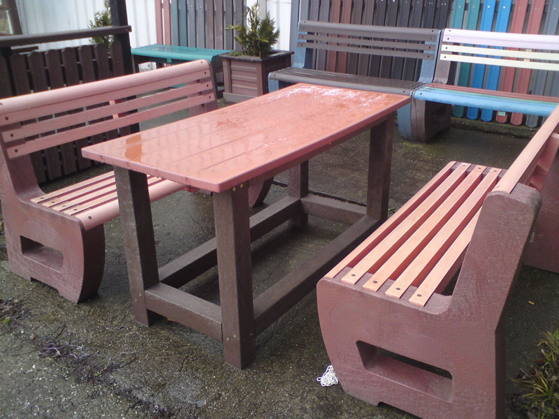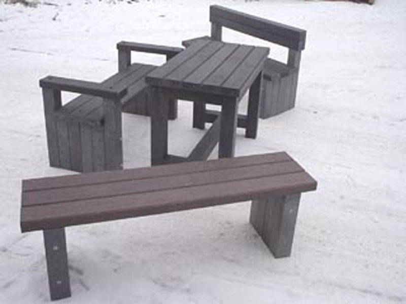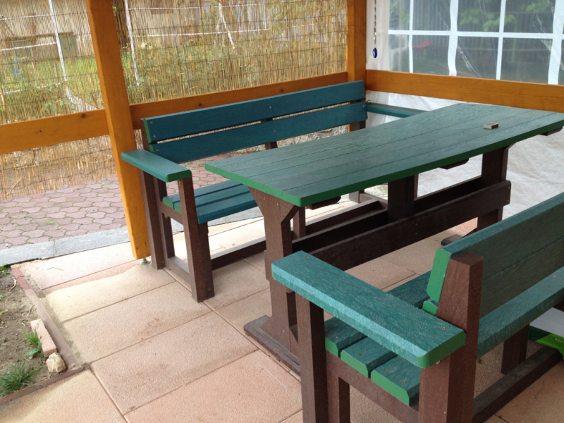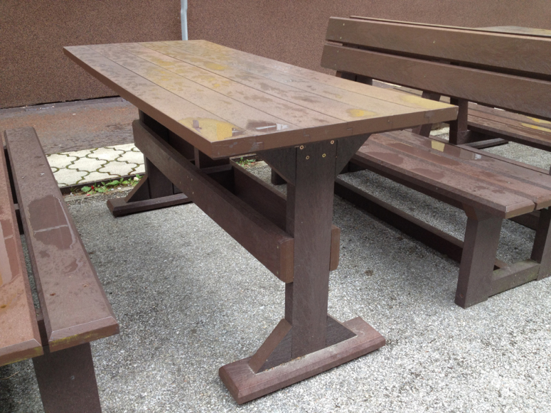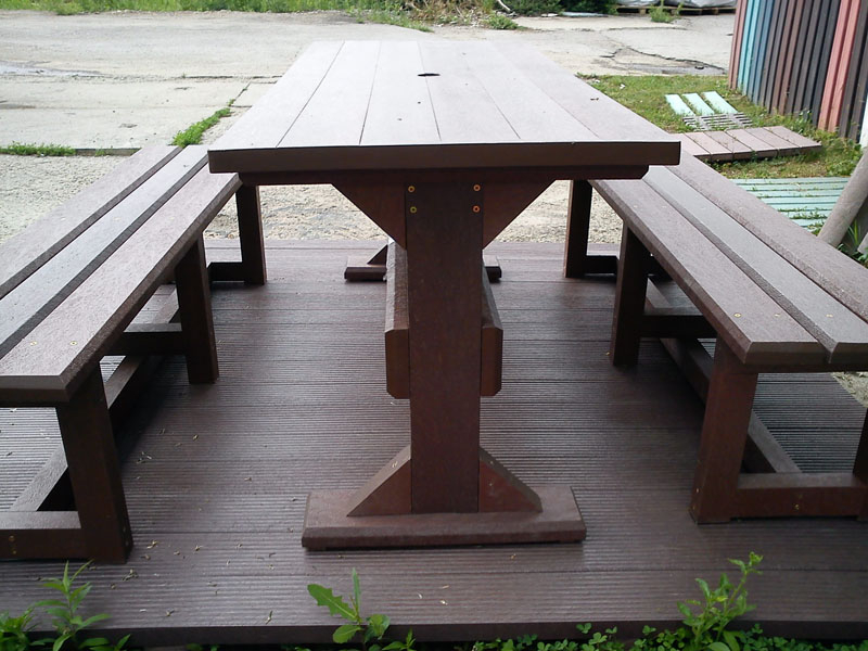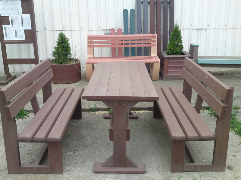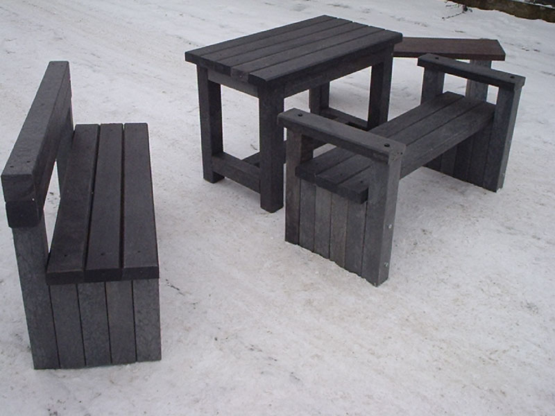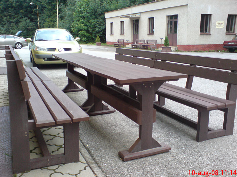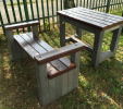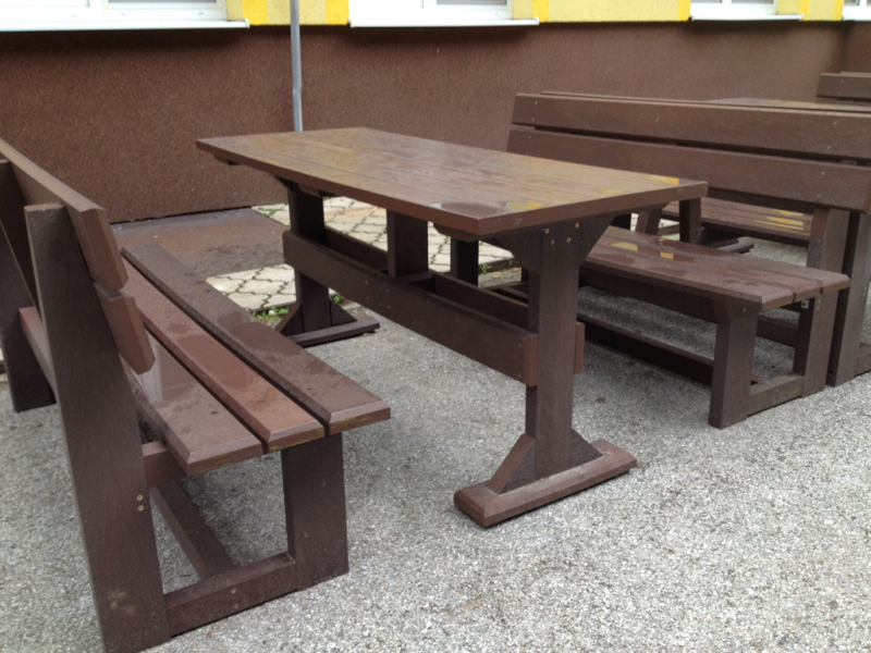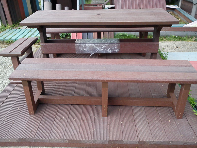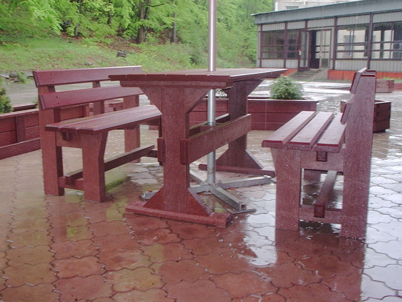 d) Outdoor furniture 1 table and 2 benches