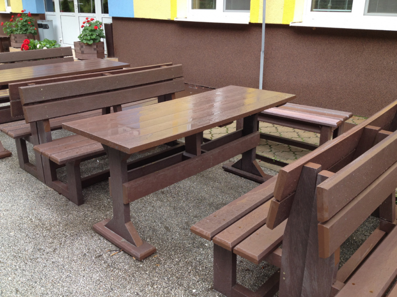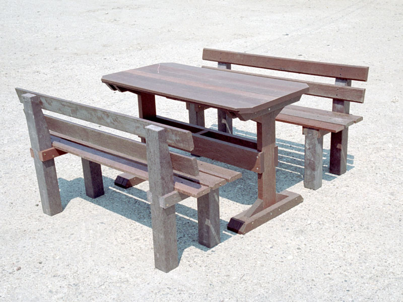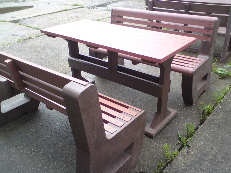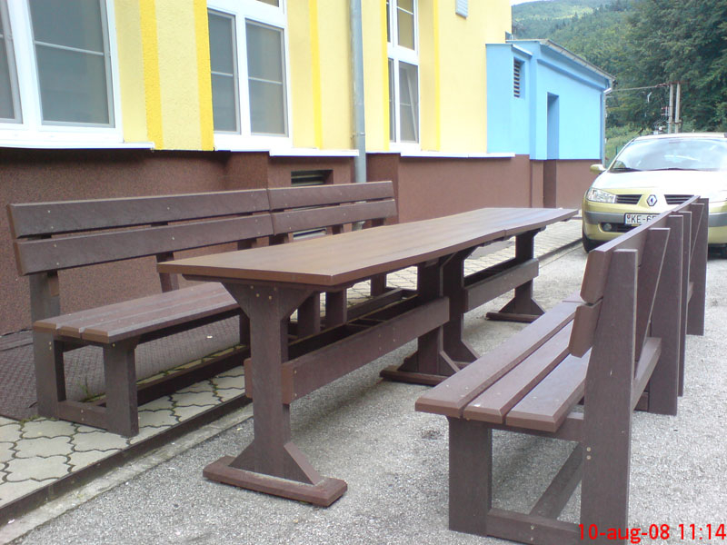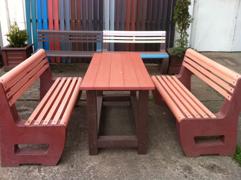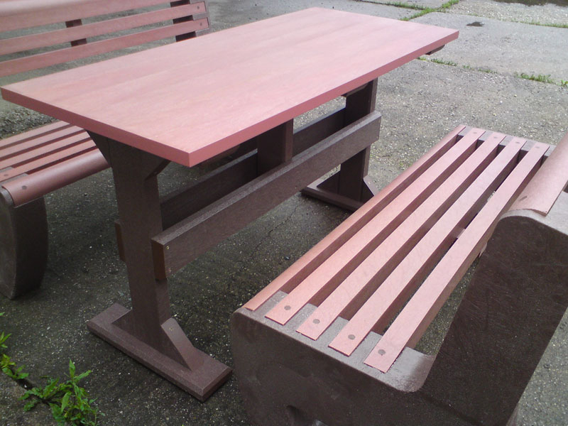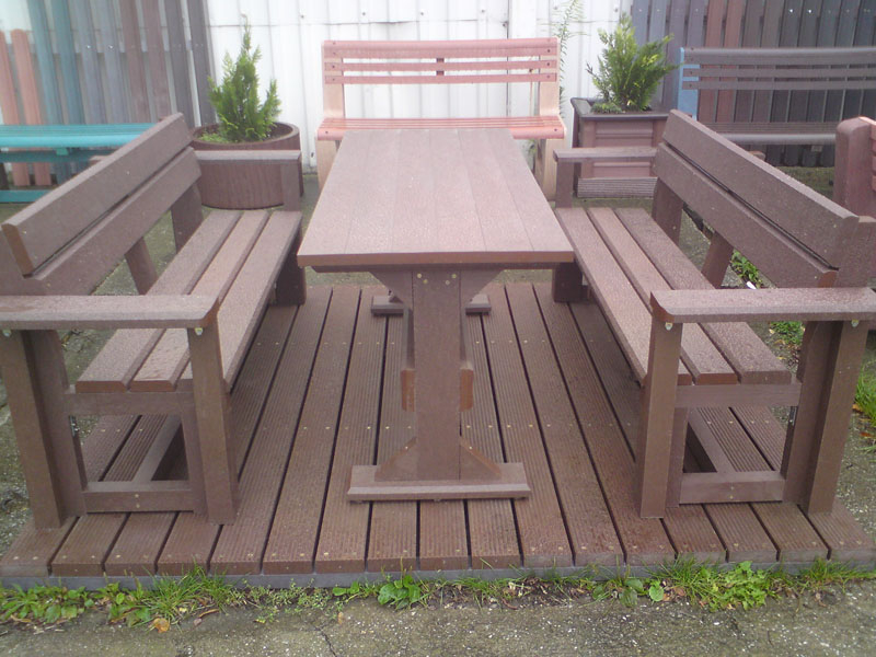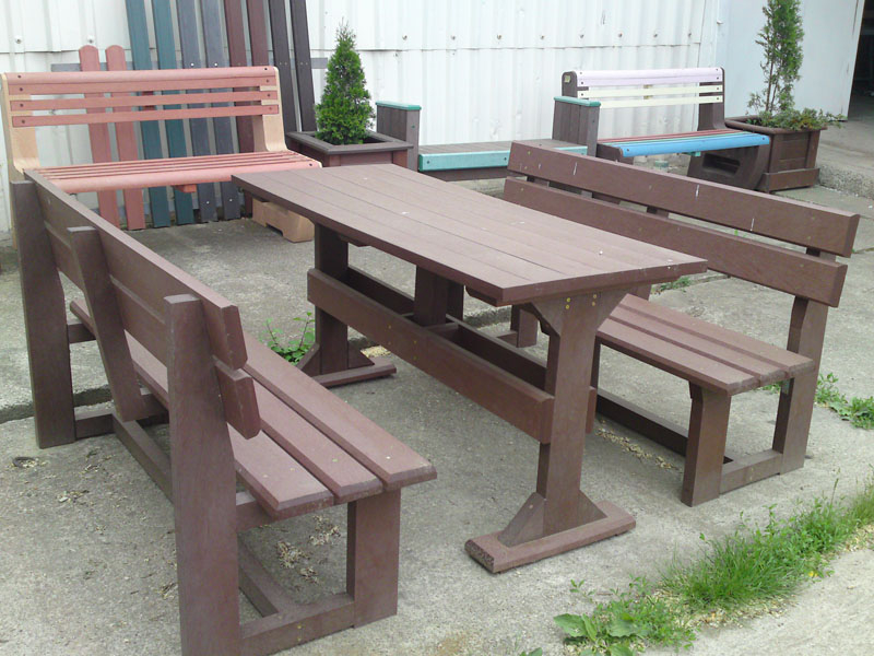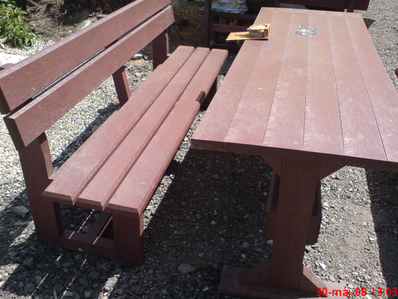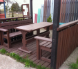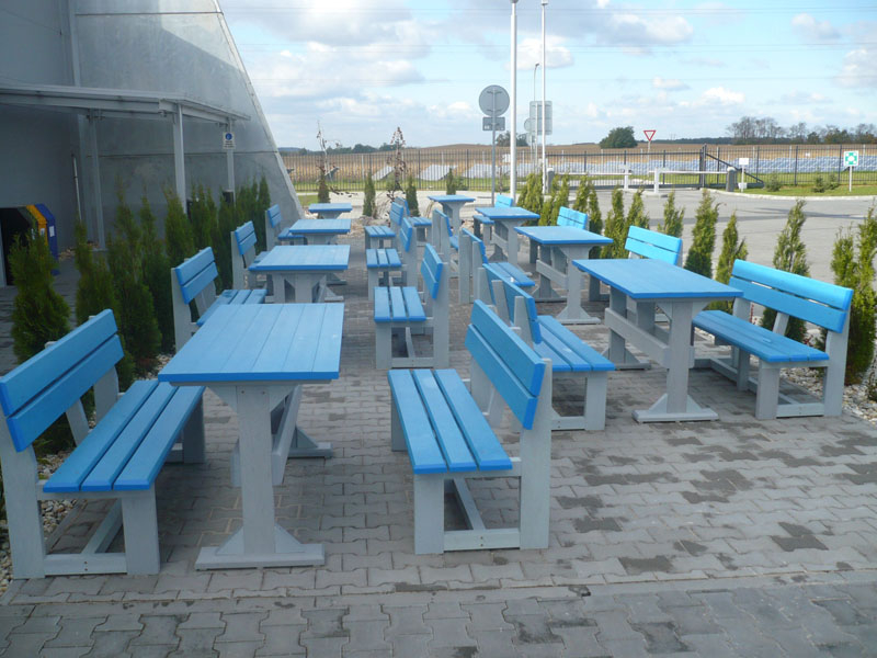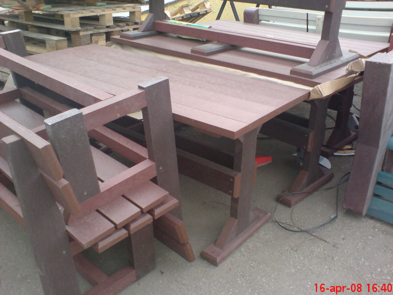 d) Outdoor furniture 1 table and 2 benches