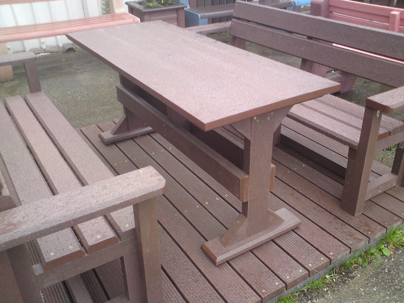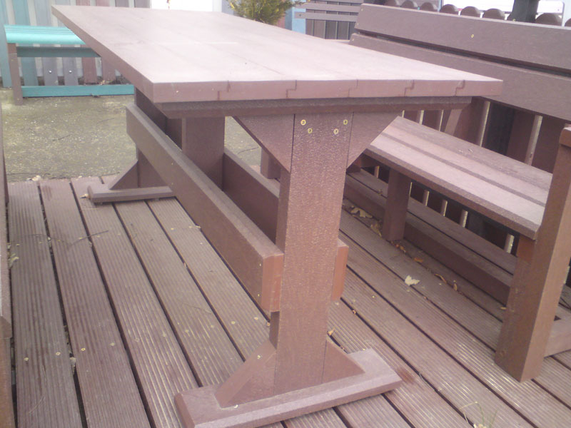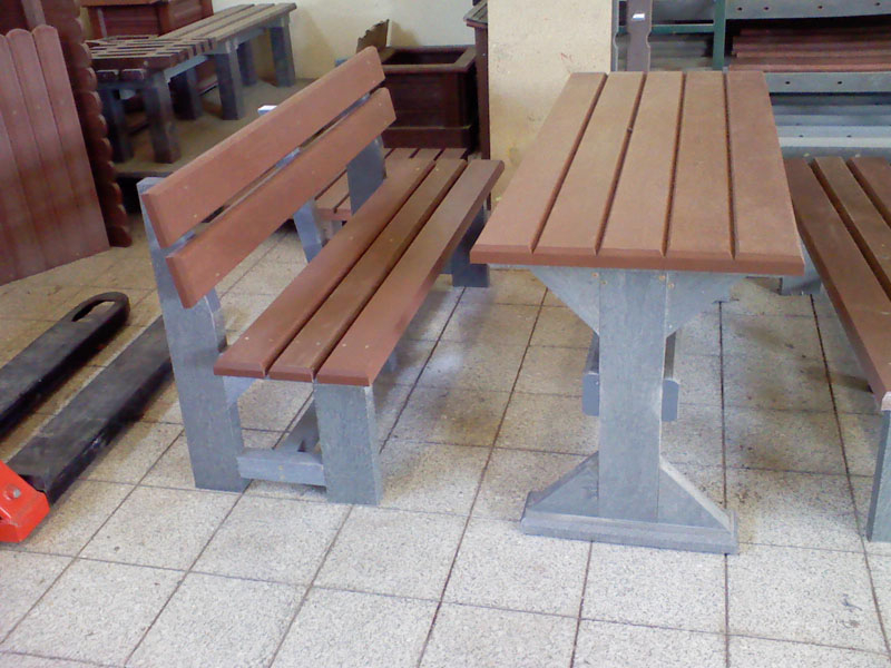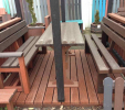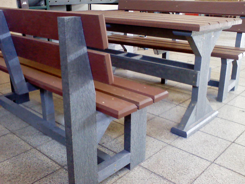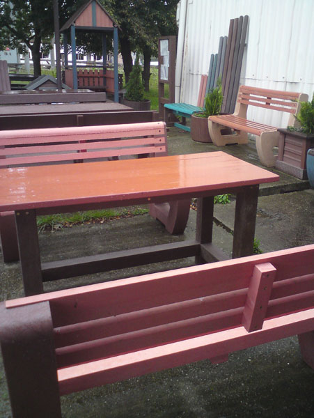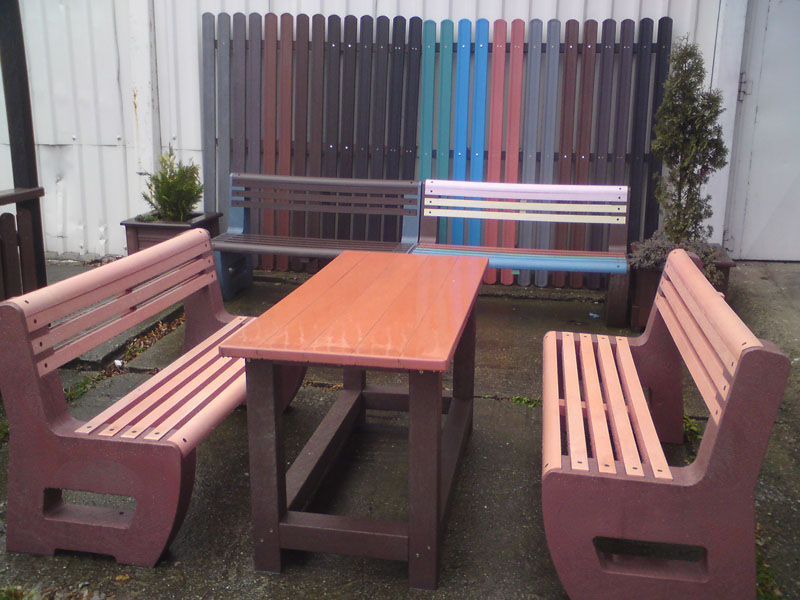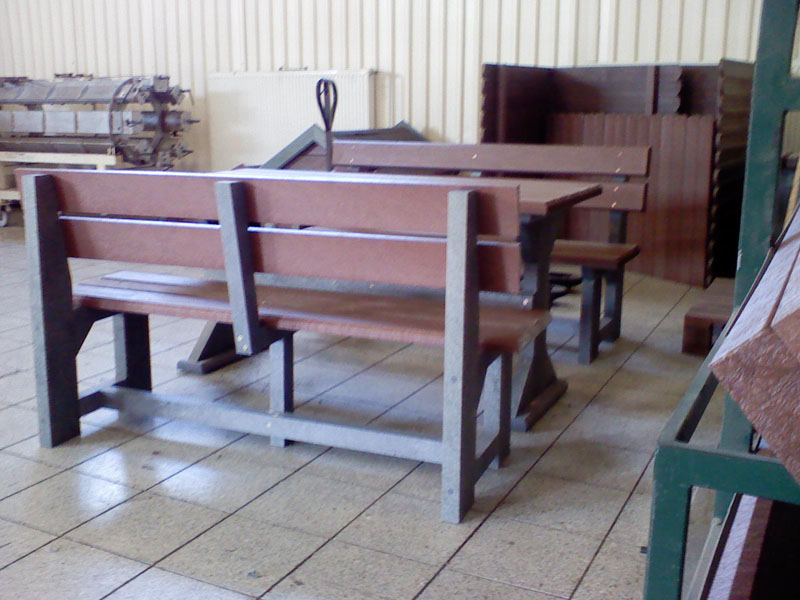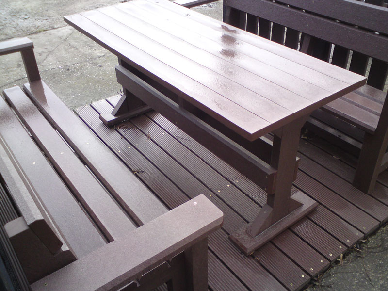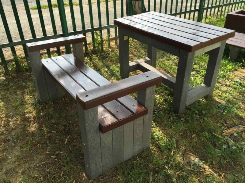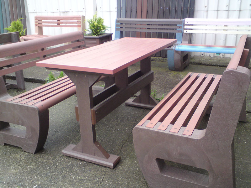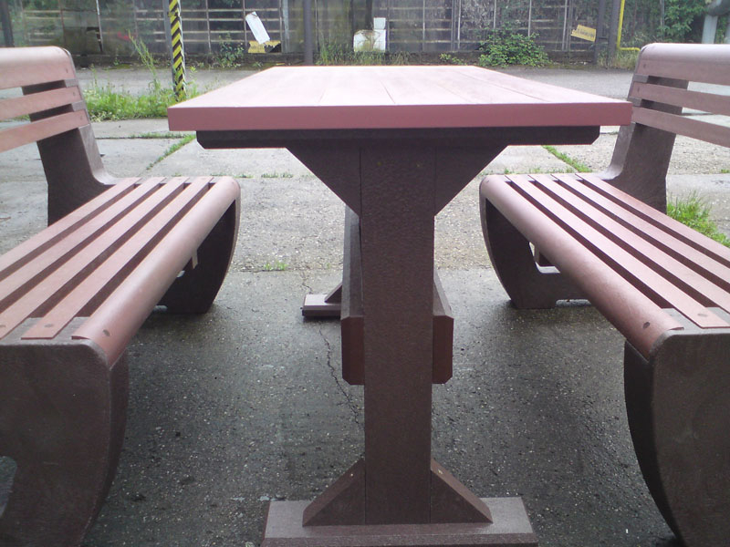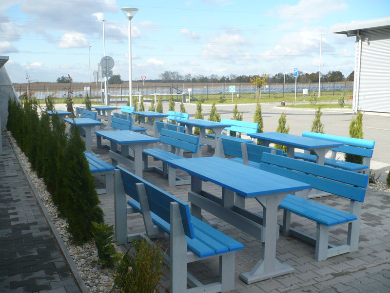d) Outdoor furniture 1 table and 2 benches