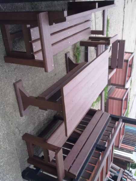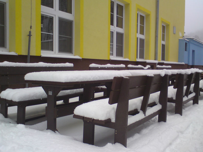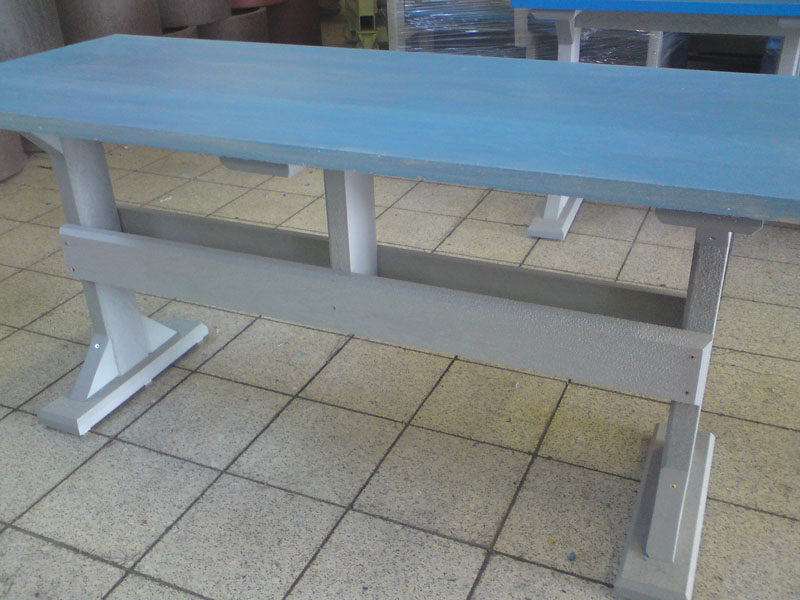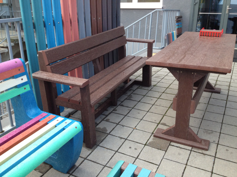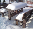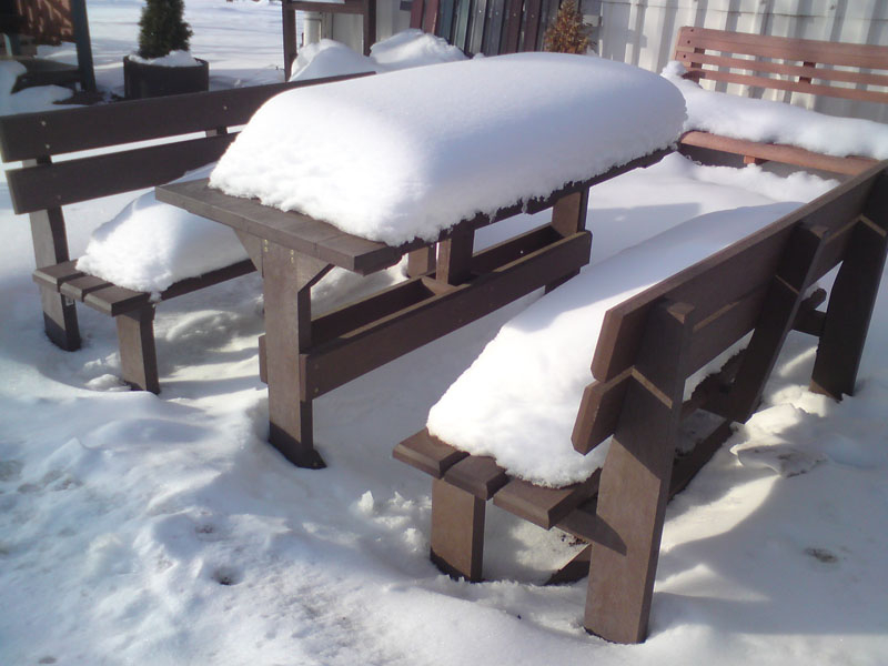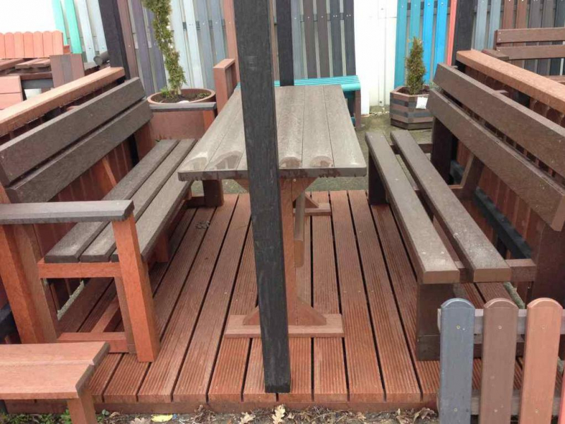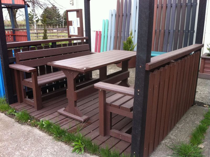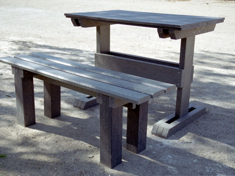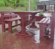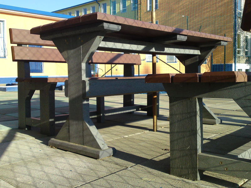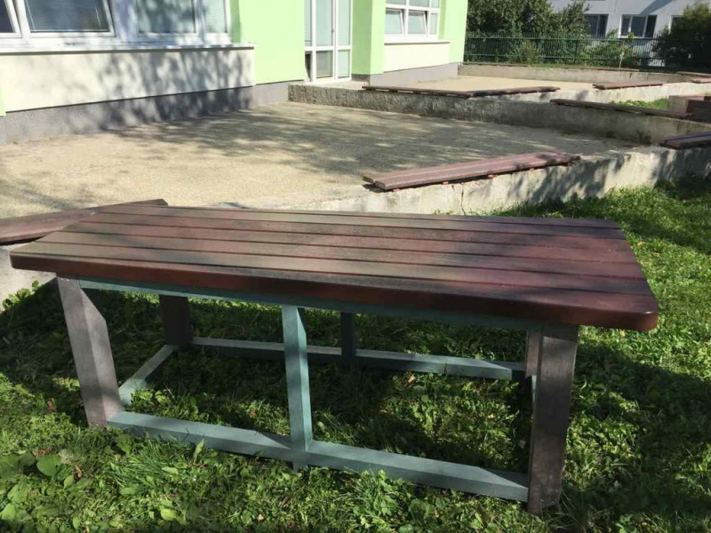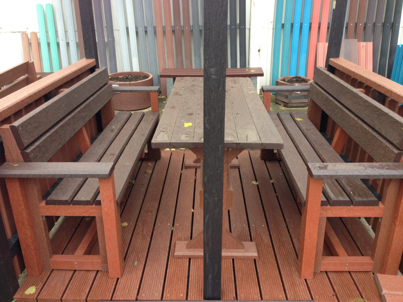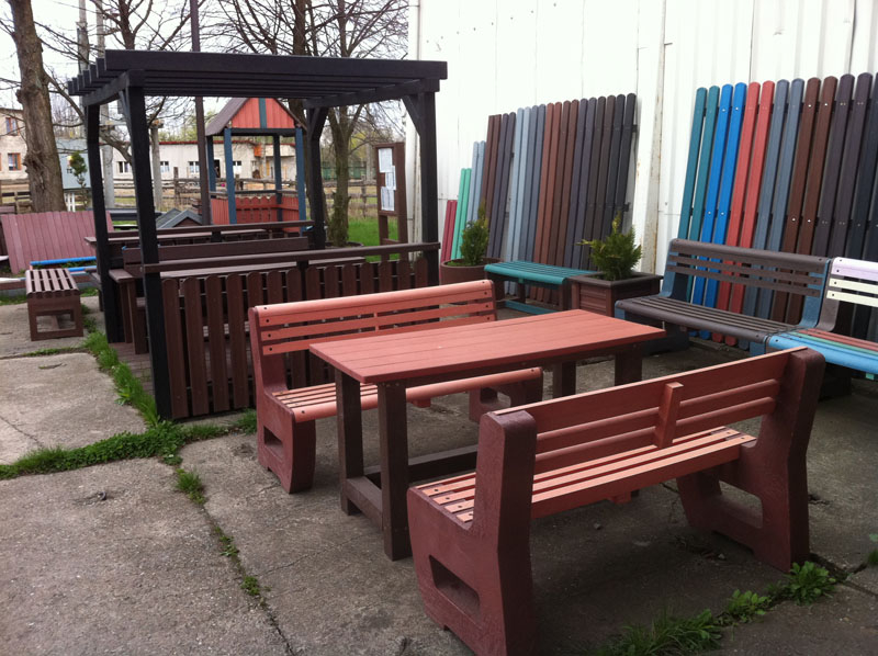 d) Outdoor furniture 1 table and 2 benches