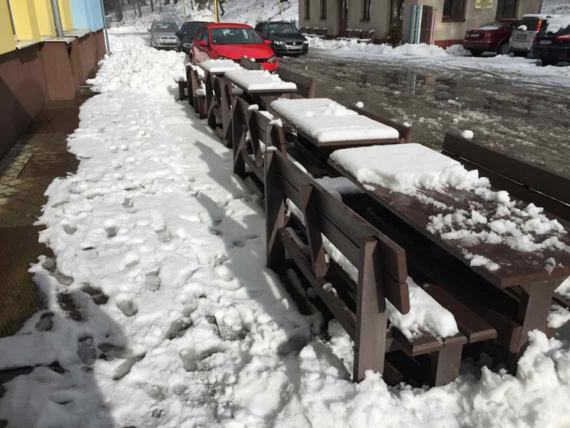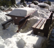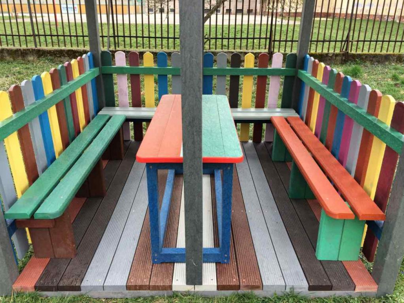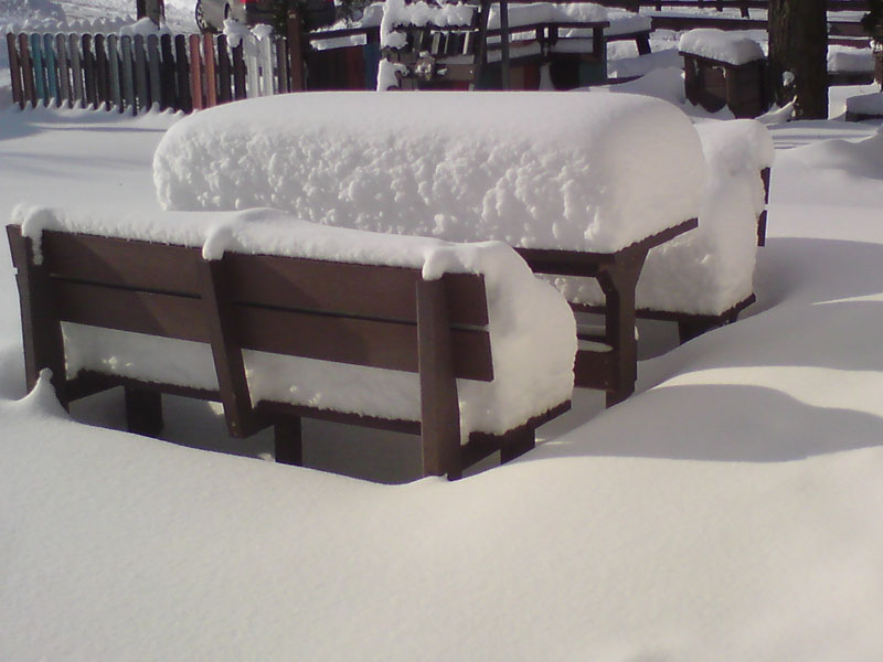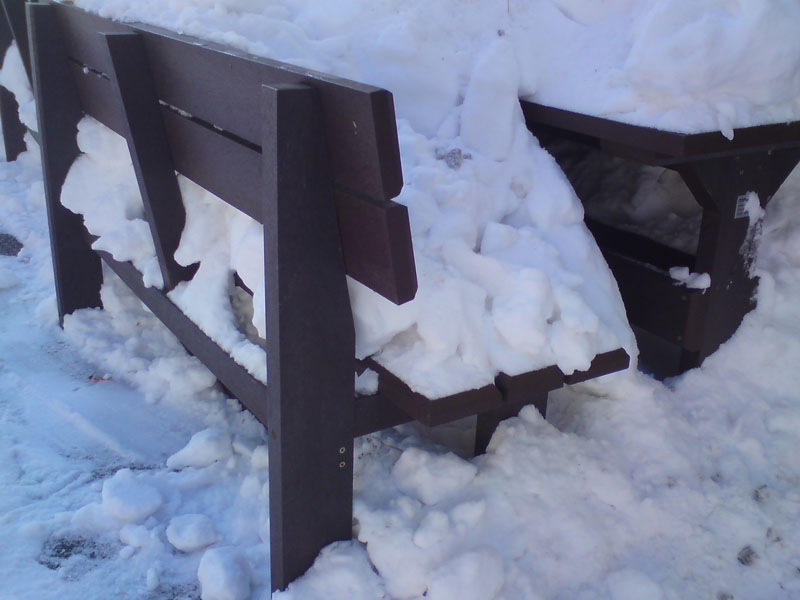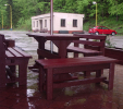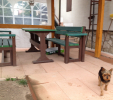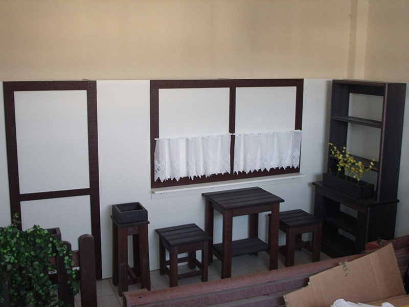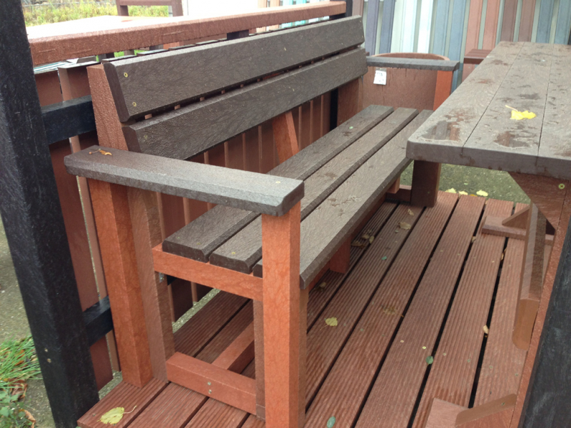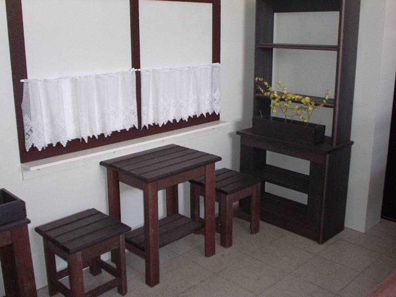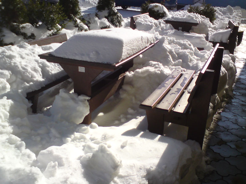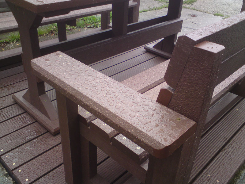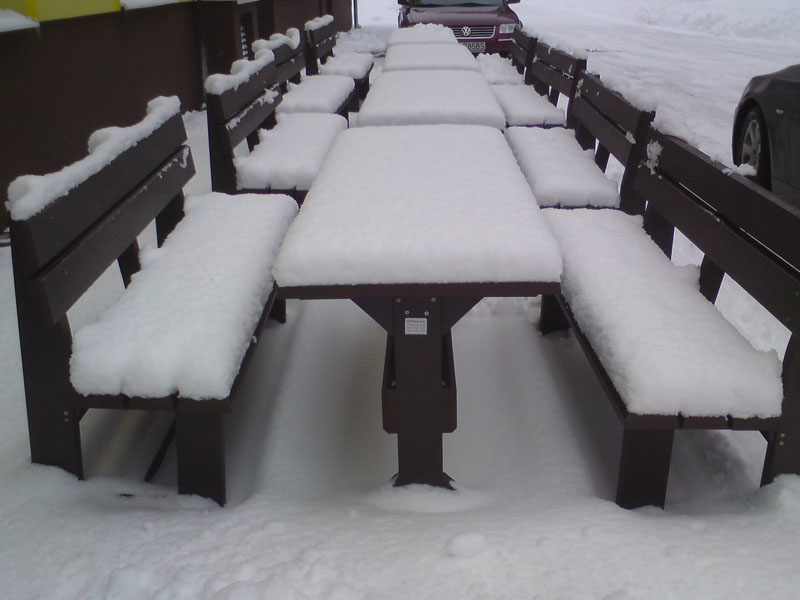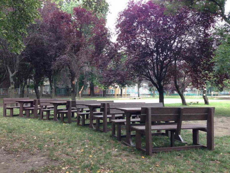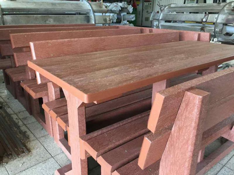 d) Outdoor furniture 1 table and 2 benches