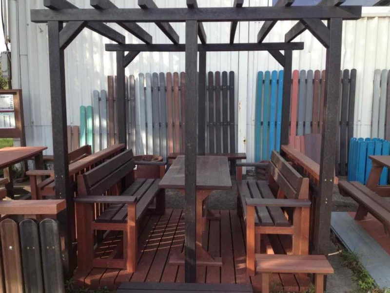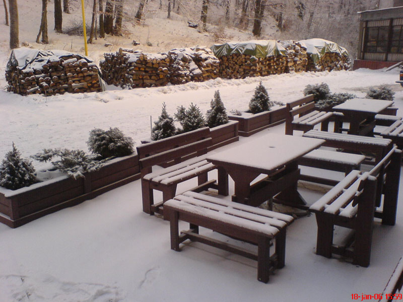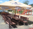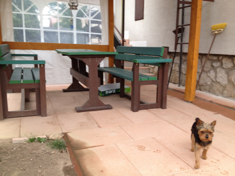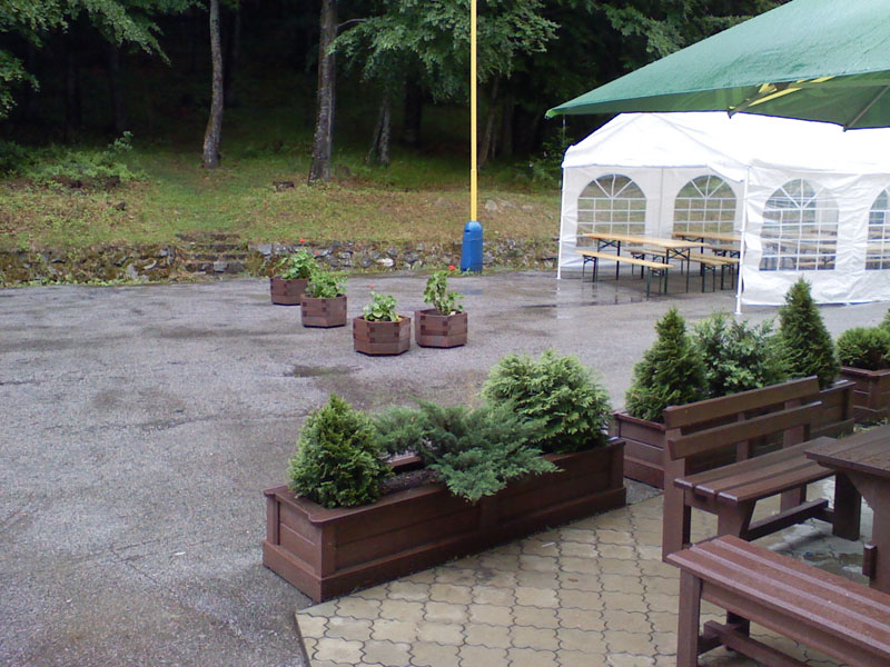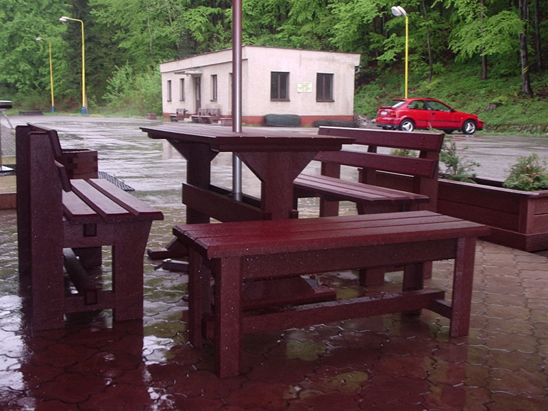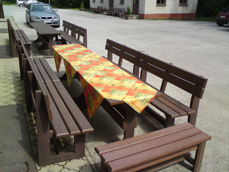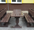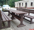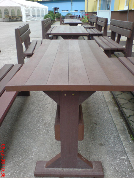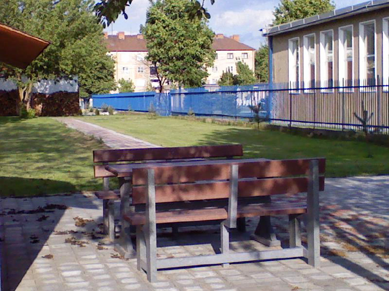Garden furniture consists of a table and two benches. The product can be material-produced both of plastics and wood. Several variants can be chosen: for example, a classic table with two "legs" and two benches with a backrest, or a more massive table with four legs, made of the solid prism 9x9 cm and benches, for instance, also without backrests. We can also produce a variety of other seating products, such as armchairs with armrests, or small stools without a backrest and so on. For this product, a floor is an ideal add-on design, which is supplied in two - three types of profiles, such as the profile D-120x40-2200 / w x h x l / in mm. It is a good design for inaccessible-terrain cottages and gardens, which would otherwise require other construction works, and by means of such a platform, completely made with us or made by yourself, a maintenance-free, patio antiskid floor, lasting for many years can be easily created. Section 11. Terrace slabs.