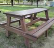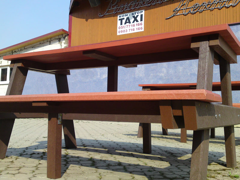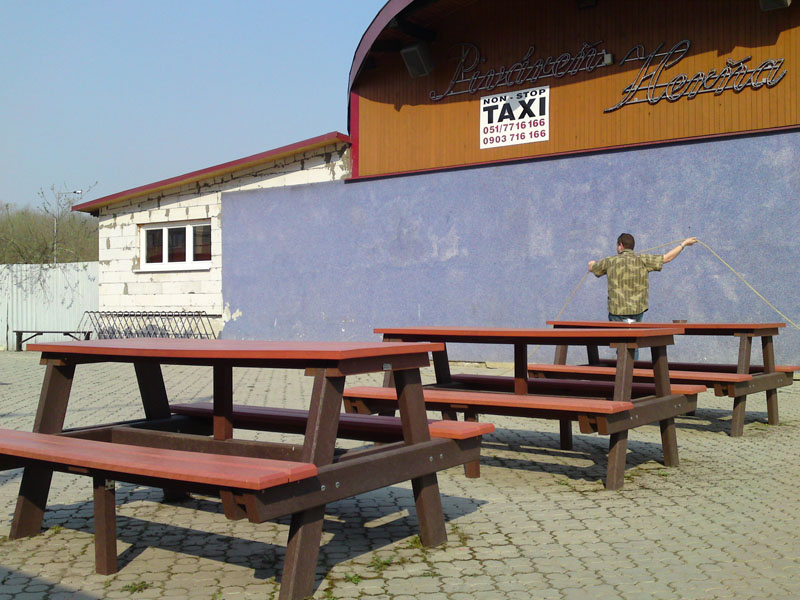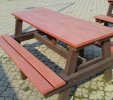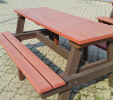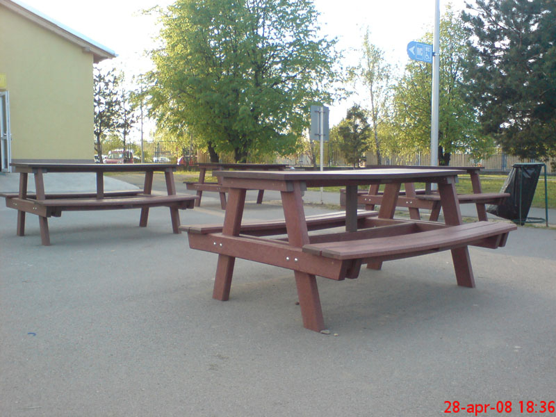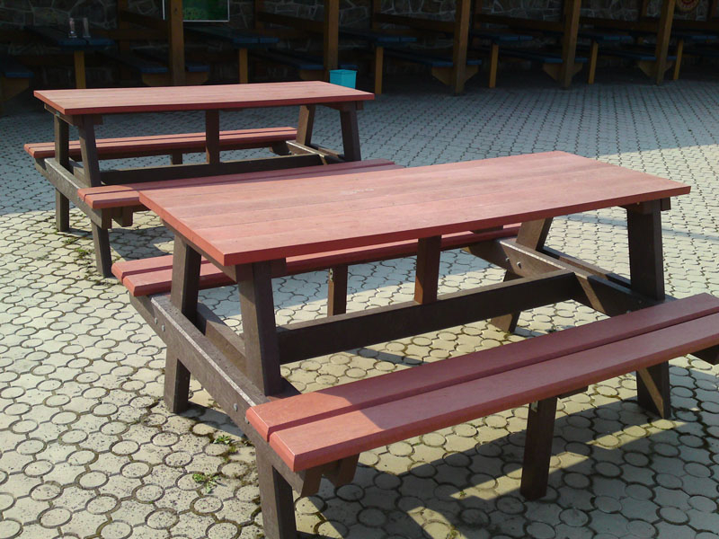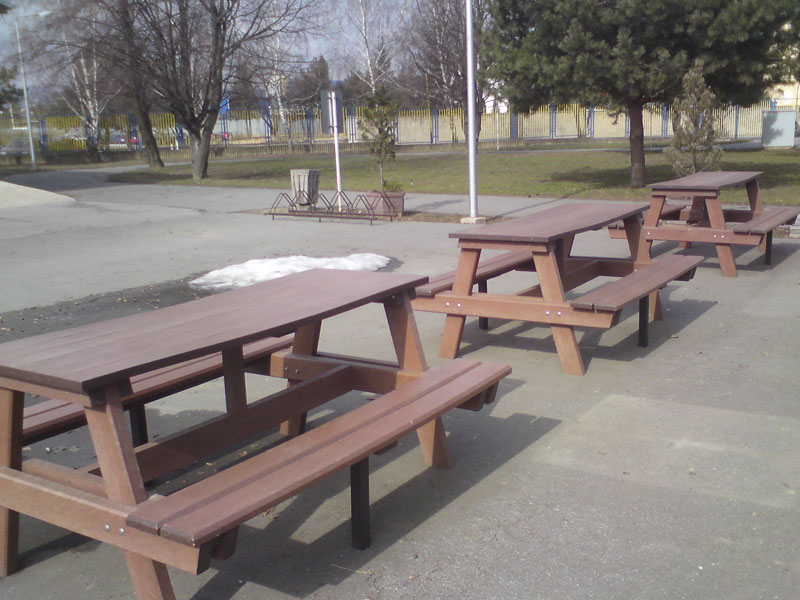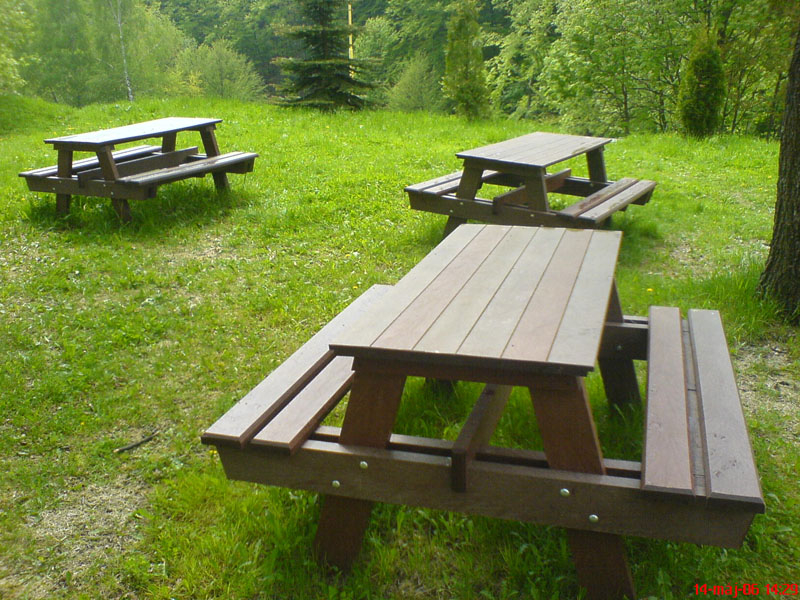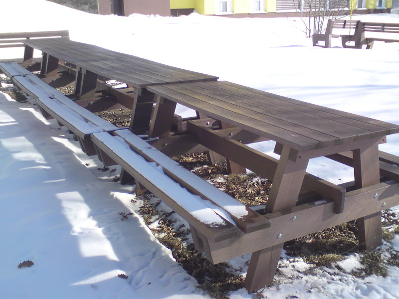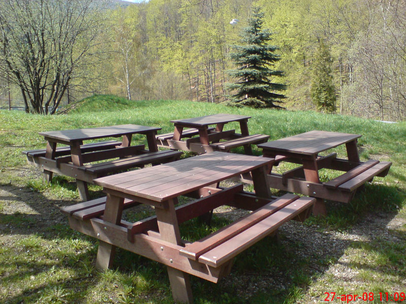 Picnic or beer table, designed for gardens of bars, restaurants and hotels, is a suitable complement for a year-round operation. Mostly, its lengths are up to 160 cm in brown color, or it is „made-to-measure" in various color combinations, possibly of wood.