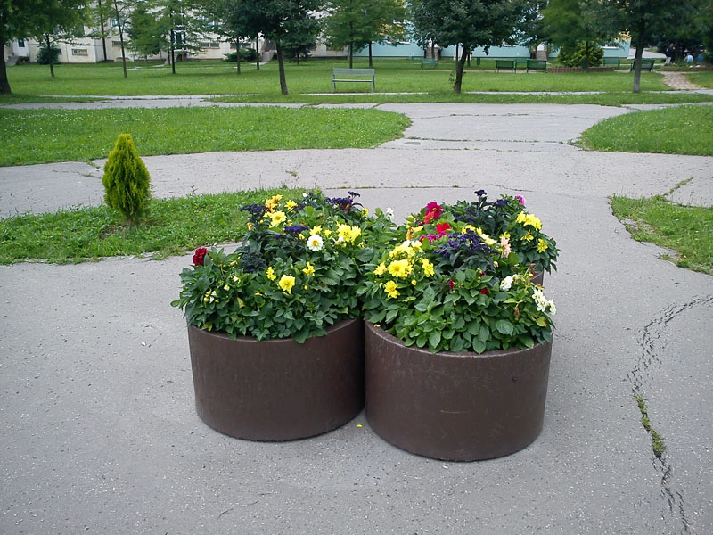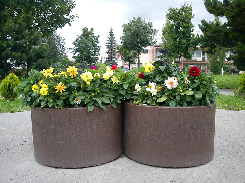 A very popular, affordable planter, robust and resistant also to mechanical damage and with a wall thickness up to 4 cm. Different colors. Quick and inexpensive alternative to define areas, roads, main entrances and entryways to buildings.