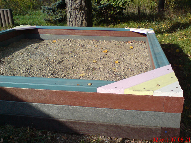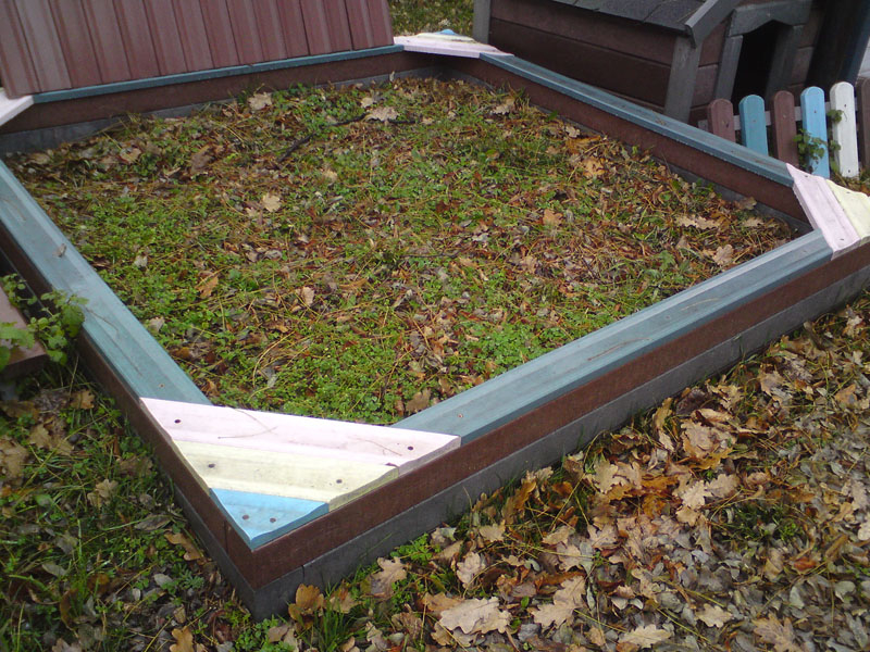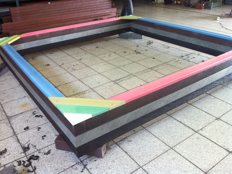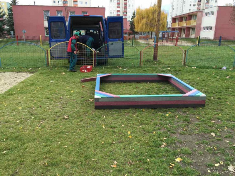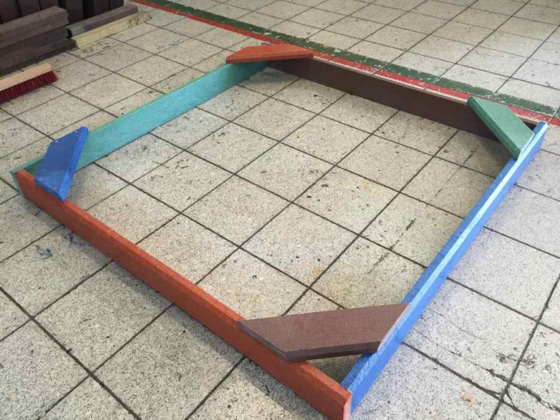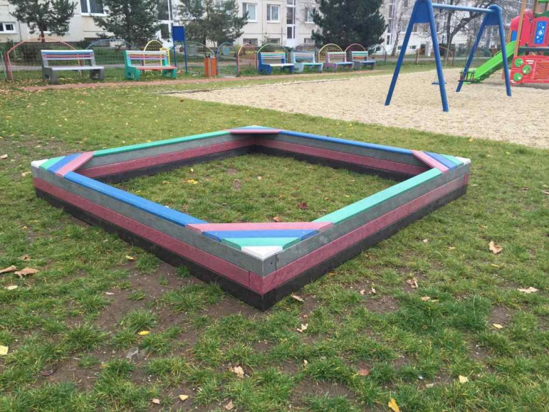 Rectangular sandbox with dimensions 2.5 x 2.5 meter is one of the most popular and best-selling sandboxes at all. Easiness of installation and durability guarantee satisfaction. It is made from recycled, certified materials. Different colors of surface plates and stock availability is an advantage for you.