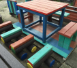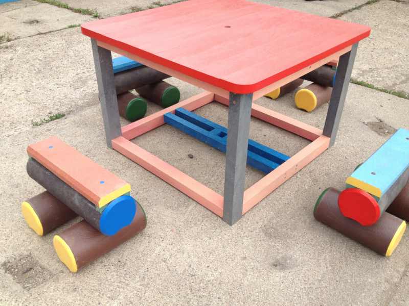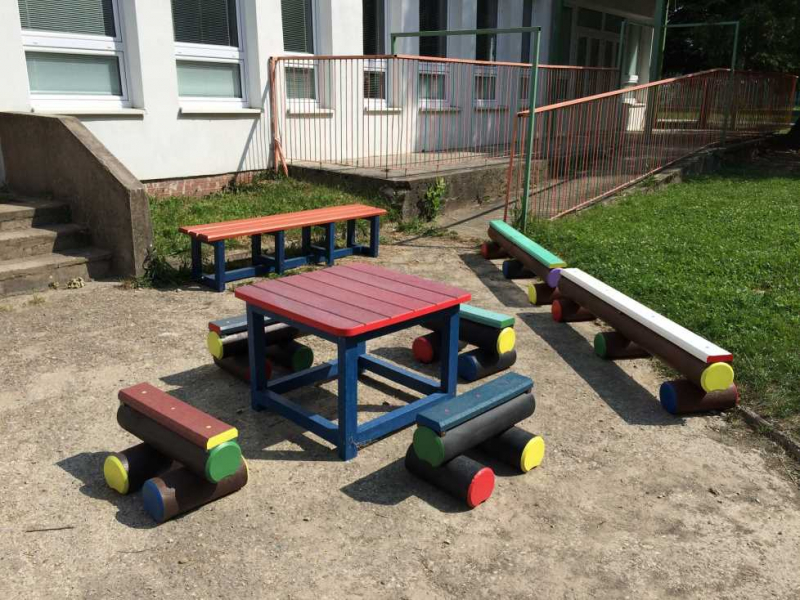 A small table with dimensions of approximately 100 x 100 cm and its small beams are cheerful supplement to any schoolyard. There is a wide range of colors to choose.