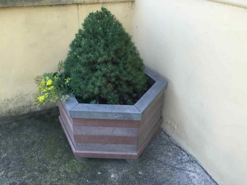 Vaso esagonale è un vaso atipico con le dimensioni circa 70 cm - piccolo, oppure più grande fino a 100 cm di lunghezza. Possono essere utilizzate le travi di diversi colori e dimensioni con le fuoruscite.
