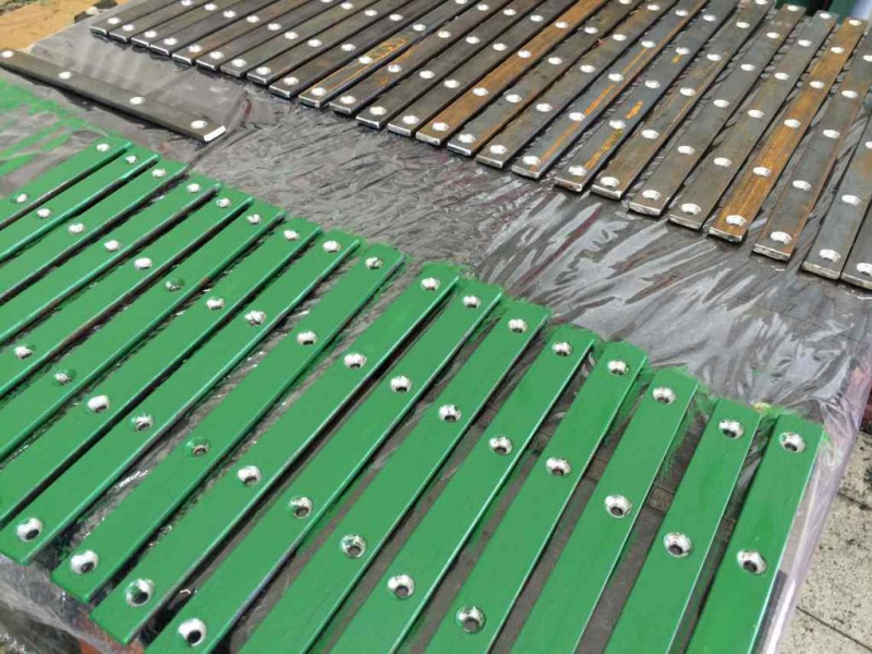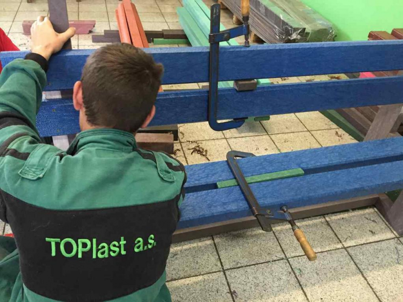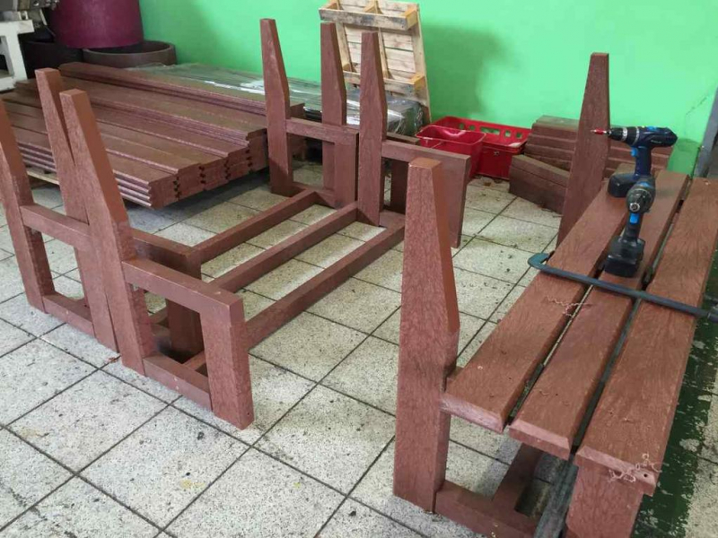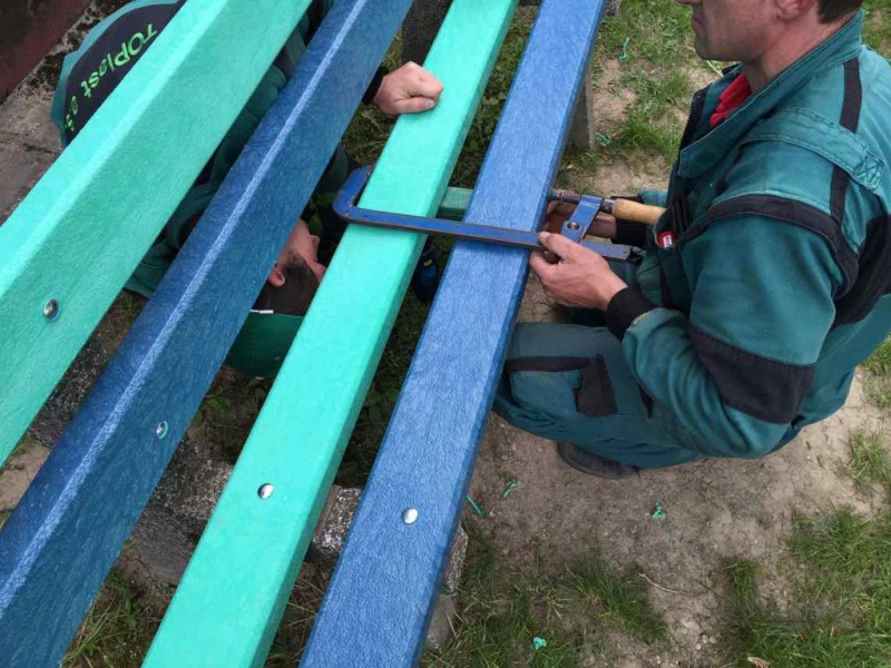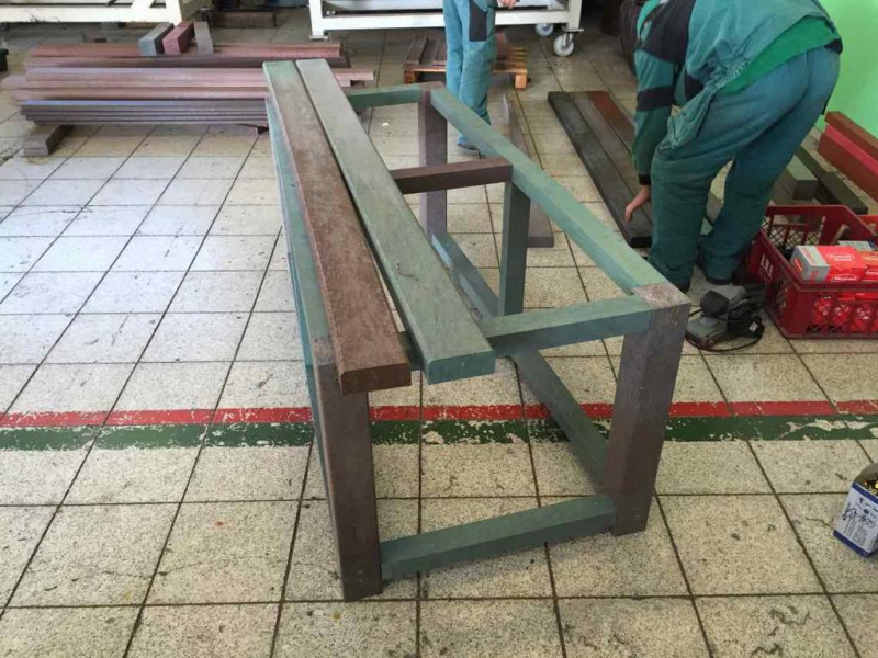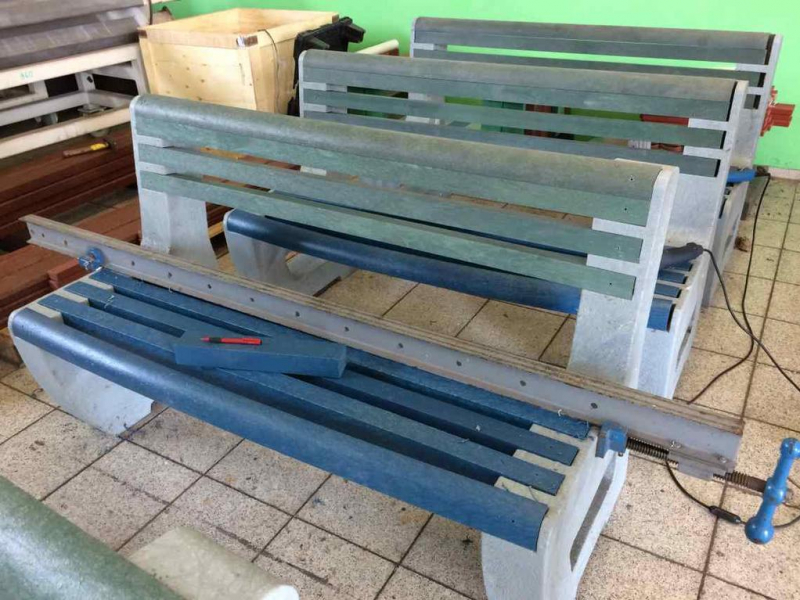 Per le tavole delle panchine (D-120x50-2200) utilizziamo sostanzialmente lo stesso materiale come per le tavole di plastica per recinzioni, ma con un diametro più grande, es. Bullone trasporto a 8 per le panche con la costruzione in cemento armato, o due piedi per un lato della tavola. Tavole possiamo rinforzare con il ferro – lamiera 20/05 che sopporta anche un carico maggiore. Esempio comune è la panchina, cui tavola è lunga 180 cm e la distanze dei piedi portanti è di circa 150 cm, l’utilizzo del rinforzo a lunghezza 155 cm soprattutto per le città e i villaggi è un’esigenza.