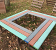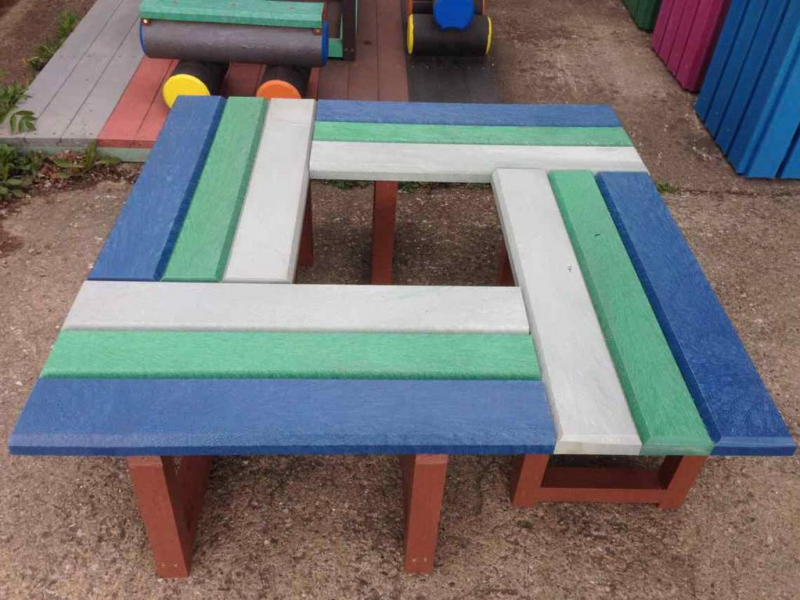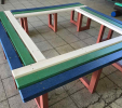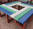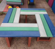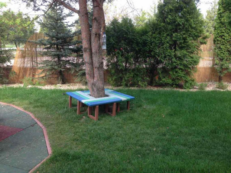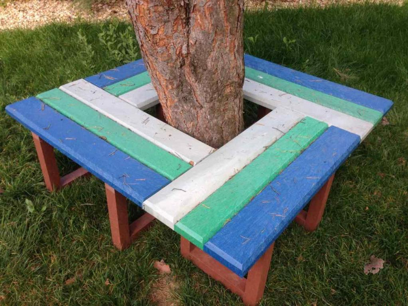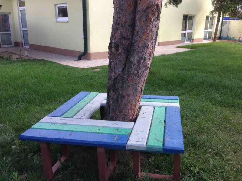 Sedenie okolo stromu pozostáva zo štyroch spojených lavičiek požadovaného rozmeru. Lavičky môžu byť doskové bez opierky, alebo aj s opierkou z rôznych našich profilov v rôznych farebných kombináciách.