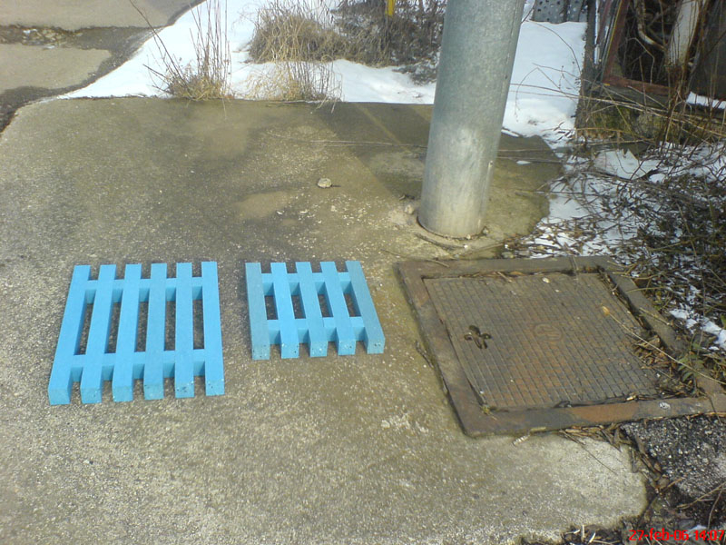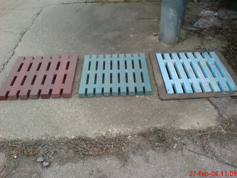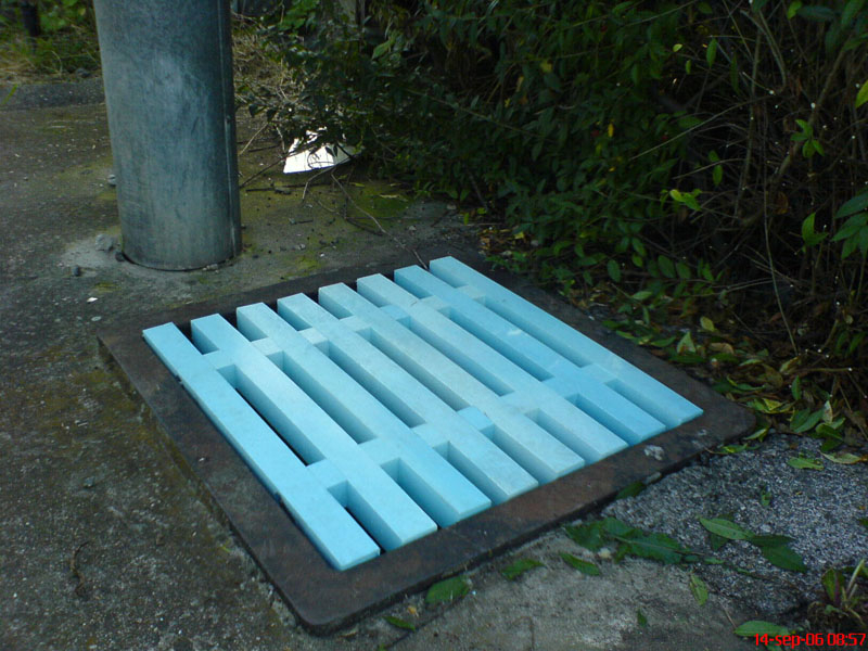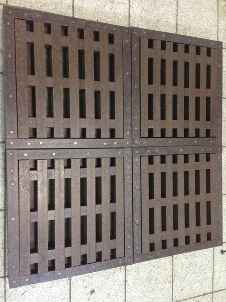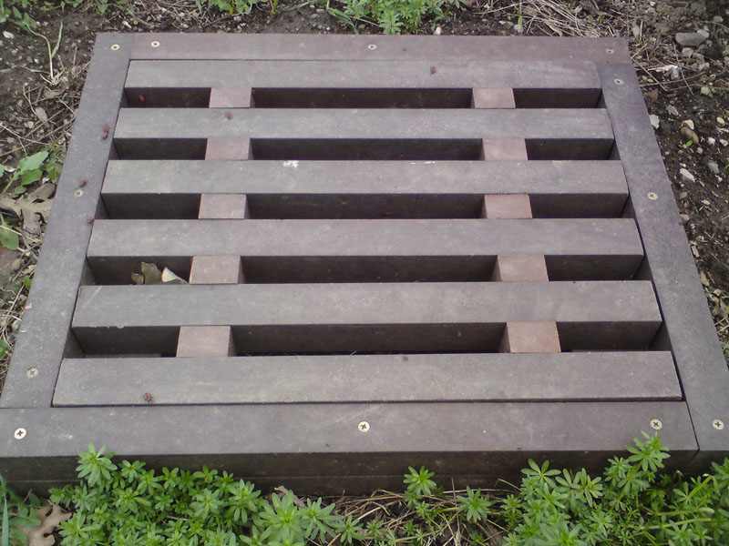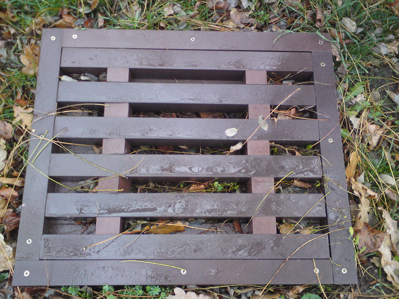 Mimo-komunikačný poklop, kryt, vyrobený z hranolov, vystúžený zavitovou tyčou je vhodný do parkov a miest, kde nieje priamo cestná doprava. Firma TOPlast, a.s. vlastní na tento typ poklopu "Protokol o skúške". Poklop môže byť vyrobený v rôznych hrúbkach, prevažne 4-7 cm v rôznach rozmeroch od 30 x 30 cm až po 90 x 90.