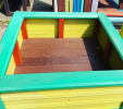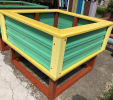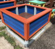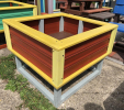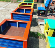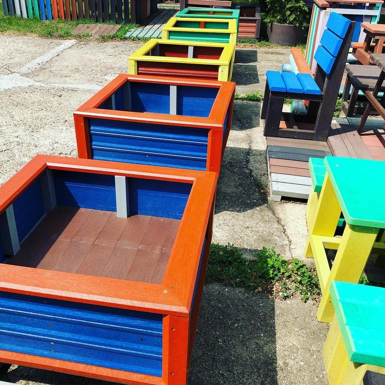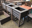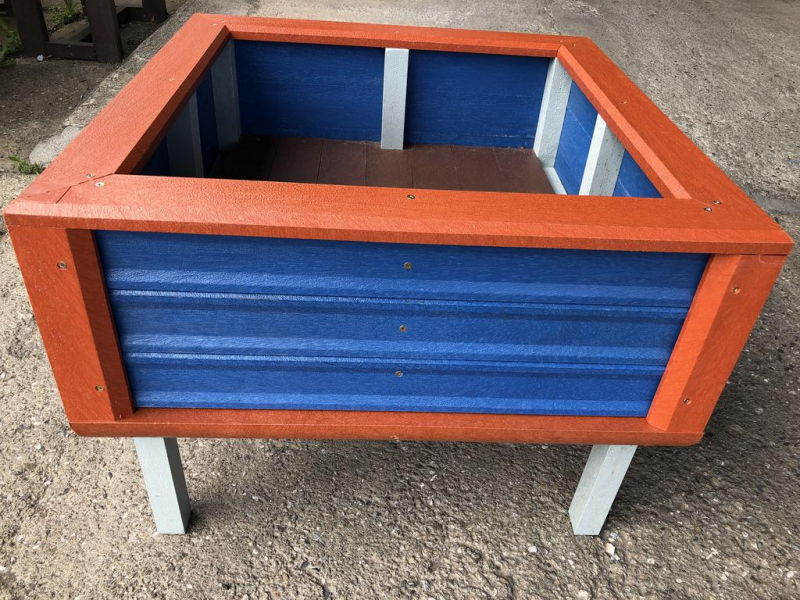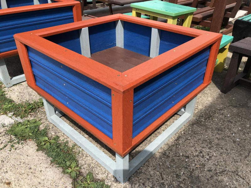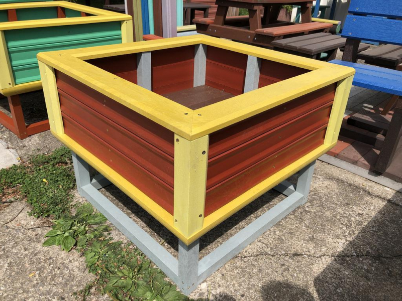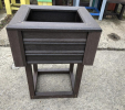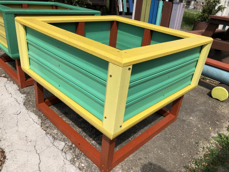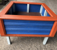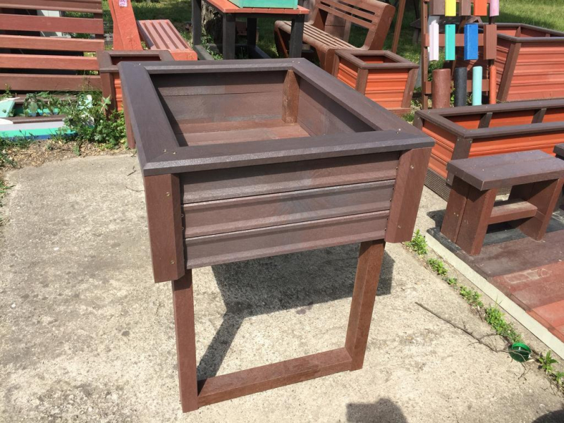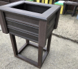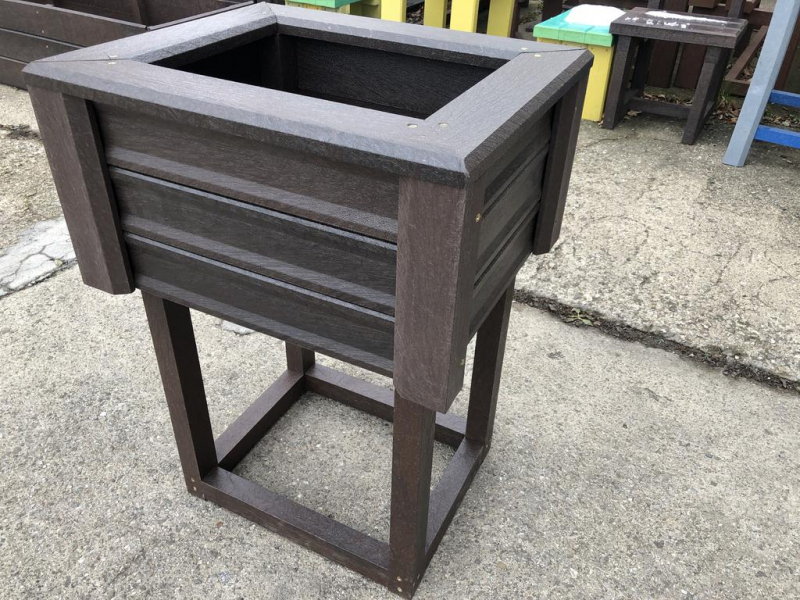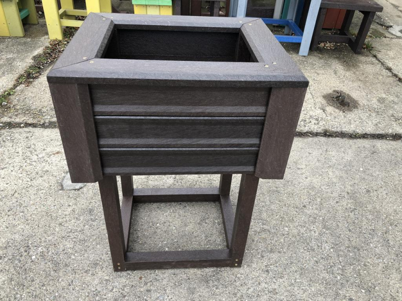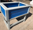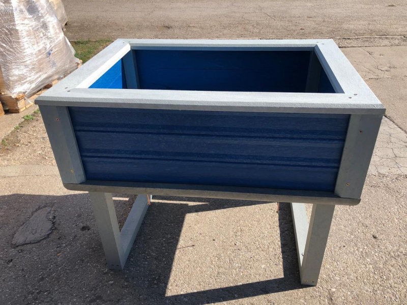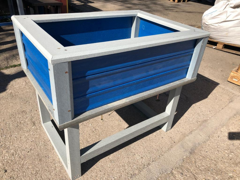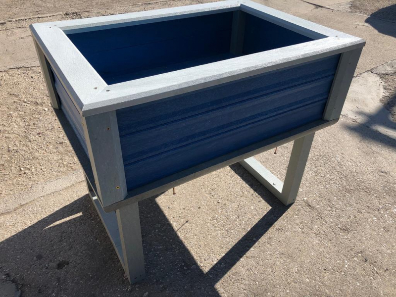 Vyvýšený záhon na nohách sa vyrába v hnedej farbe, no je možné ho objednať aj v rôznych farebných kombináciách. Je vhodný na sadenie rastlín, byliniek, kvetov. Spestrí každú záhradu, park. Štandardný rozmer 50 x 80 cm, výška 80 cm. Vyrábame aj menšiu a lacnejšiu variantu v rozmere 50 x 60 cm.