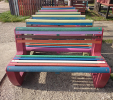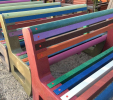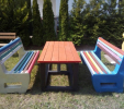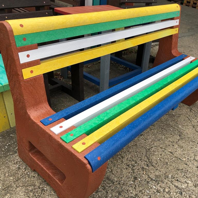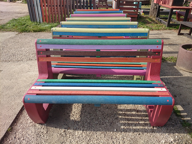 L-bench lavička je najobľúbenejšia a najmasívnejšia lavička v našej ponuke. Štandardne sa vyrába v dĺžke 145 cm. Lavičku si môžete farebne nakombinovať podľa vlastnej fantázie. Je veľmi odolná a robustná. Vhodná do parkov, záhrad, školských dvorov, škôlok a pod. Lavičku vyrábame až do dĺžky 180 cm, pričom musí byť buď vystužená zo spodnej strany alebo podoprená v strede ďalšou nohou. Váha lavičky je 95 kg.