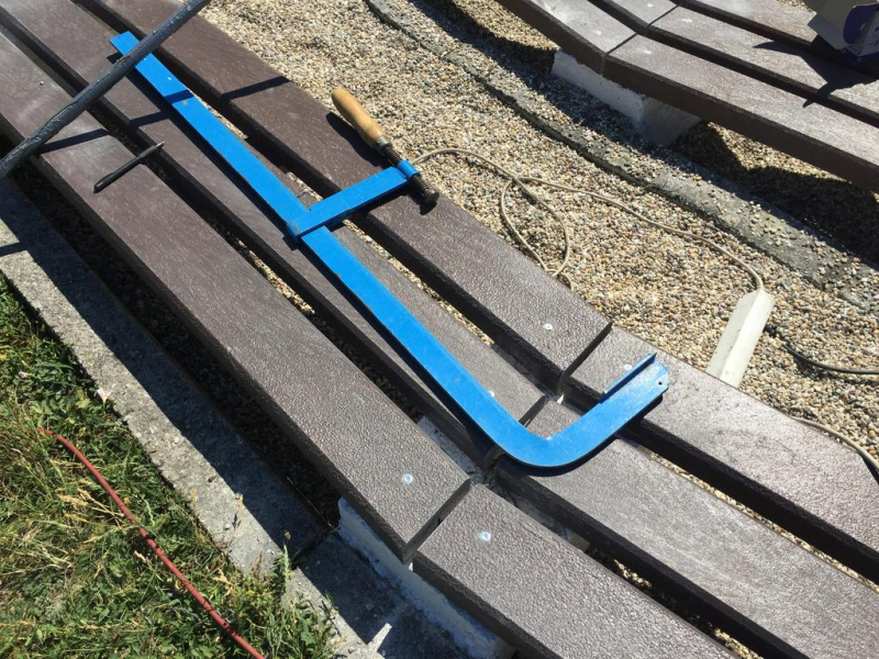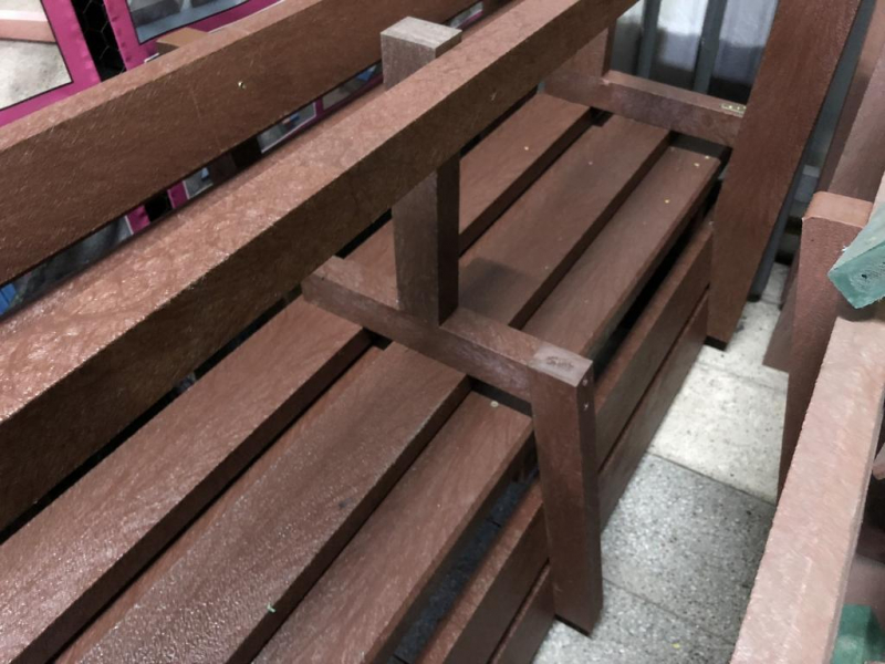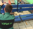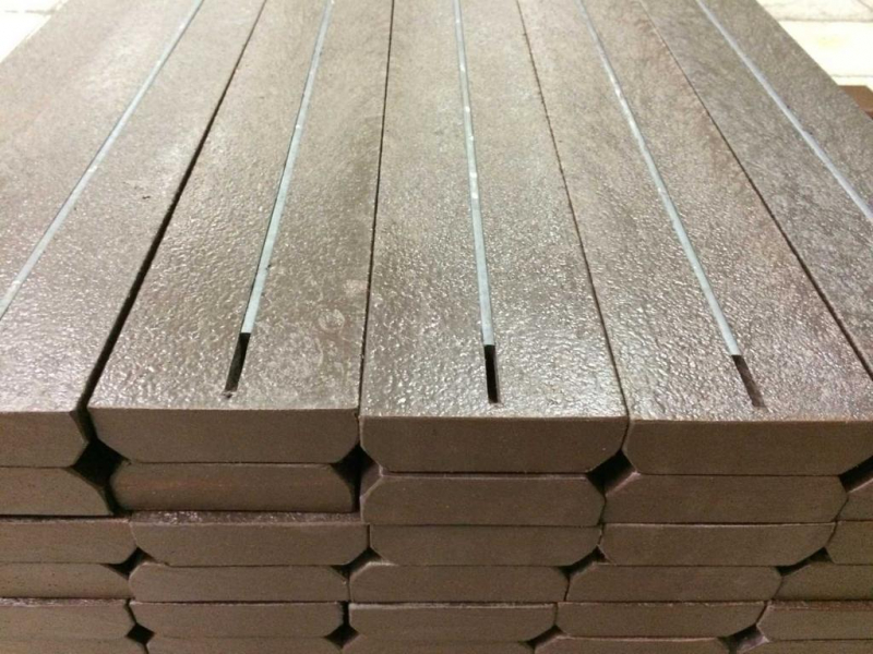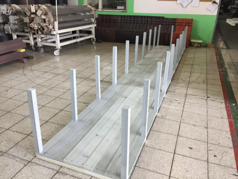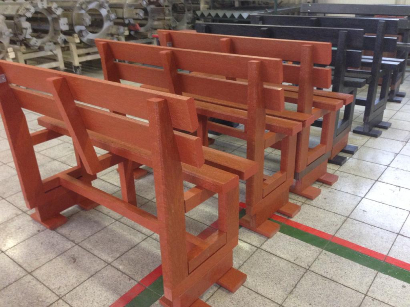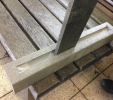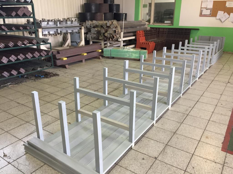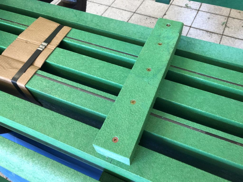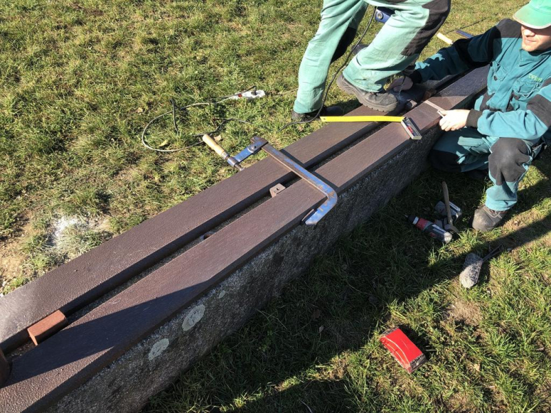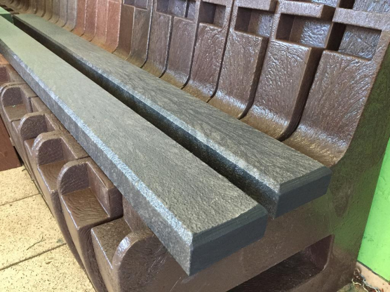 Na lavičkocvýh doskách profil č.18, (D-120x50-2200 mm) používame v podstate ten istý materiál ako pri plastových doskách na ploty, akurát väčší priemer, napr. 8 vratovú šrubu na lavičkách s betonovou konštrukciou, alebo dve 5-ky na jednu stranu dosky. Dosky vieme vystúžiť železom - pásovinou 20/5, čím vydrží aj väčšiu záťaž. Bežný príklad lavičky, ktorej doska je dlhá 180 cm a vzdialenosť nosných nôh je približne 150 cm, je použitie výstuže na dlžku 155 cm zvlášť pre mestá a obce nevyhnutnosťou. Ak je kovová konštrukcia podopretá na troch miestach, výstuž netreba.