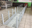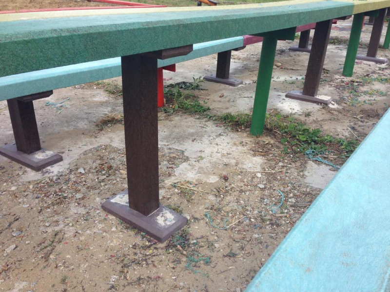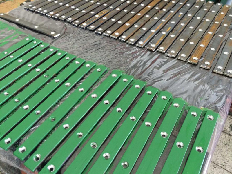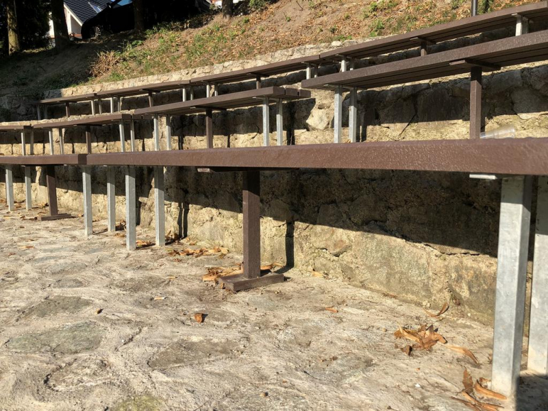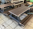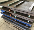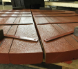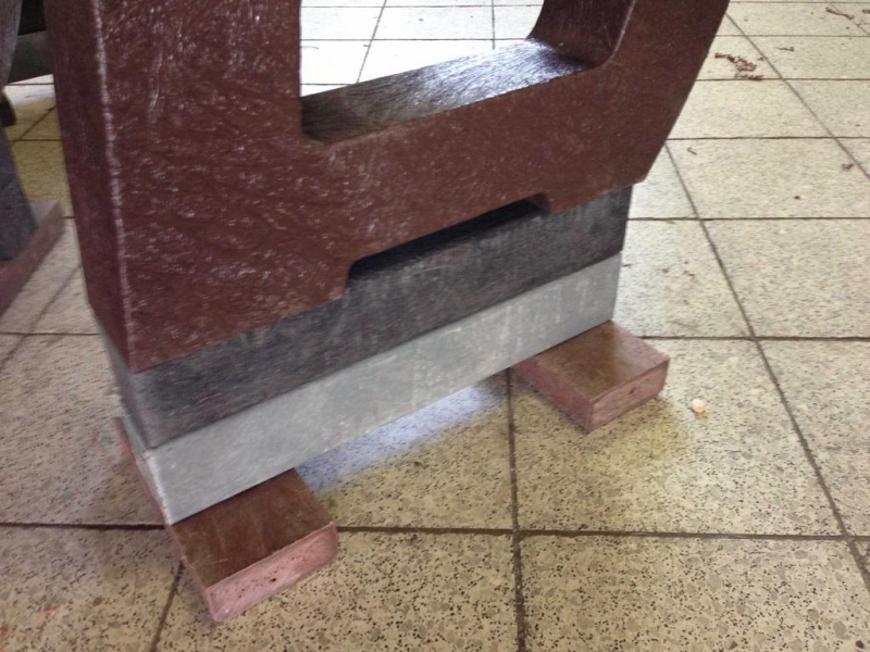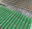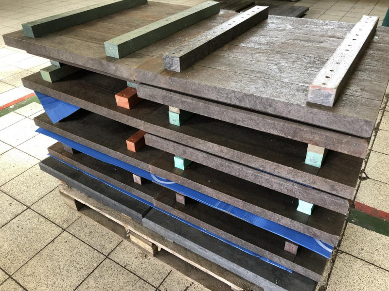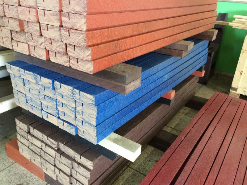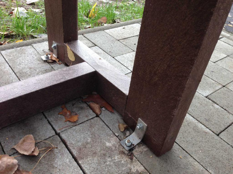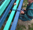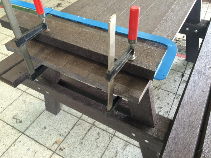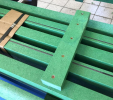 Na lavičkocvýh doskách profil č.18, (D-120x50-2200 mm) používame v podstate ten istý materiál ako pri plastových doskách na ploty, akurát väčší priemer, napr. 8 vratovú šrubu na lavičkách s betonovou konštrukciou, alebo dve 5-ky na jednu stranu dosky. Dosky vieme vystúžiť železom - pásovinou 20/5, čím vydrží aj väčšiu záťaž. Bežný príklad lavičky, ktorej doska je dlhá 180 cm a vzdialenosť nosných nôh je približne 150 cm, je použitie výstuže na dlžku 155 cm zvlášť pre mestá a obce nevyhnutnosťou. Ak je kovová konštrukcia podopretá na troch miestach, výstuž netreba.