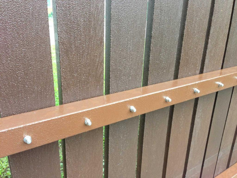 Pri plastových doskách na ploty a oplotenia (napr. profil č.12, teda D-100x25-2000 mm) odporúčame použiť napr. vratové šruby - okrasná s pologuľatou hlavou, rozmer 5 alebo 6 na ukončenú, alebo obyčajnú maticu - v prípade ak ide o železný jakel. Samozrejme zakazník si podľa vlastného vkusu môže vybrať vlastný profil spojovacieho materiálu s rôznym priemerom a dĺžkou napr. tex-samorezku do železa na PZ2 alebo šesťhrann. Možností je veľmi veľa, záleží od vkusu, alebo možností zákazníka. Plotovú dvojmetrovú dosku odporúčame ukotviť na troch miestach, metrovú na dvoch. Plast je materiál, ktorý pri letných teplotách má tendenciu zväčšovať svoj objem a v zime naopak, preto je správna montáž veľmi dôležitá. Pri predvrtaní je lepšie napríklad pri použití šruby s priemerom napr. 5 mm použiť vrták 5,2 mm kvôli diletácii dosky.
