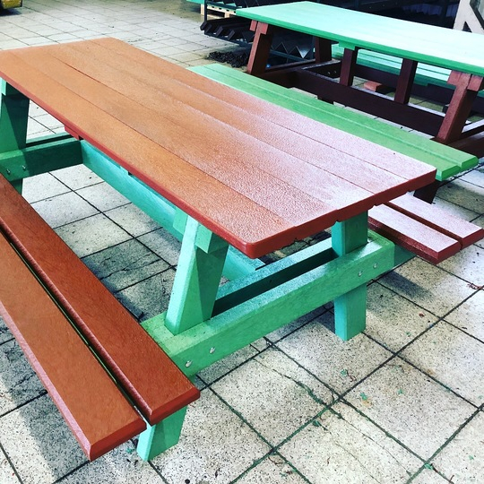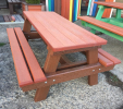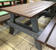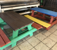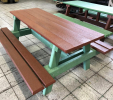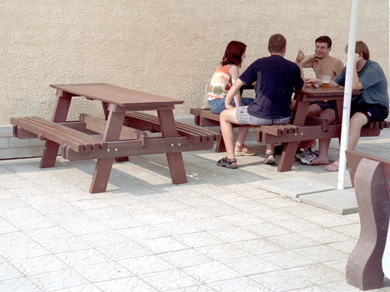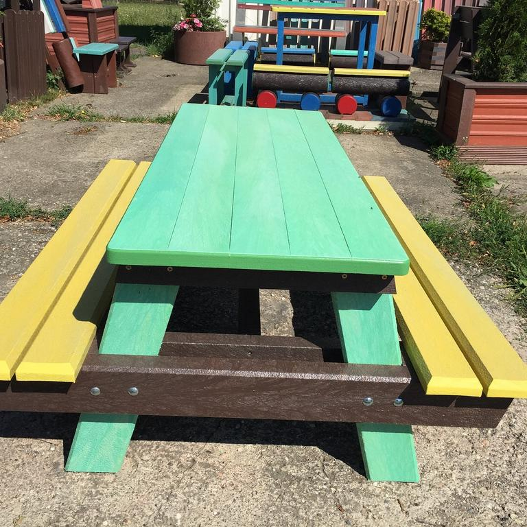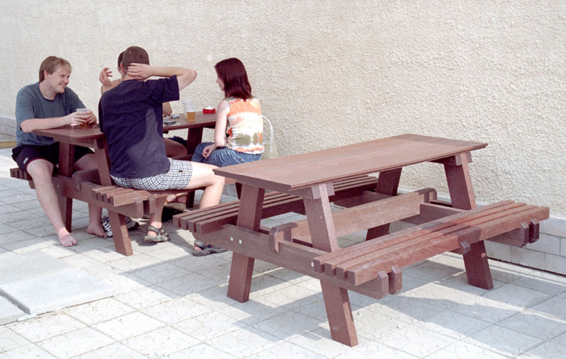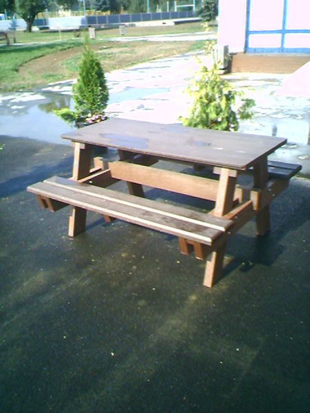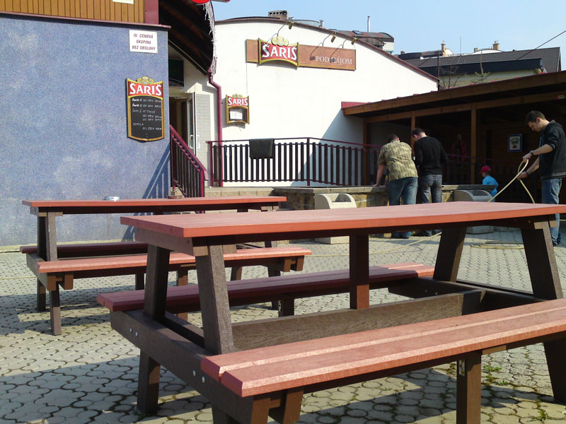 Piknik, alebo pivný stôl určený do záhrad barov, reštaurácii a hotelov je vhodným doplnkom na celoročnú prevádzku. Prevažne ho vyrábame v dĺžkach do 160 cm v hnedej farbe, alebo "na mieru" v rôznych farebných kombináciách, prípadne z dreva.