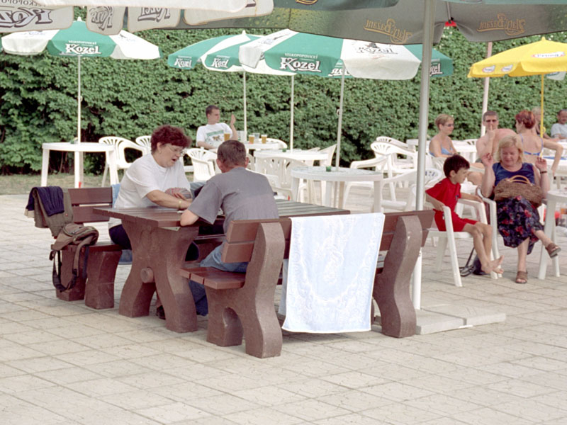e) Piknik stôl