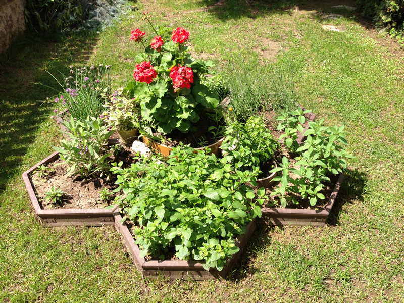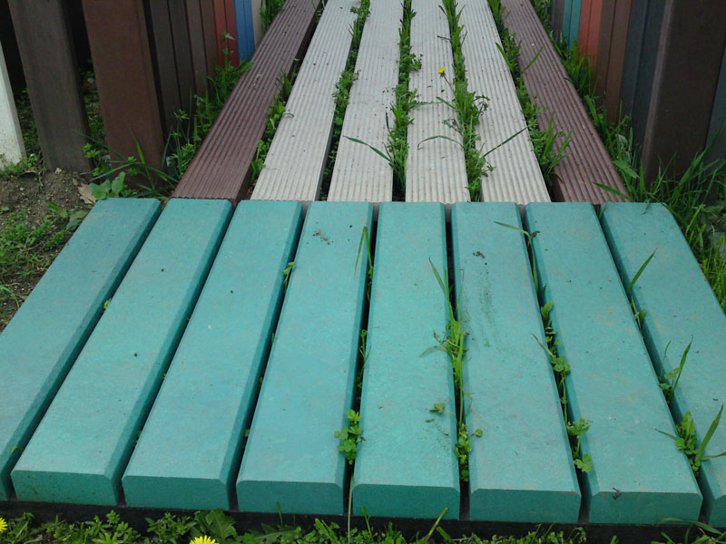 - odrezky z dosák použité ako obrubníky, záhradné záhony