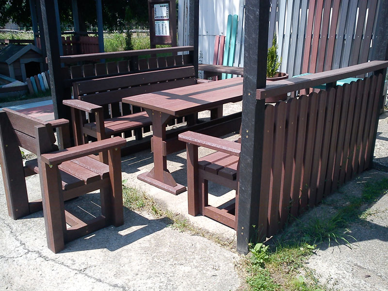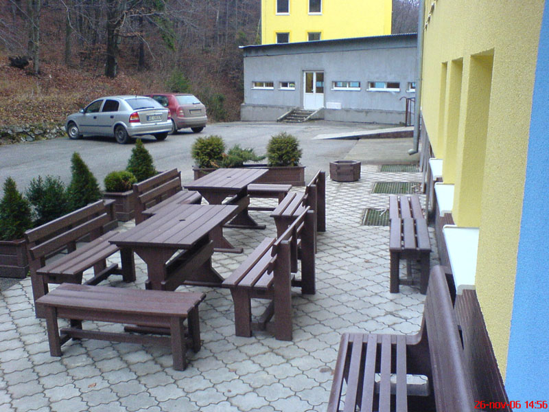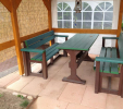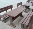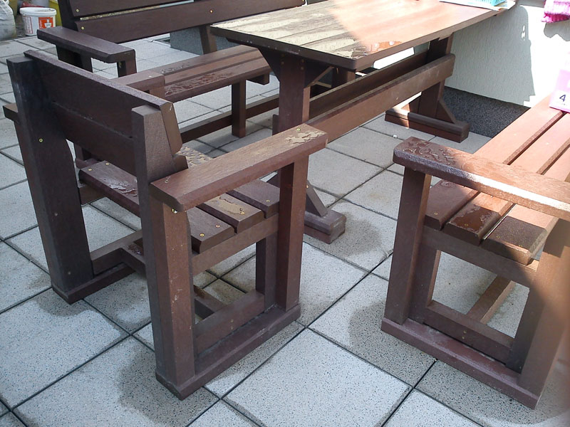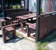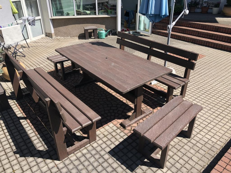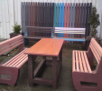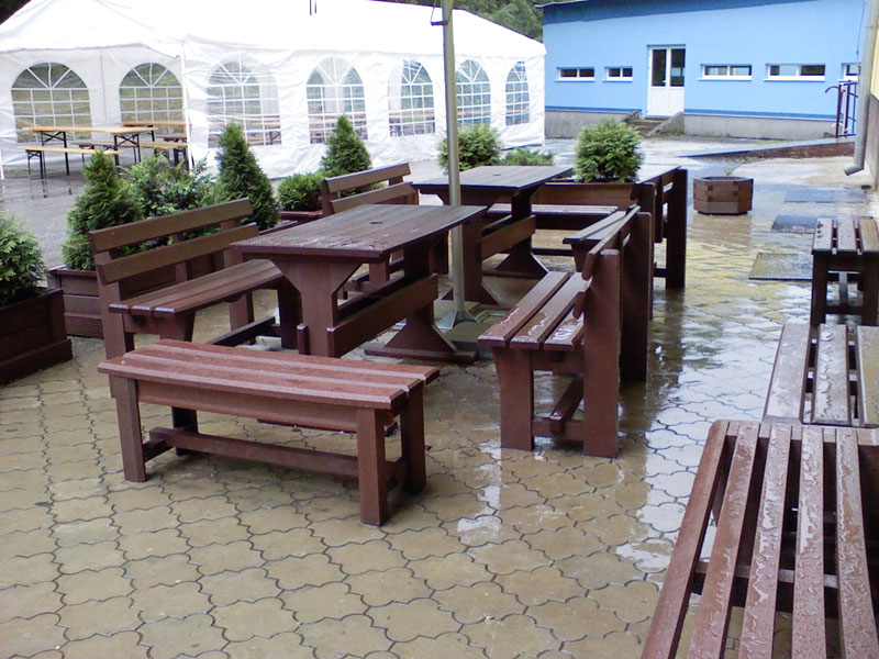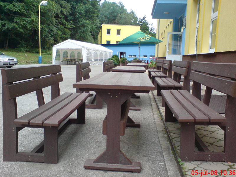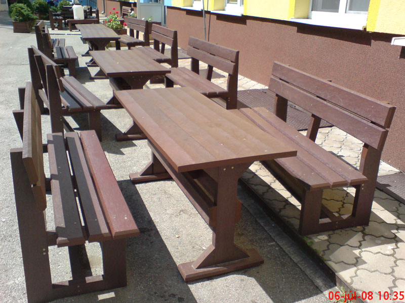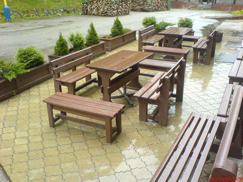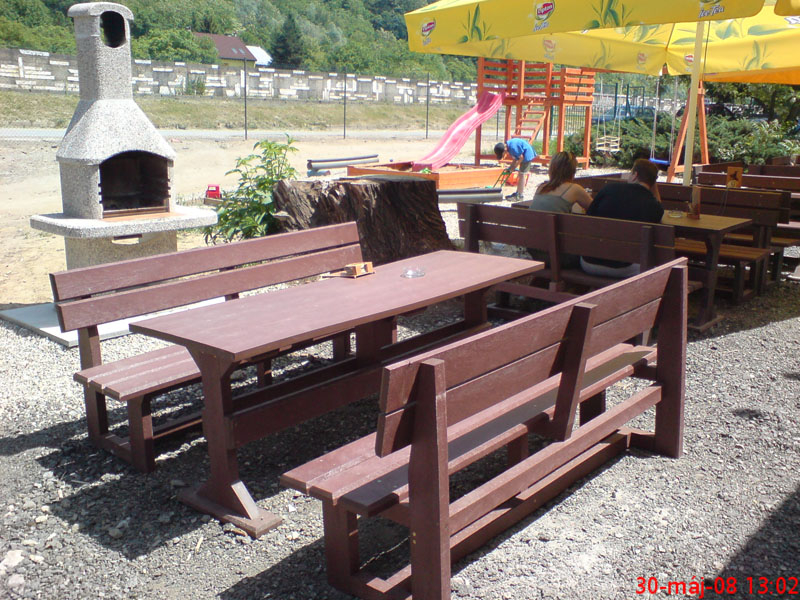 Záhradný nábytok pozostáva z dvoch lavičiek a stola. Materiálovo vieme výrobok pripraviť z plastu aj z dreva. Je možné si zvoliť viacero variánt: napríklad klasický stôl s dvoma "nohami" a dve lavičky s opierkou, alebo masívnejší stôl so štyroma nohami vyrobenými z masívneho hranola 9x9 cm a lavičkami napríkad aj bez opierky. Taktiež vyrábame k sedeniam rôzne iné výrobky akými sú kreslá napríklad aj s lakťovými opierkami, alebo male stolčeky bez opierky a podobne. Ku tomuto produktu je idelálnym riešením napríklad aj podlaha, ktorú dodávame z dvoch - troch typov profilov, napríklad profil D-120x40-2200 / š x h x d / v mm. Je vhodným riešením do nedostupných terénov chát a záhrad, kde by inak boli potrebné aj iné stavebné práce a takouto platňou komplet zhotovenou u nás alebo svojpomocne si môžete ľahko vytvoriť bezúdržbovú terasovú - protišmykovú podlahu, ktorá Vám vydrží dlhé roky. Sekcia 11. Terasové dosky.